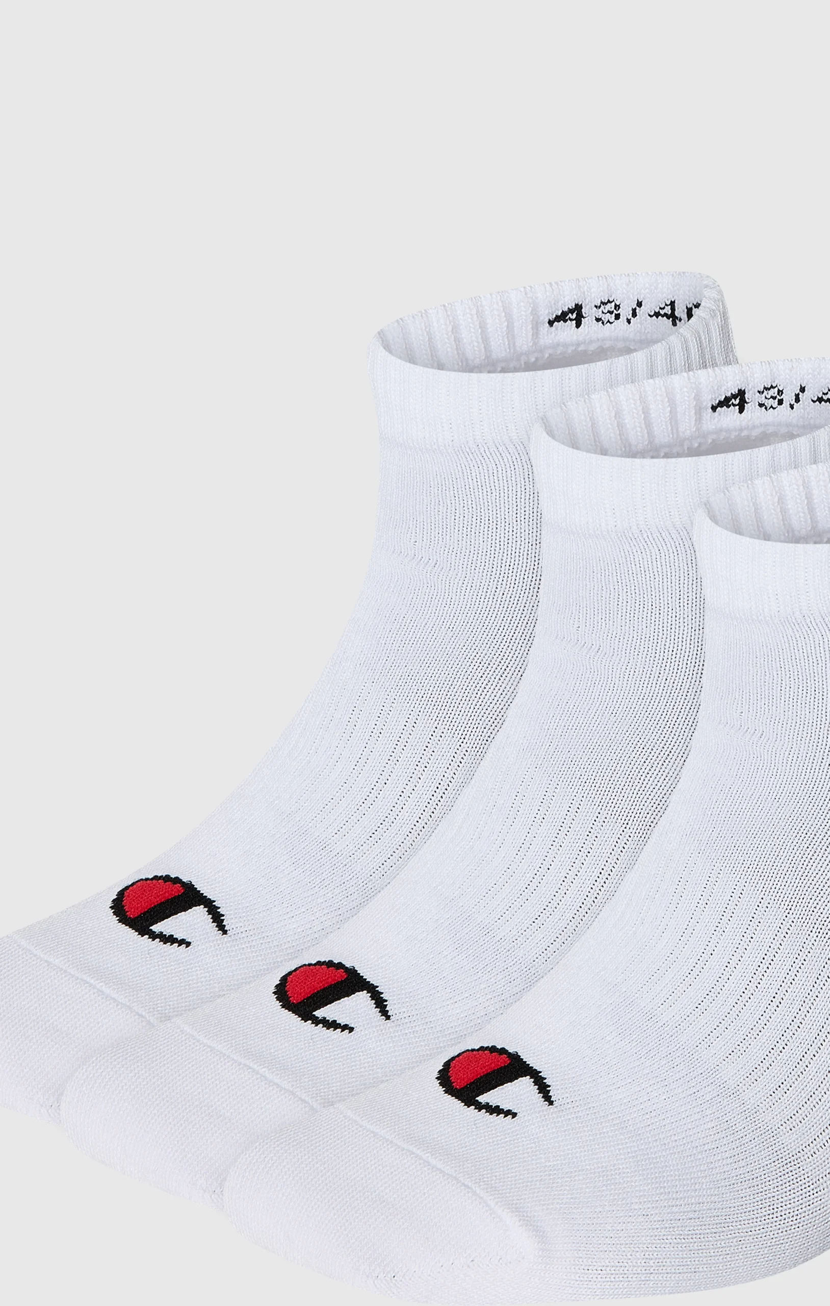 Pack of 3 low-cut socks designed to provide comfort and breathability during everyday wear and light sports activity. The fabric helps keep feet cool and dry, supporting effective moisture management even during extended use. The low-cut design ensures a discreet and practical fit inside the shoe, while the elasticated structure provides stability and all-day comfort. The Champion logo completes the design with an iconic, recognisable detail.@@@Functional everyday accessory |Pack of 3 pairs |Low-cut height |Composition: 56% Polyester, 38% Cotton, 4% Polyamide, 2% Elastane |Breathable yarn for improved moisture management |Elastic structure for a stable fit |Comfortable cuff |Integrated Champion logo