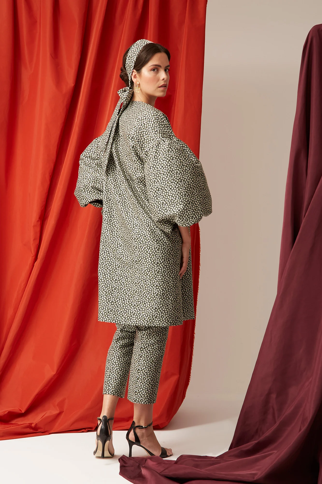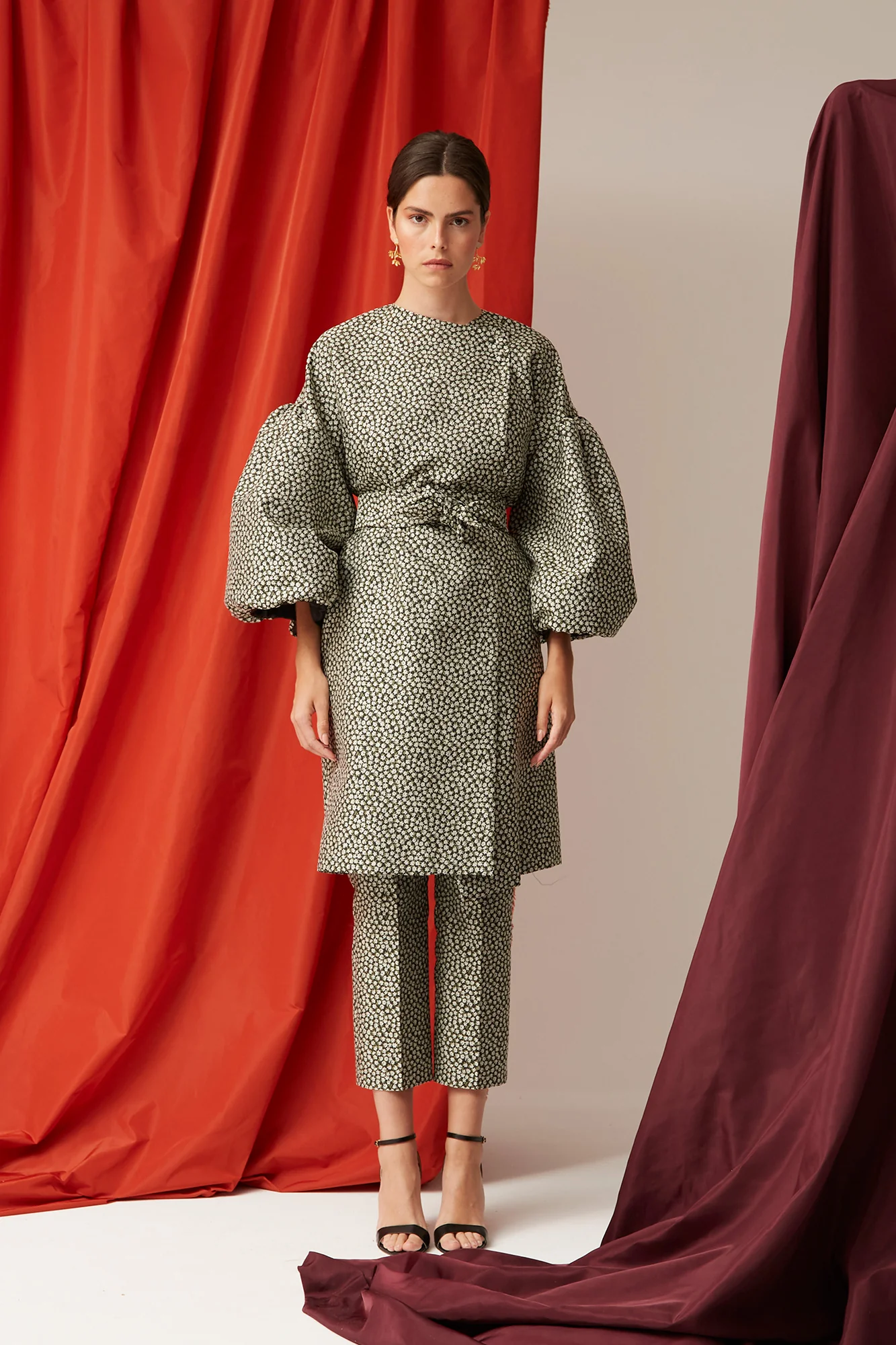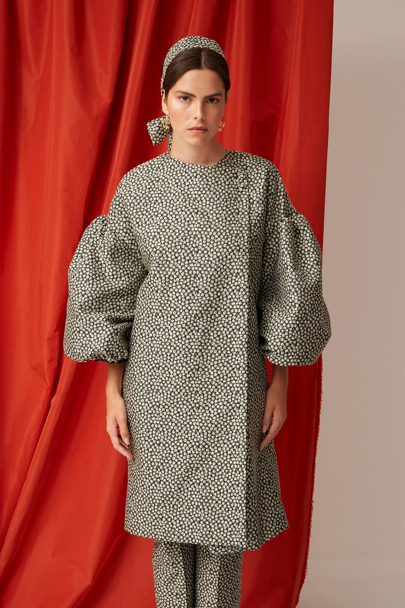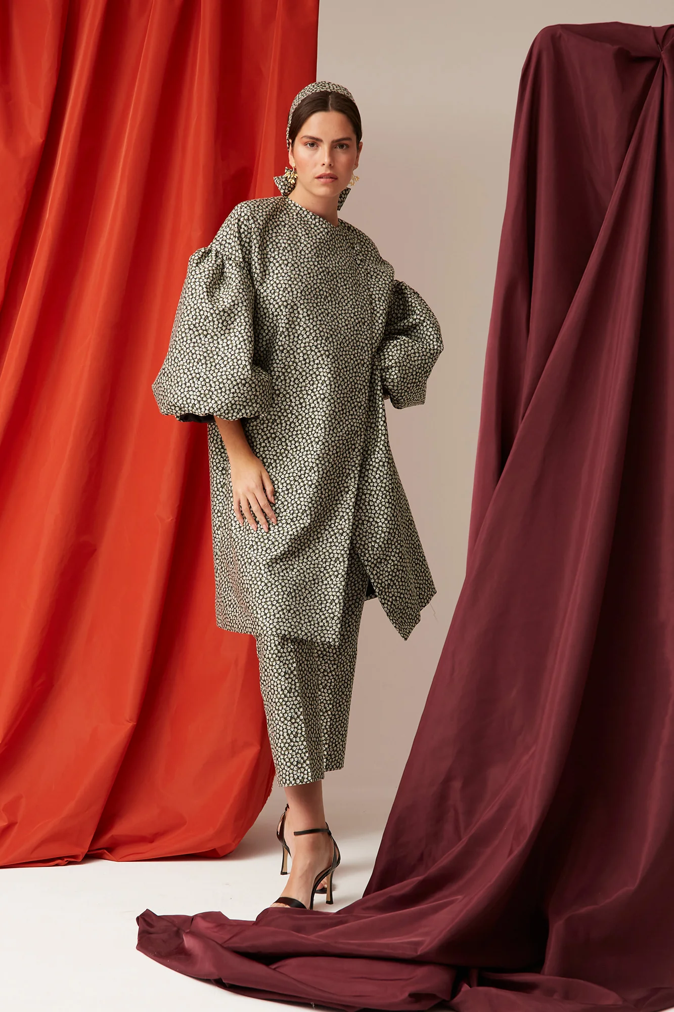 El Abrigo Anelina es una prenda icónica diseñada para marcar estilo esta temporada. Confeccionado en un tejido estampado en tonos neutros, combina un corte recto con un diseño elegante y contemporáneo. Su detalle más distintivo son las mangas abullonadas, que aportan volumen y un aire sofisticado.