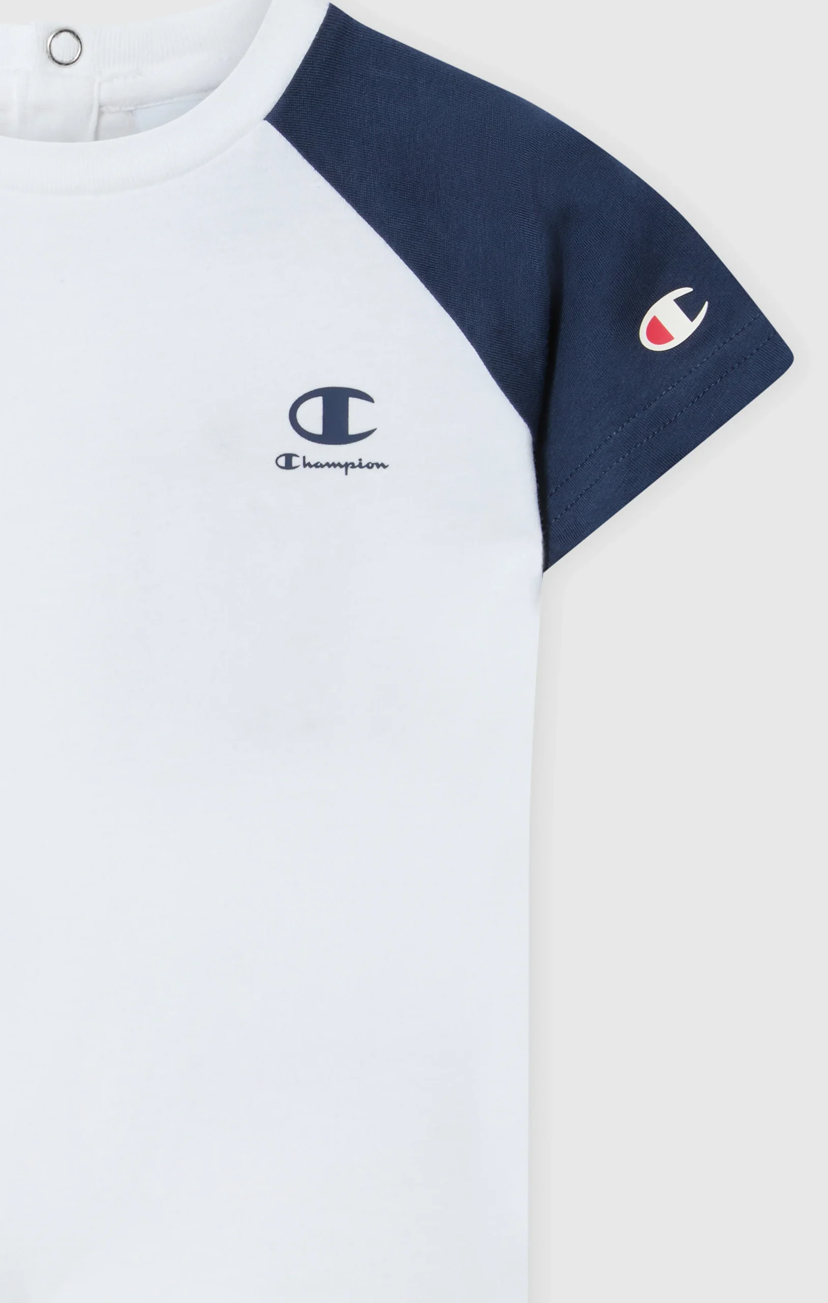 This baby three-pack T-shirt set features a clean and sporty aesthetic, in line with the Champion DNA. Made from lightweight cotton jersey, the T-shirts provide softness and comfort for everyday wear. The Standard Fit ensures a regular and comfortable silhouette, ideal for daily activities. The color-block design and the Champion logo printed on the chest complete the look with a clean and recognizable style.@@@Standard Fit, comfortable with a regular silhouette |Lightweight cotton jersey |Composition: 100% Cotton |Fabric weight: 150 g/m² |3-pack T-shirt set |Short sleeves |Crewneck