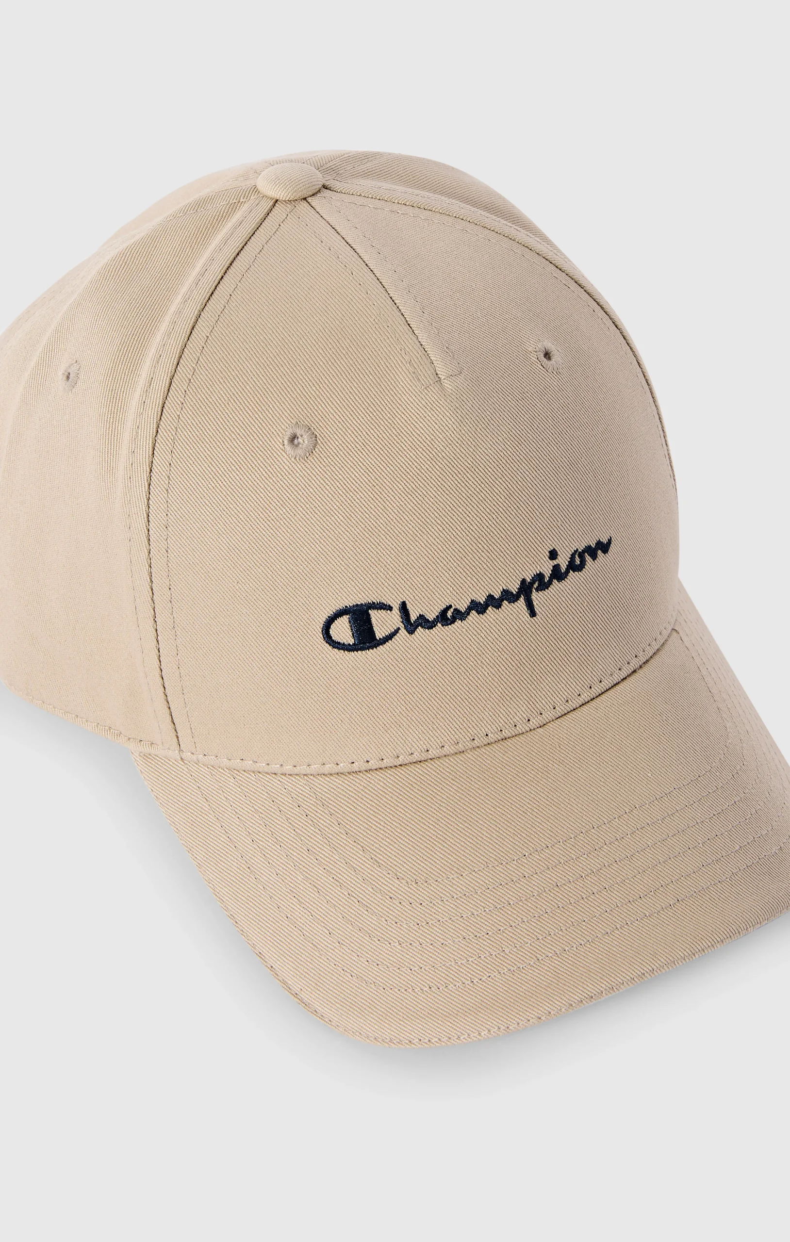 This baseball cap features a clean, timeless design, ideal for completing casual and lifestyle outfits. Made from durable cotton twill, it offers a structured yet comfortable fit for everyday wear. The embroidered Champion logo on the front adds an iconic and recognizable heritage touch.@@@Baseball style |Cotton twill fabric |Fabric weight: 290 g |Composition: 100% Cotton |Panel construction |Curved visor |Ventilation eyelets |Embroidered Champion logo on the front