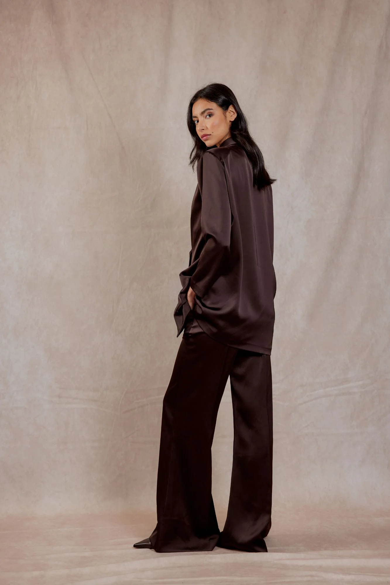 El Blazer Lita Marrón de Coosy es la prenda perfecta para elevar cualquier look con un toque sofisticado y contemporáneo. Diseñado en un favorecedor tono marrón oscuro y confeccionado en un tejido de acabado satinado, este blazer destaca por su corte recto y fluido, ideal para estilizar la figura sin perder comodidad.