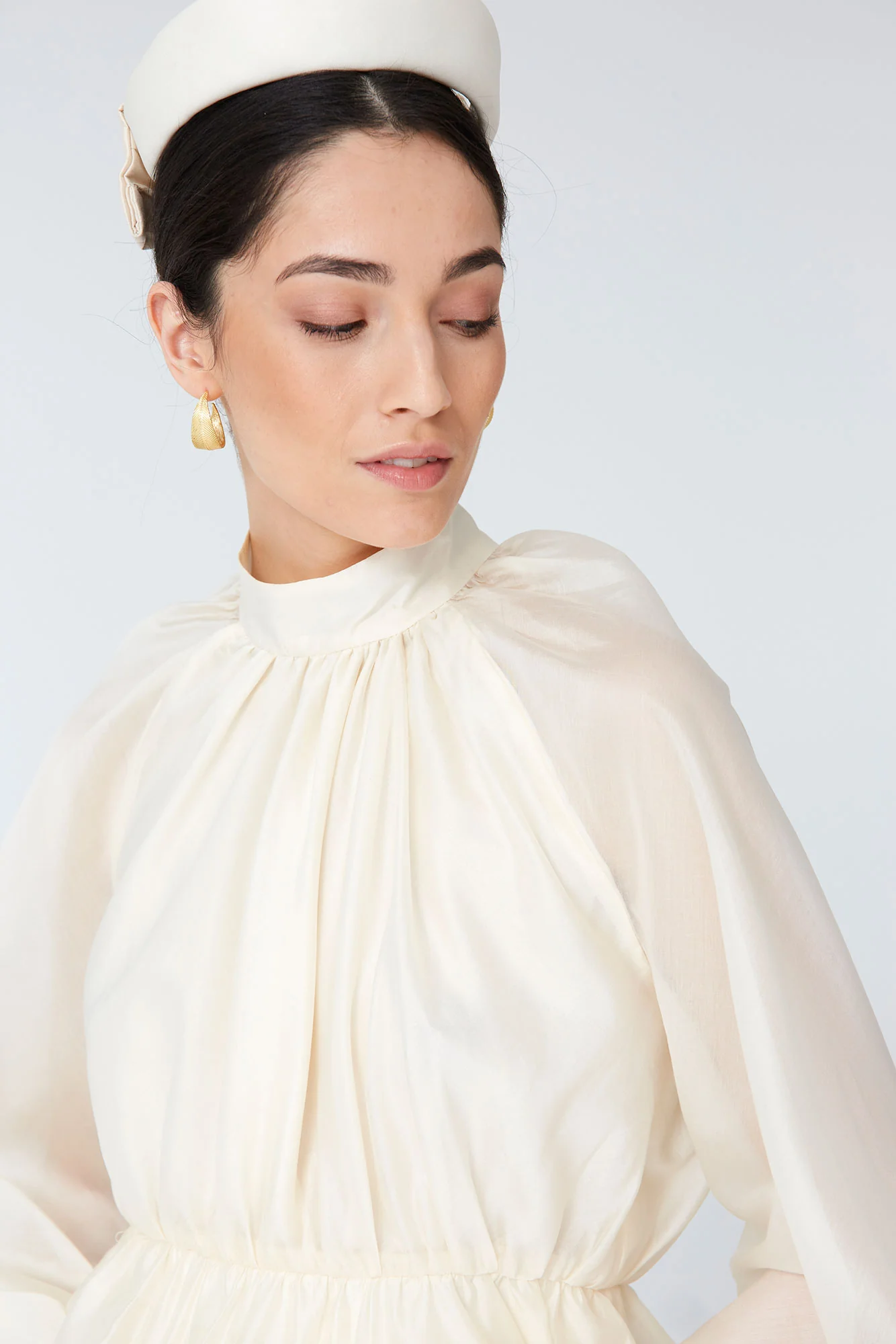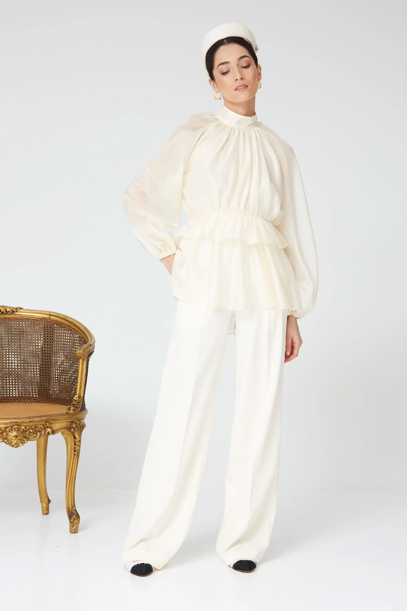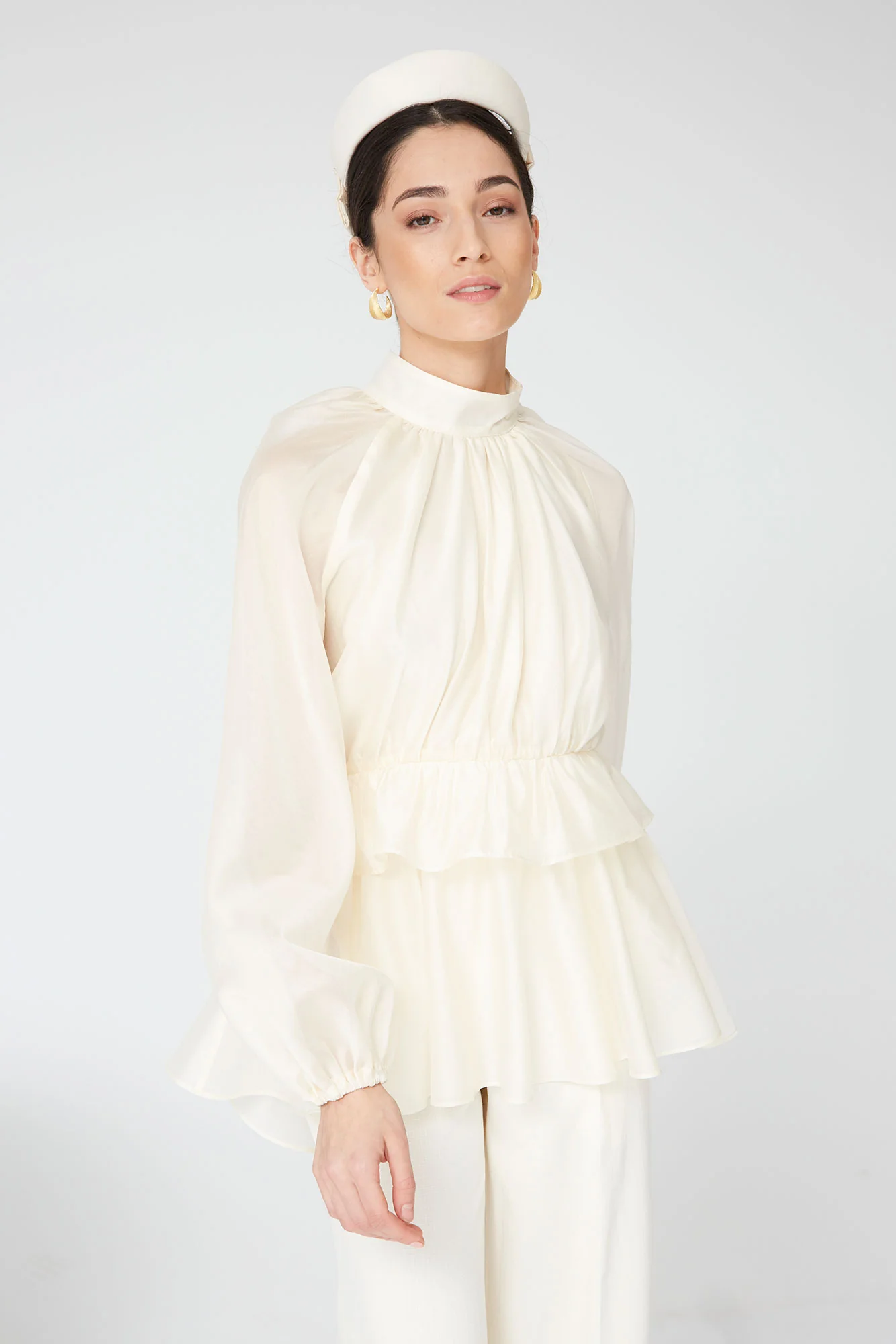 La Blusa Iñakli es una prenda sofisticada y femenina que eleva cualquier look con su diseño delicado y su silueta fluida. Confeccionada en un tejido ligero y vaporoso, destaca por su cuello alto fruncido, mangas largas con volumen y un corte ligeramente entallado bajo el pecho que estiliza la figura de forma natural.