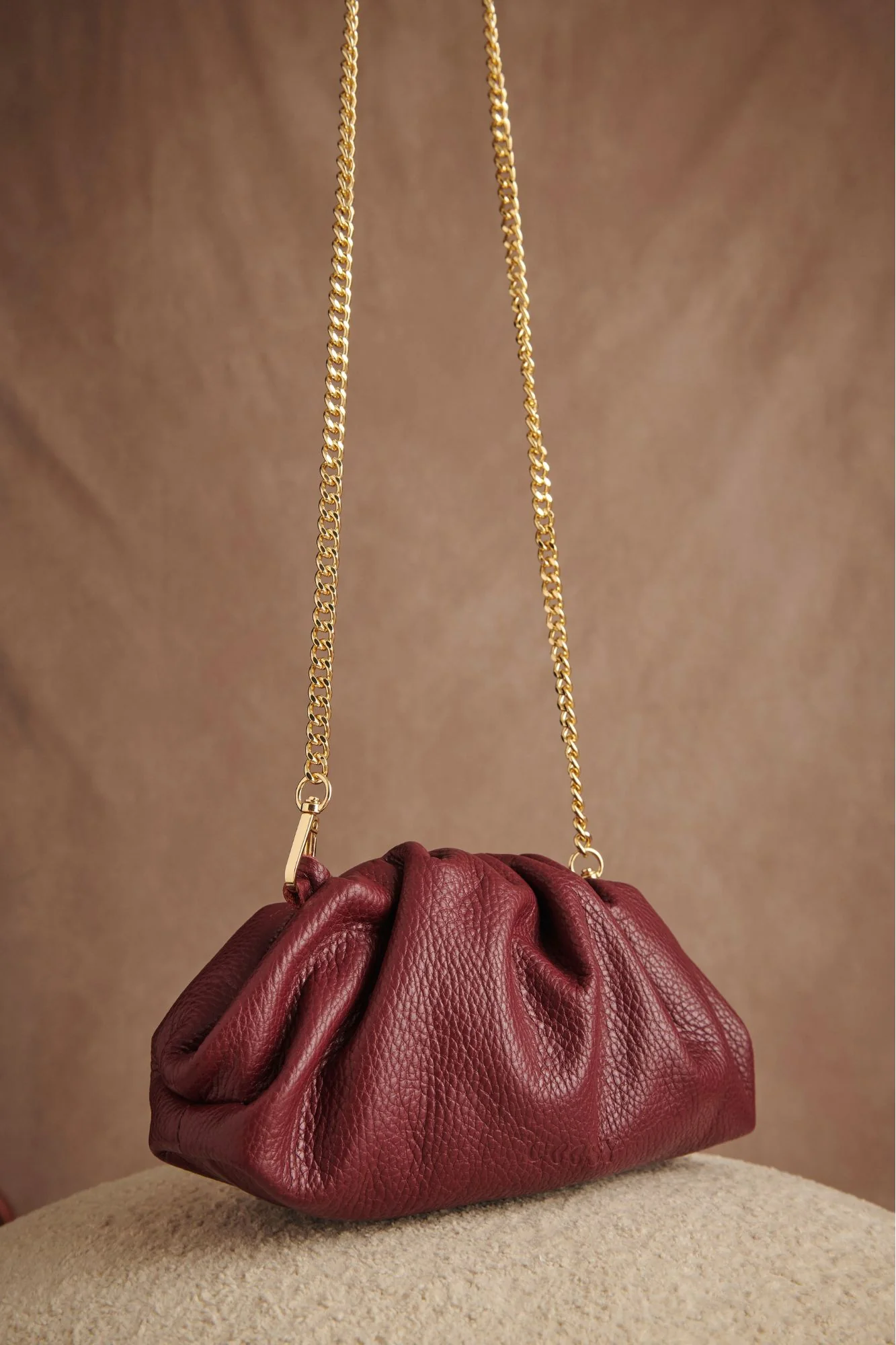 El accesorio perfecto para añadir un toque de sofisticación y brillo a cualquier look. Su diseño tipo clutch fruncido, elaborado en un tejido metalizado buganvilla con textura, combina modernidad y elegancia en una silueta atemporal.