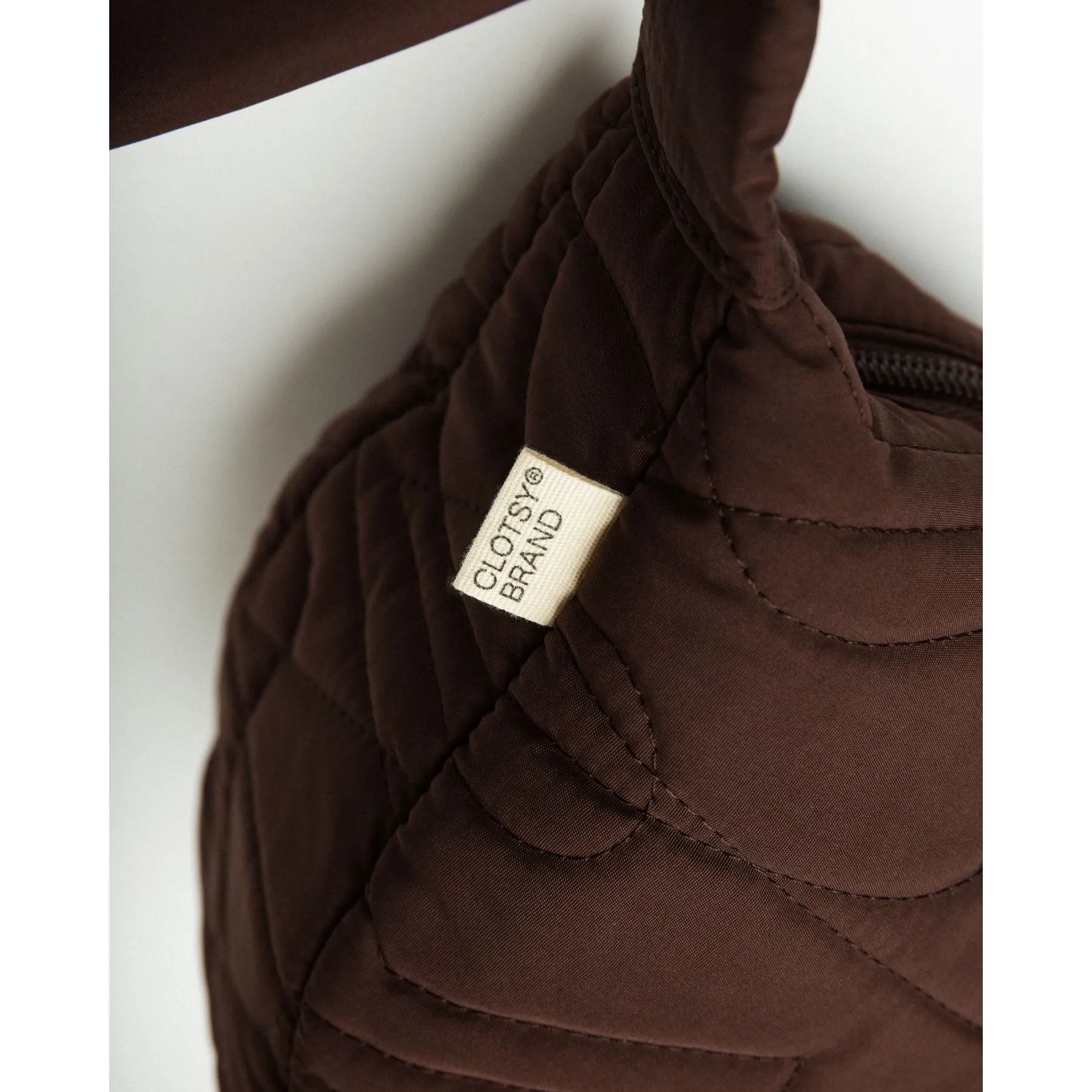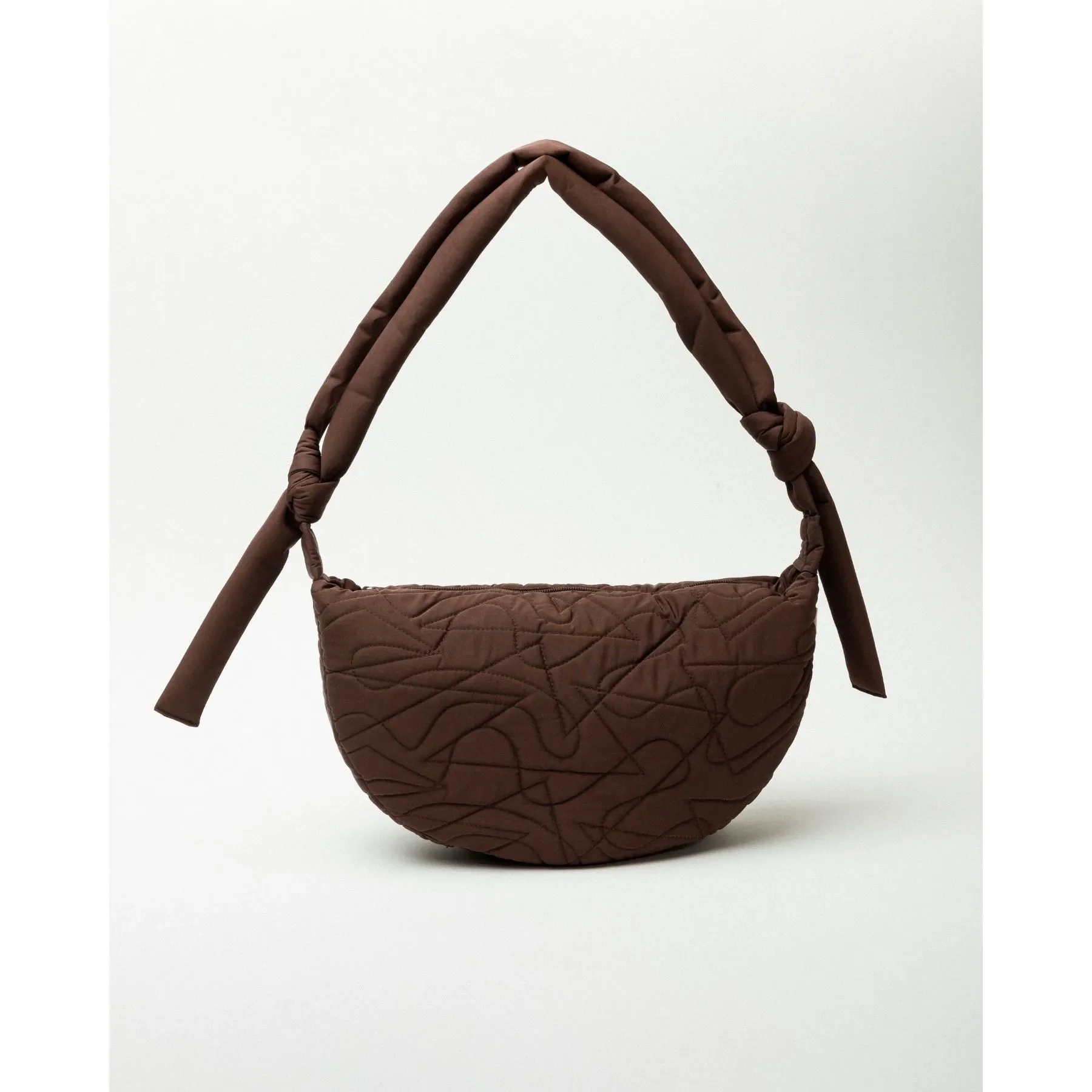 Bolso bandolera con forma de media luna, tejido bordado y asa regulable mediante nudo corredizo, con opción de anudar también con lazo. Cuenta con tirador de cremallera con icono y bolsillo interior con cierre de cremallera y mosquetón para las llaves.
