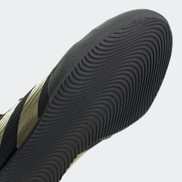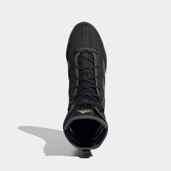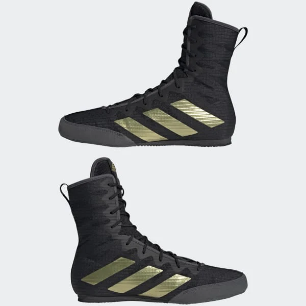 Las Botas Adidas Box Hog 4 Negro-oro son de Botas de boxeo de calidad, probadas y verificadas. Presencia constante en los gimnasios de boxeo, estas botas te ayudan a mantener alta la intensidad del Entrenamiento, gracias a la parte superior de malla transpirable y los refuerzos internos. La entresuela de EVA pre-cortada ofrece soporte al arco plantar y estabilidad. La suela multidireccional garantiza un agarre óptimo en la alfombra para movimientos rápidos. Un detalle muy interesante: es que la parte superior está compuesta por al menos el 50% de una mezcla de materiales reciclados. Este producto es solo una de las acciones con las que Adidas trabaja para combatir la contaminación causada por los desechos plásticos.