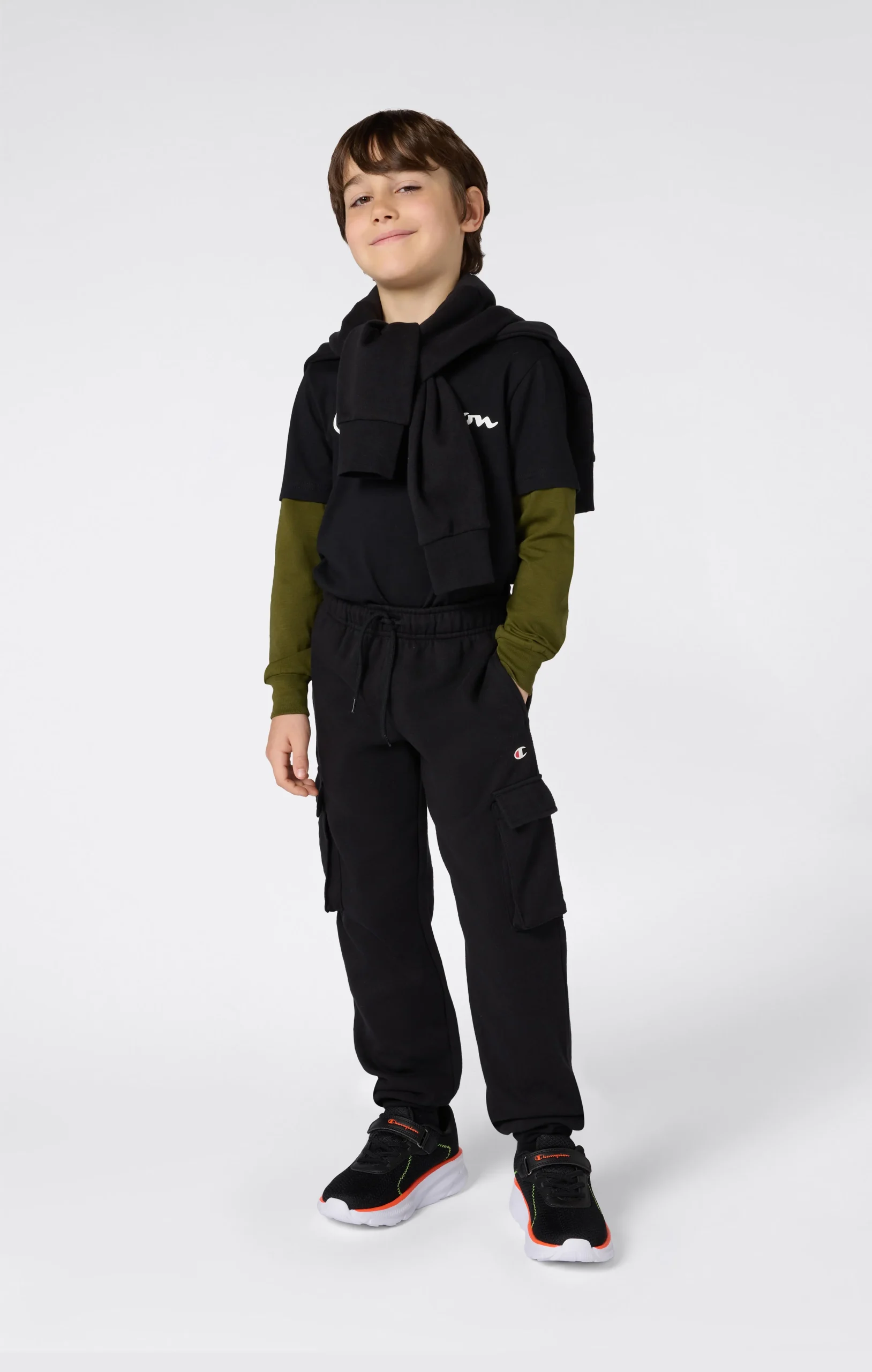 These cargo pants blend casual style with smart functionality. Crafted from lightweight fleece with a brushed interior, they provide warmth and softness for everyday wear. Side flap pockets add a practical utility touch, perfect for little ones.@@@Fabric: Ultra Soft Compact lightweight cotton blend fleece 240 g/m² |Composition: 73% Cotton, 27% Polyester |Brushed interior for superior thermal comfort |Side cargo pockets with flap |Elasticated leg cuffs |Embroidered logo |Fit: Standard Fit – soft and comfortable.