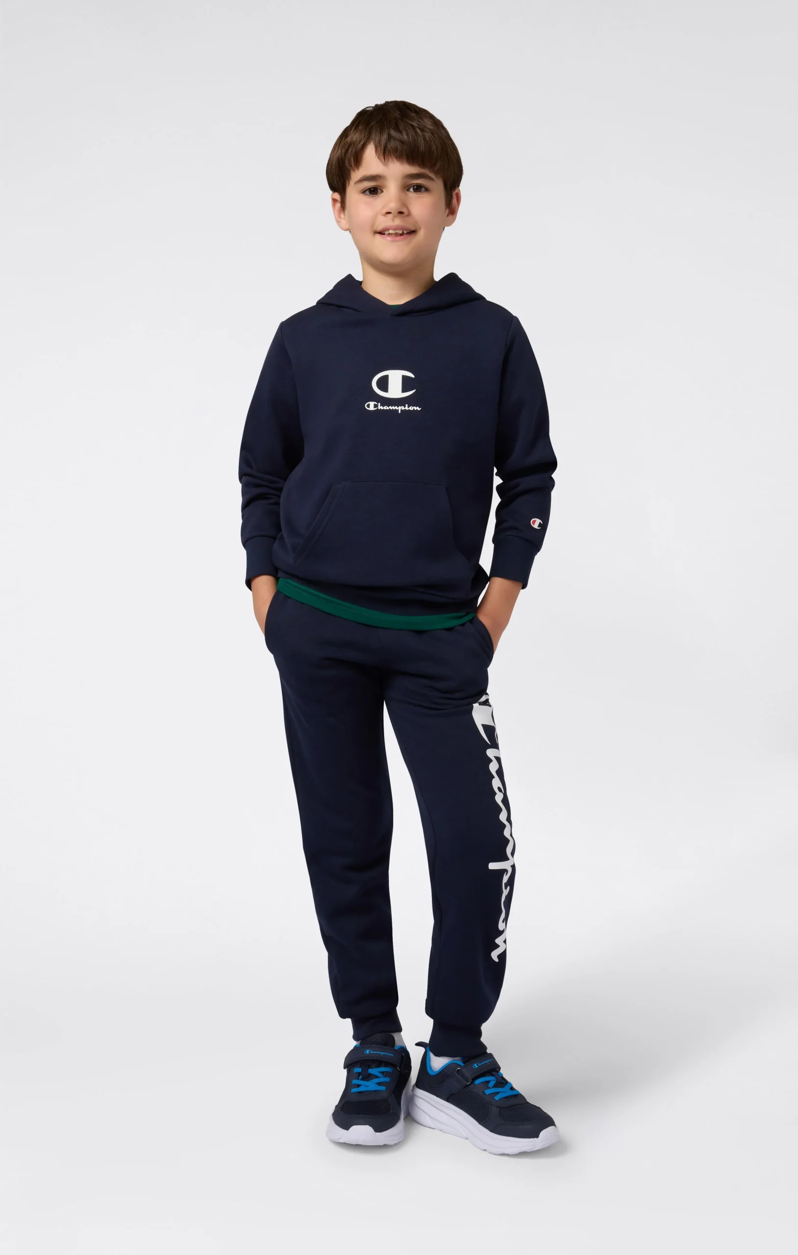 This children’s hooded sweatshirt is designed to provide comfort and lightness throughout the day. Made from ultra-light and compact fleece fabric, it is perfect for mid-seasons and active outings. The Champion logo on the chest adds an authentic touch to the sporty style.@@@Fabric: Compact and soft fleece in ultralight polyester – 240 g/m² |Composition: 73% Cotton, 27% Polyester |Brushed interior for superior thermal comfort |Fit: Standard Fit – versatile and comfortable with standard widths and lengths. Close to the body with simple lines that don’t cling. Regular shoulder cut.