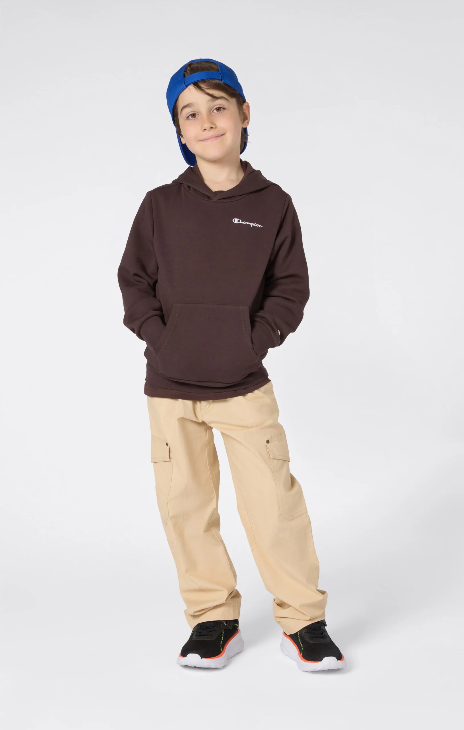 This kids’ hoodie combines timeless comfort and style. Made from compact, ultra-light fleece fabric, it’s perfect for transitional seasons. The contrasting Champion logo adds an iconic touch, while the simple design with kangaroo pocket and ribbed cuffs makes it a versatile everyday essential.@@@Fabric: Compact and soft fleece in cotton blend 240 g/m² |Composition: 73% Cotton, 27% Polyester |Brushed interior for superior thermal comfort |Contrast logo on chest and sleeve |Kangaroo pocket |Ribbed cuffs and hem |Fit: Standard Fit – versatile and comfortable with standard widths and lengths. Close to the body with simple lines that don’t cling. Regular shoulder cut.