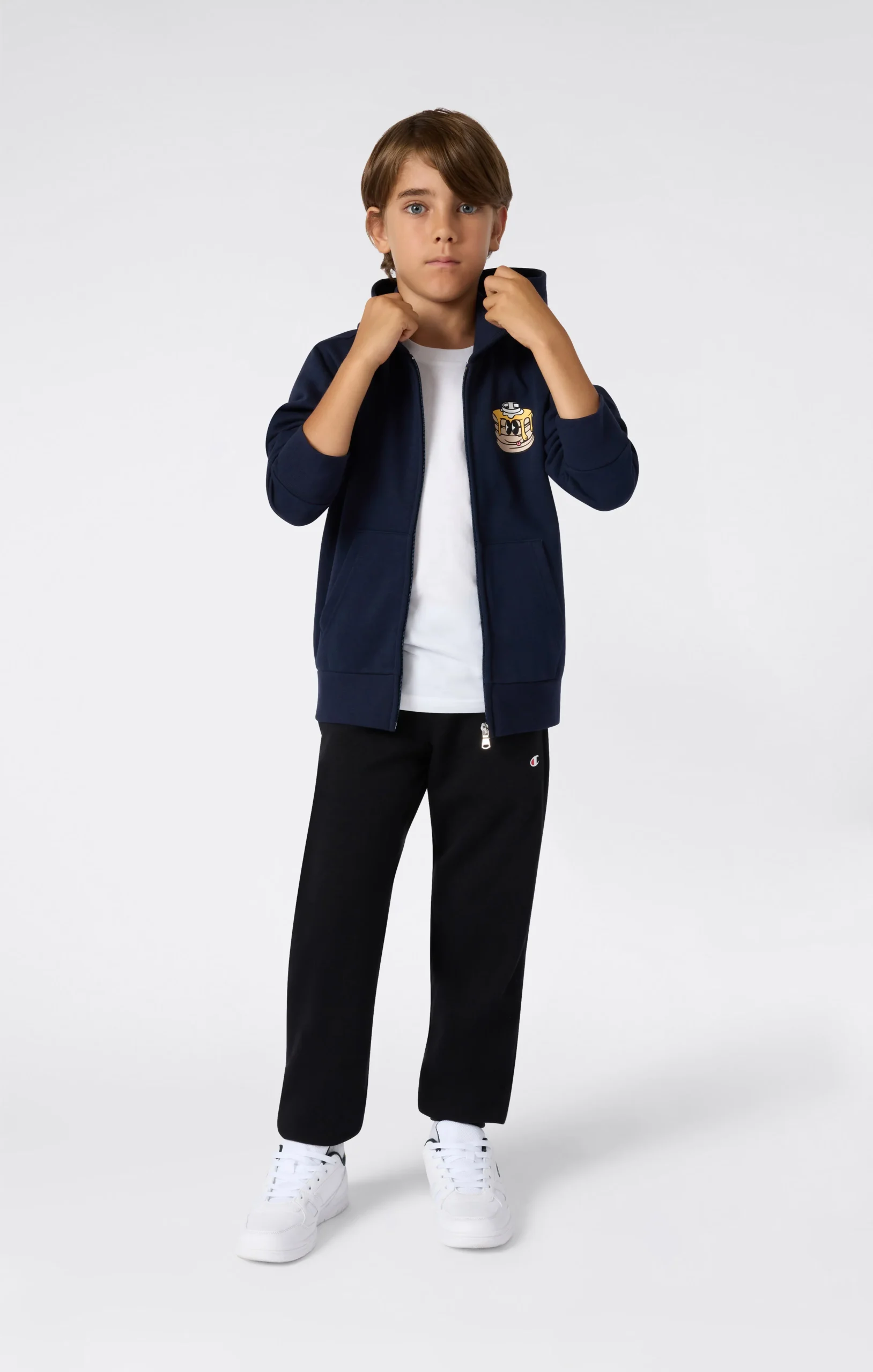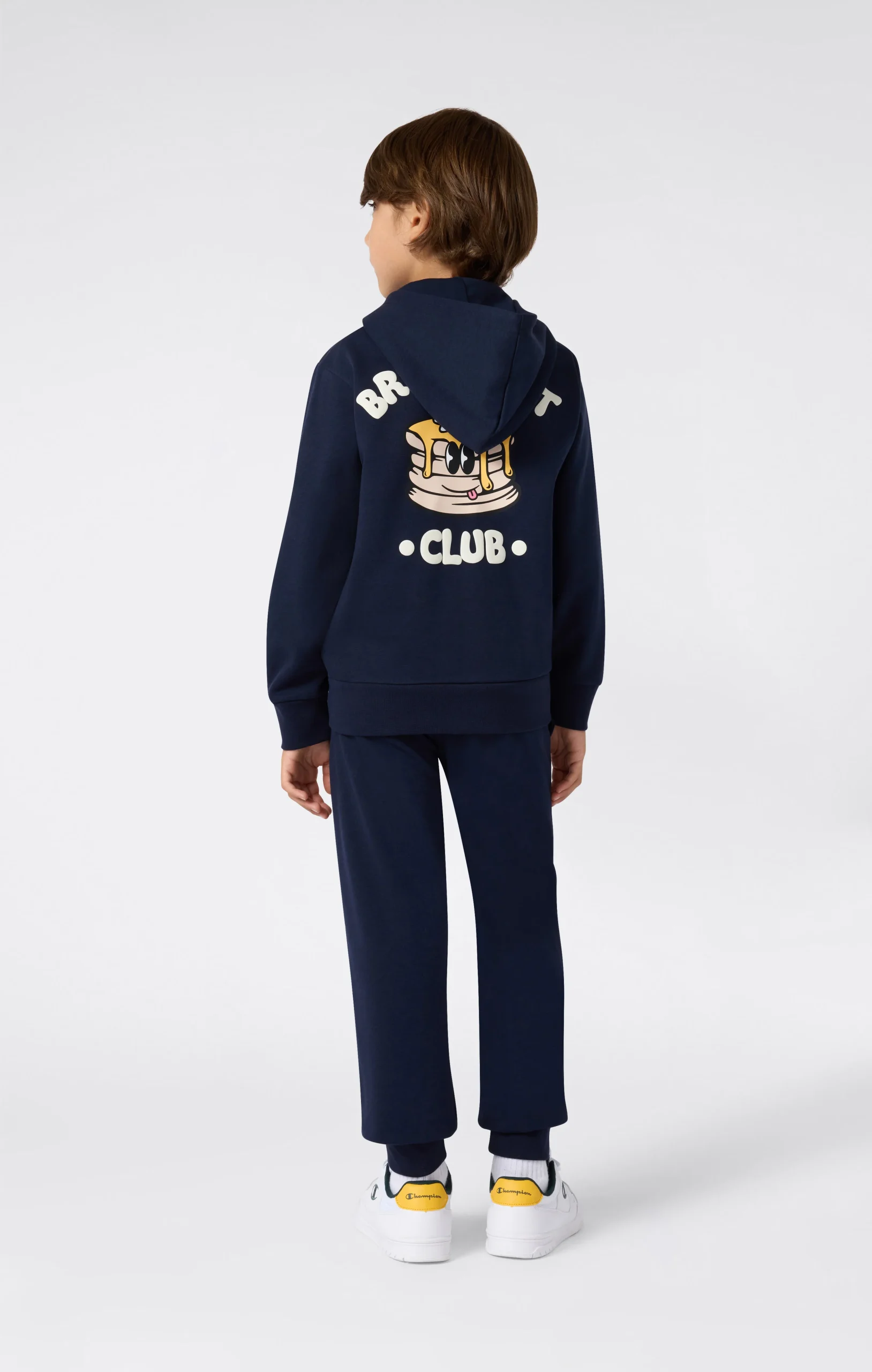 This hooded set is designed to accompany every moment of the day, from playtime to relaxation. Made from soft, lightweight brushed fabric, it ensures comfort and freedom of movement. The graphic on the back of the sweatshirt adds style and personality, while the elastic cuff pants provide a secure fit. A versatile set, perfect for little explorers.@@@Fabric: Compact and soft fleece in cotton blend, 240 g/m² |Composition: 54% Cotton, 46% Polyester |Brushed interior for superior thermal comfort |Printed graphic on the back |Pants with elastic waistband and drawstring |Ribbed cuffs and hem |Fit: Standard Fit – versatile and comfortable with standard widths and lengths. Close to the body with simple lines that don’t cling. Regular shoulder cut.