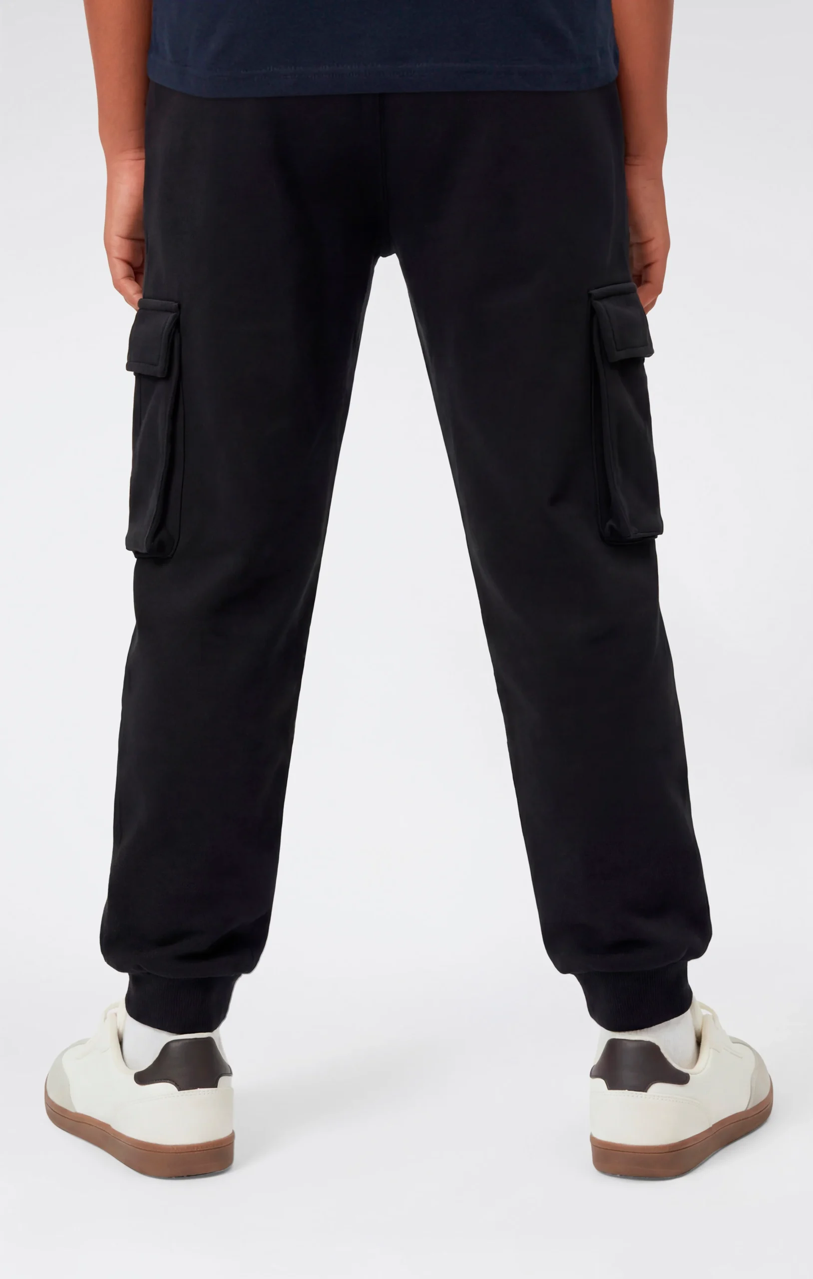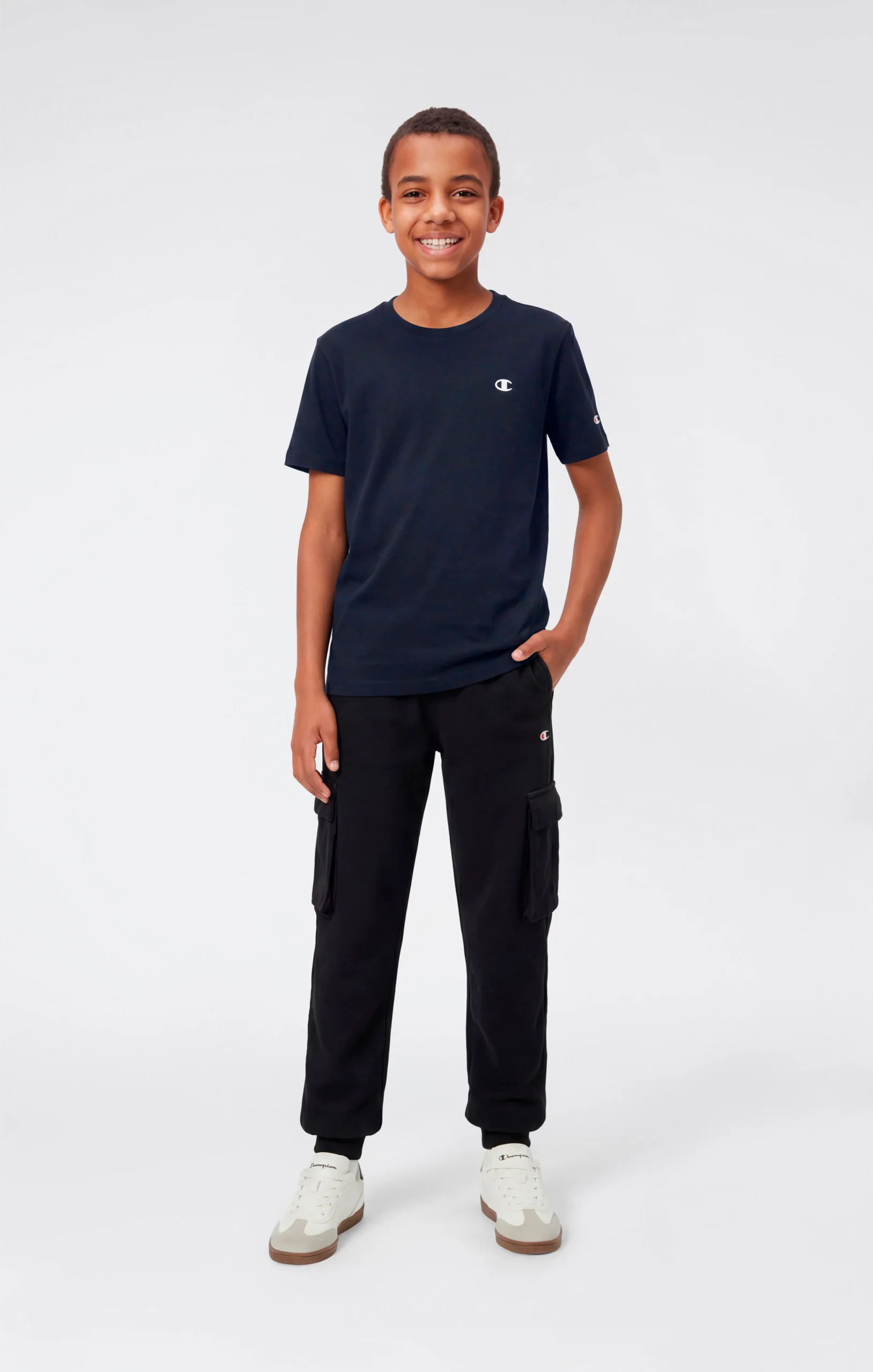 Boys’ cargo pants made from soft lightweight terry fabric, compact in structure and pleasant to the touch. Ideal for everyday wear, they offer comfort and practicality thanks to a regular fit that follows movement naturally. The cargo design with side pockets defines a clean utility aesthetic, consistent with Champion’s sportswear DNA.@@@Fit: Standard Fit – comfortable, regular line |Fabric: Ultra Light Soft Compact Spring Poly Terry, lightweight and compact terry fabric |Composition: 73% Cotton, 27% Polyester |Weight: 240 g/m² |Design: long leg with elasticated hem |Pockets: applied side pockets |Unbrushed interior