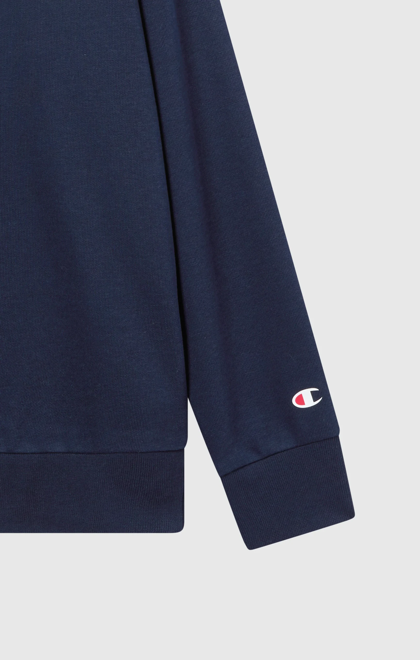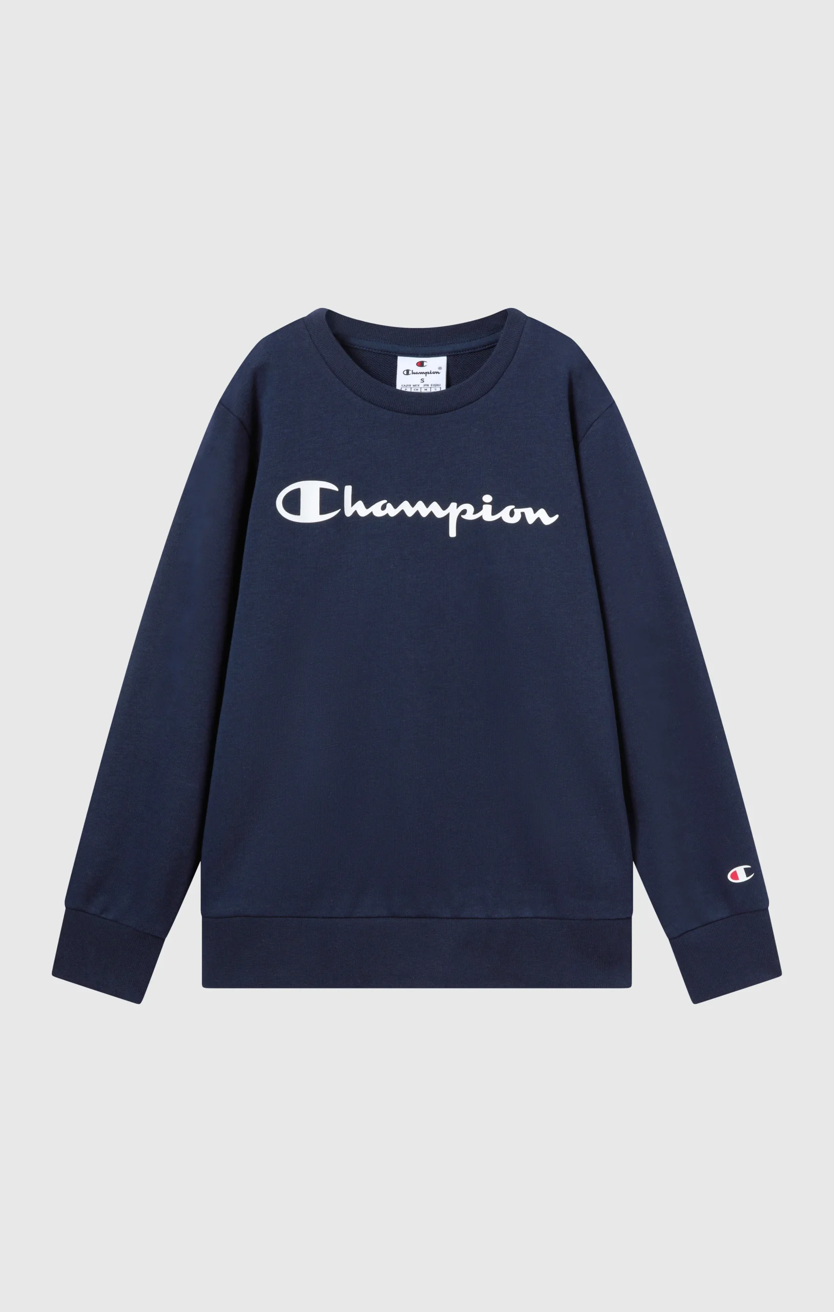 This boys’ lightweight crewneck sweatshirt is part of Champion’s classics and is made from cotton-blend fleece designed for everyday comfort. The regular fit ensures an easy and comfortable feel, ideal for school, leisure time and daily activities. The clean design is defined by a large printed Champion logo on the chest, an iconic and instantly recognizable detail.@@@Fit: Standard Fit – comfortable, regular line |Fabric: Ultra Light Basic Terry, lightweight and compact fleece fabric |Composition: 55% Cotton, 45% Polyester |Weight: 240 g/m² |Details: crewneck |Logo: maxi printed Champion logo on the chest |Unbrushed interior