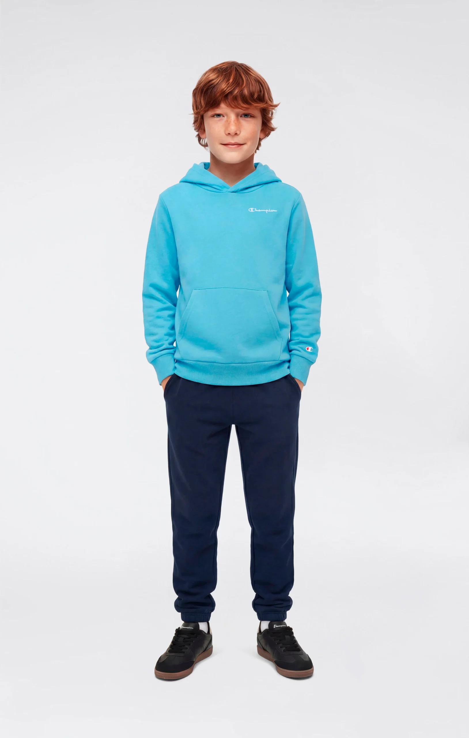 This boys’ lightweight hooded sweatshirt is made from soft Terry fabric, ideal for everyday wear and transitional seasons. The clean design is finished with an embroidered Champion logo on the chest for a recognizable and easy-to-style look. The Standard fit ensures comfort and freedom of movement all day long.@@@Fit: Standard, comfortable and versatile |Fabric: Ultra Light Soft Compact Spring Poly Terry |Composition: 73% Cotton, 27% Polyester |Weight: 240 g/m² |Lightweight hooded sweatshirt |Unbrushed interior |Embroidered Champion logo on the chest |Fixed hood |Front kangaroo pocket |Ribbed cuffs and hem
