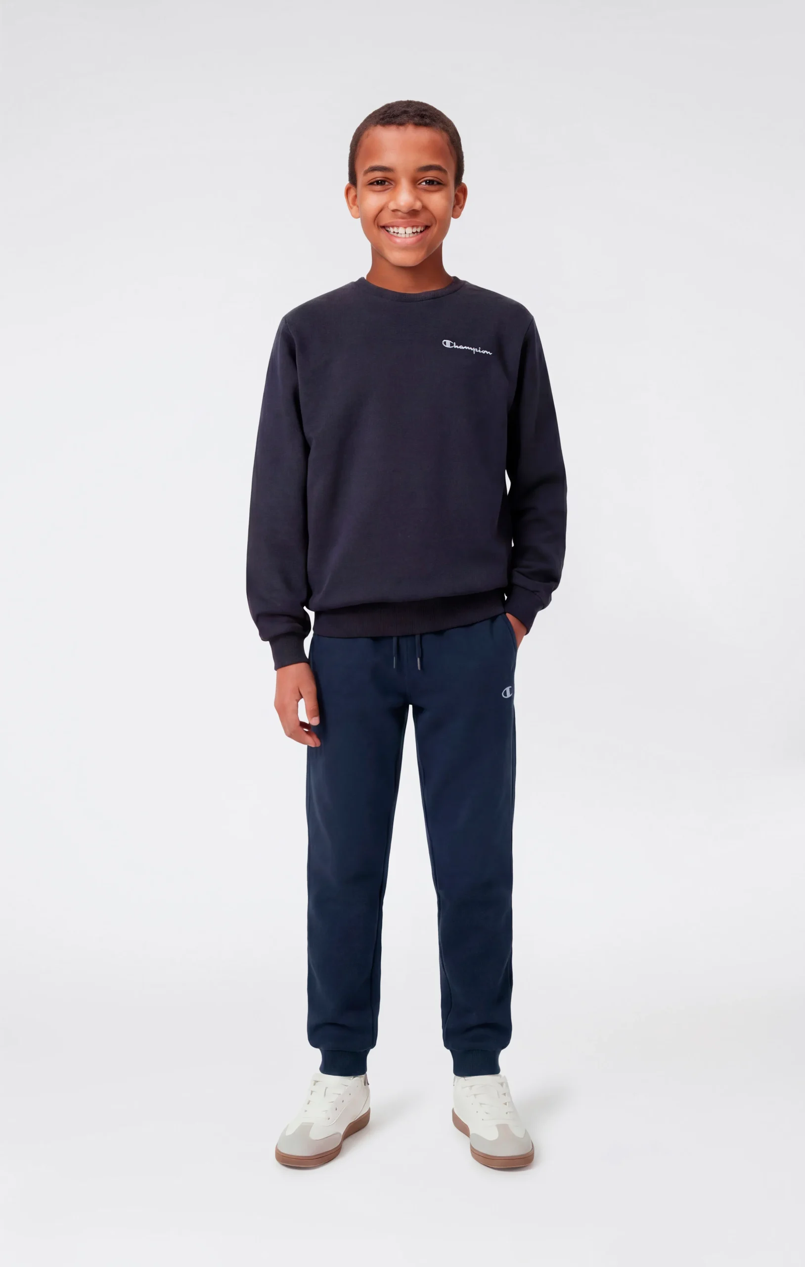Boys’ pants made from lightweight terry fabric, soft to the touch and compact in structure. Designed for everyday wear, they offer comfort and practicality thanks to a regular fit that follows movement naturally. The clean design with ribbed cuffs reflects a classic sportswear style, consistent with Champion’s DNA.@@@Fit: Standard Fit – comfortable, regular line |Fabric: Ultra Light Soft Compact Spring Poly Terry, lightweight and compact terry fabric |Composition: 73% Cotton, 27% Polyester |Weight: 240 g/m² |Design: long leg with ribbed cuffs |Details: side pockets |Unbrushed interior