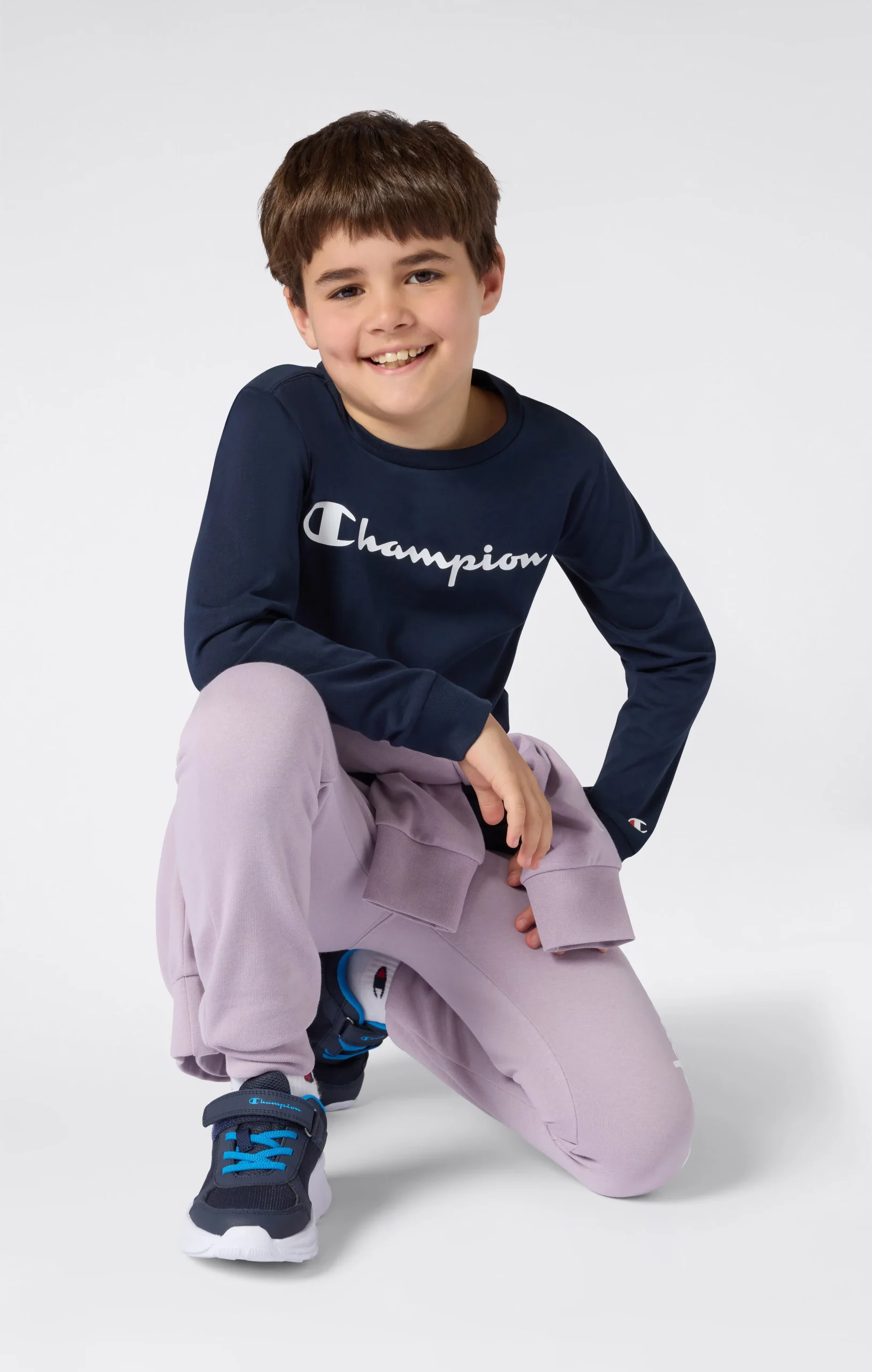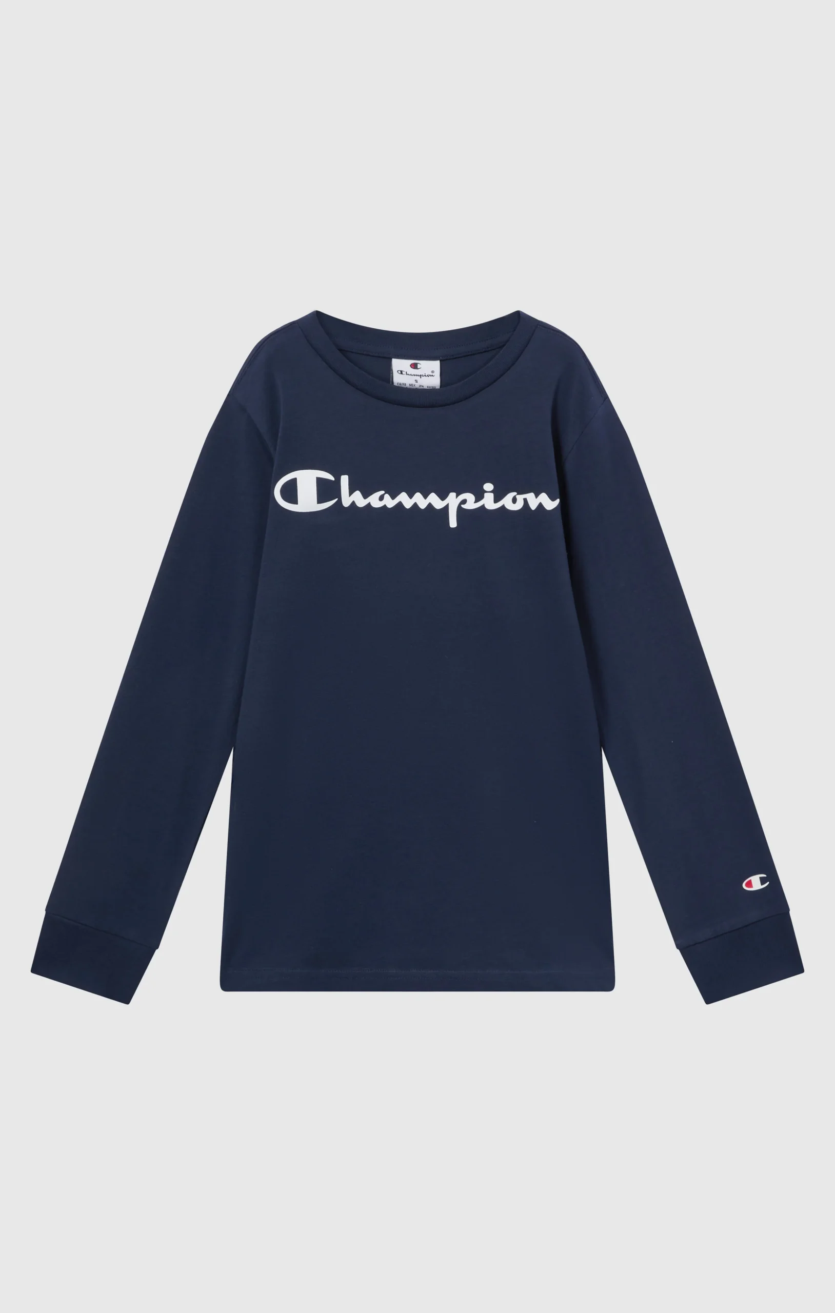 A mid-season must-have, this Boys’ long-sleeve t-shirt is made from lightweight cotton jersey and features a printed Champion script logo on the chest. The essential design and comfortable fit make it ideal for school or leisure.@@@Fabric: Lightweight cotton jersey, 150 g/m² |Composition: 100% Cotton |Fit: Standard Fit: versatile and comfortable fit with standard widths and lengths. Close to the body, with simple lines that do not cling to the figure. Regular shoulder cut.