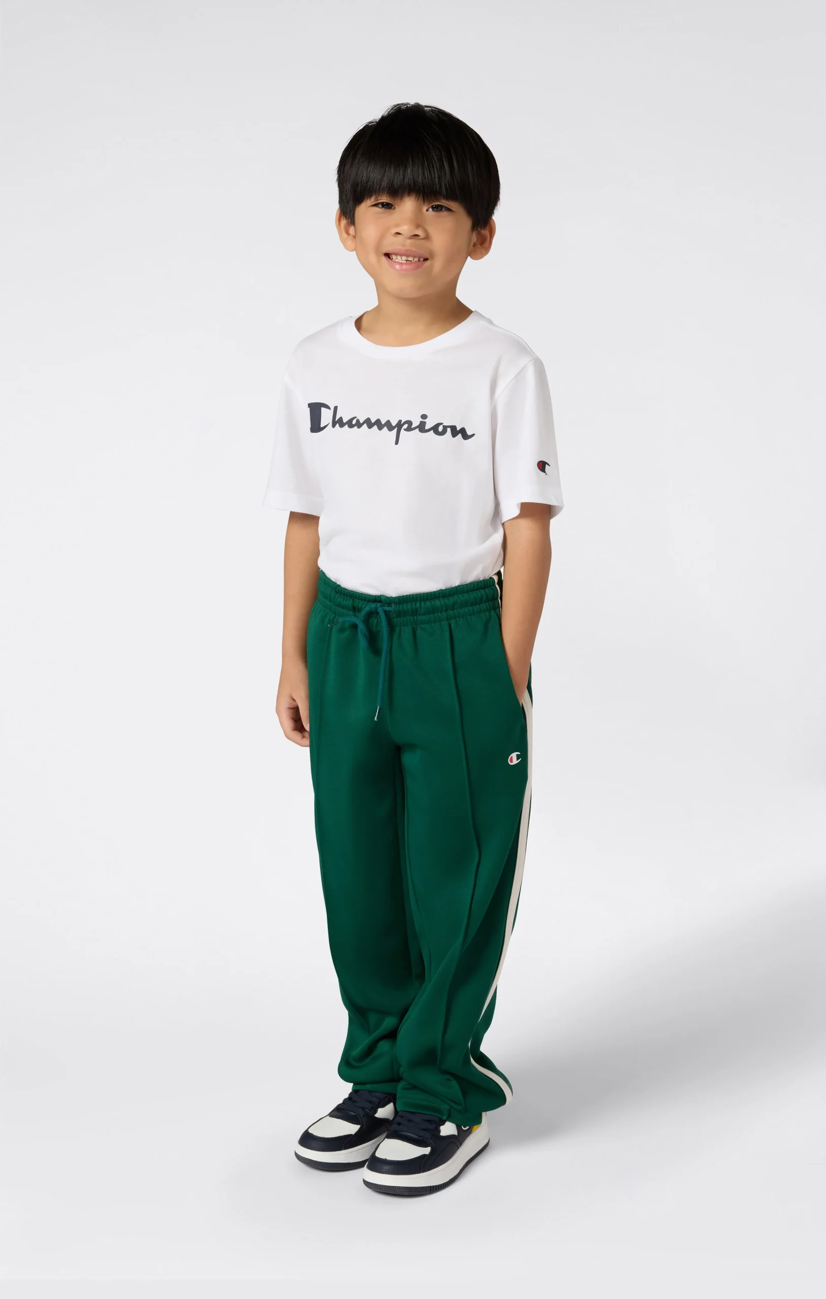 These Boys’ straight-leg track pants are made from smooth polyester interlock for a clean, sporty look. Contrast piping and an embroidered C logo on the legs add a heritage touch. Perfect for everyday freedom of movement.@@@Fabric: Polyester interlock, 300 g/m² |Composition: 100% Polyester |Elastic waistband with drawstring |Contrasting trims on the legs |Embroidered C logo |Straight hem |Fit: Relax Fit: soft and comfortable fit.