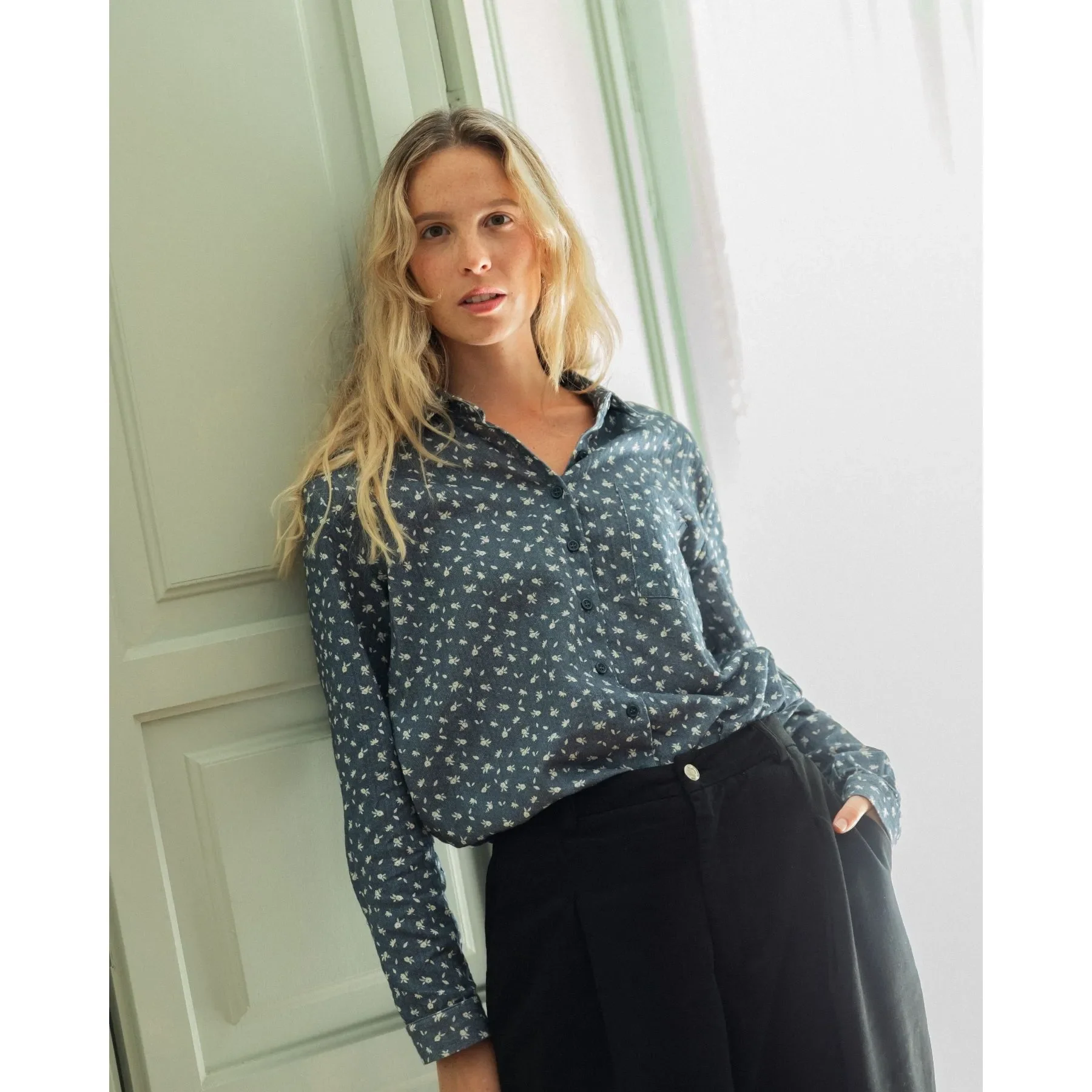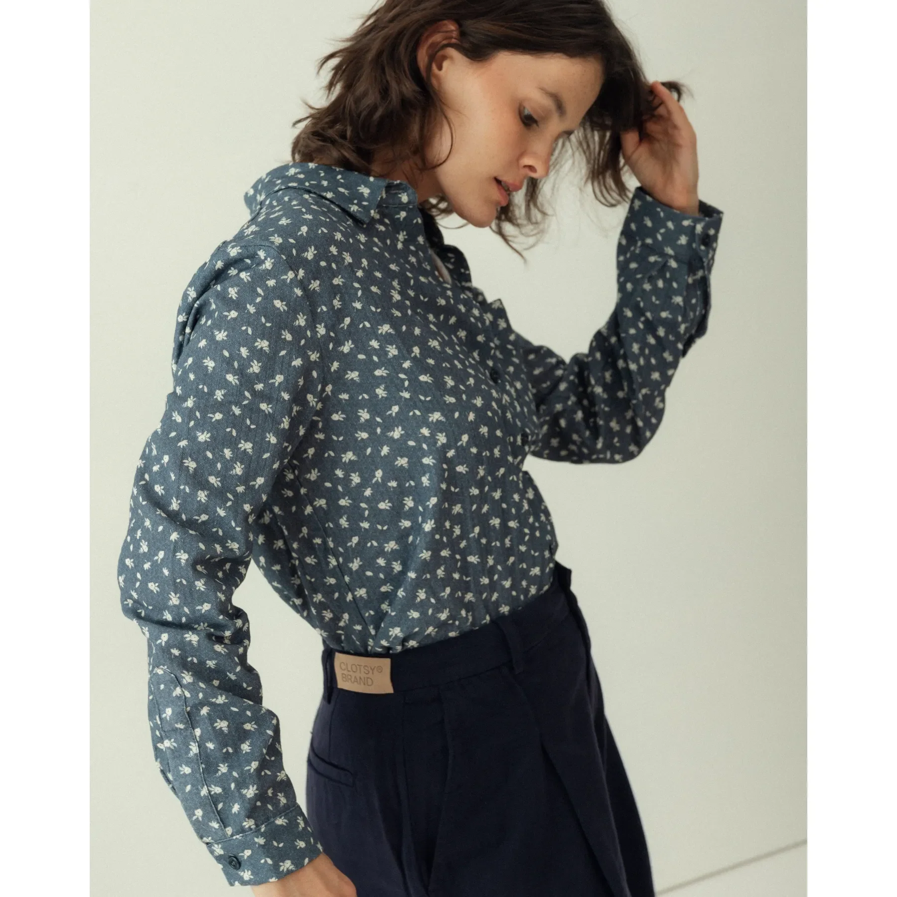 Camisa azul con estampado floral