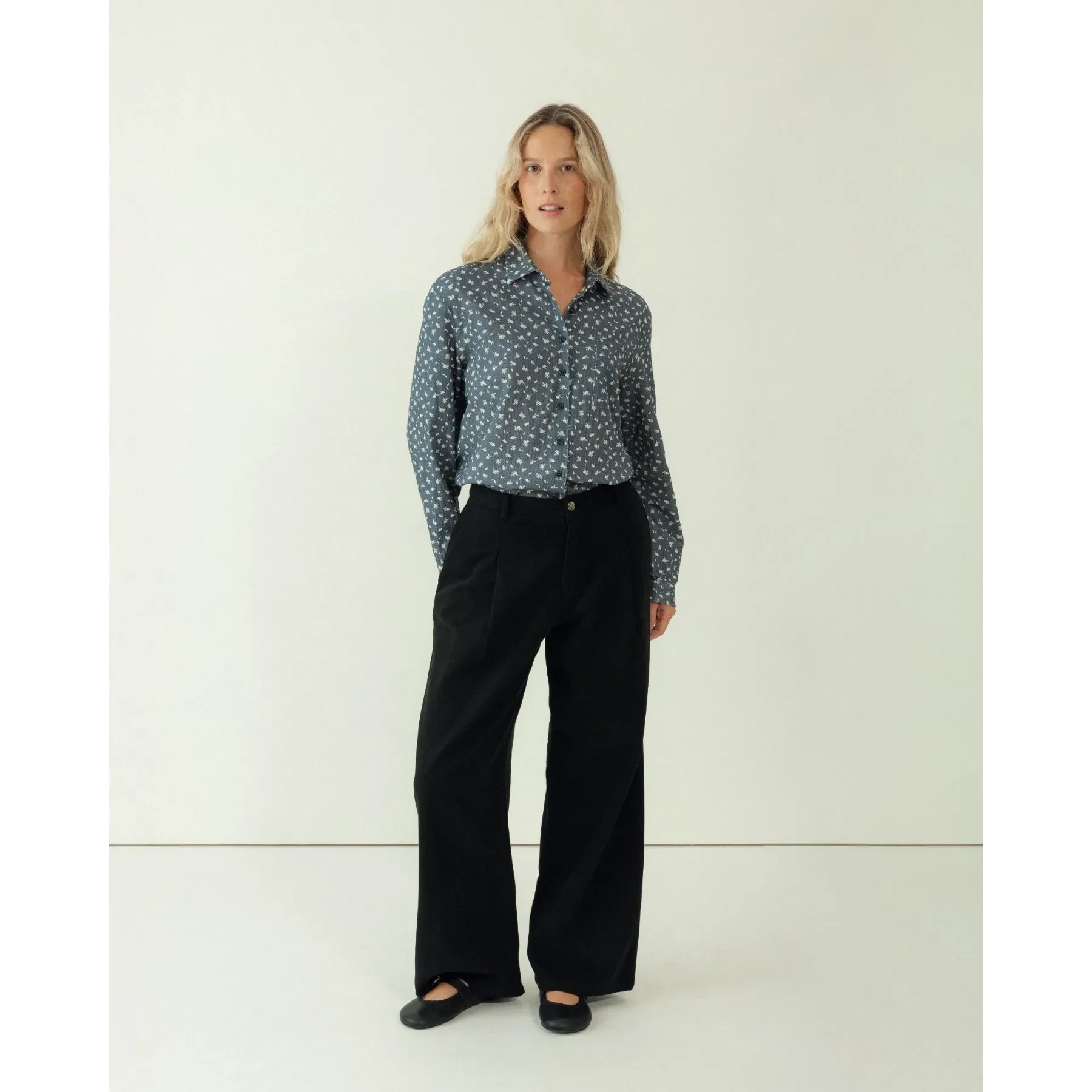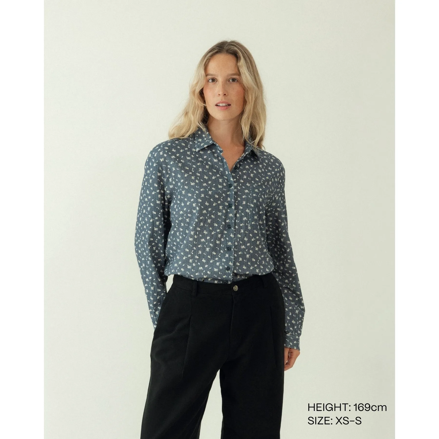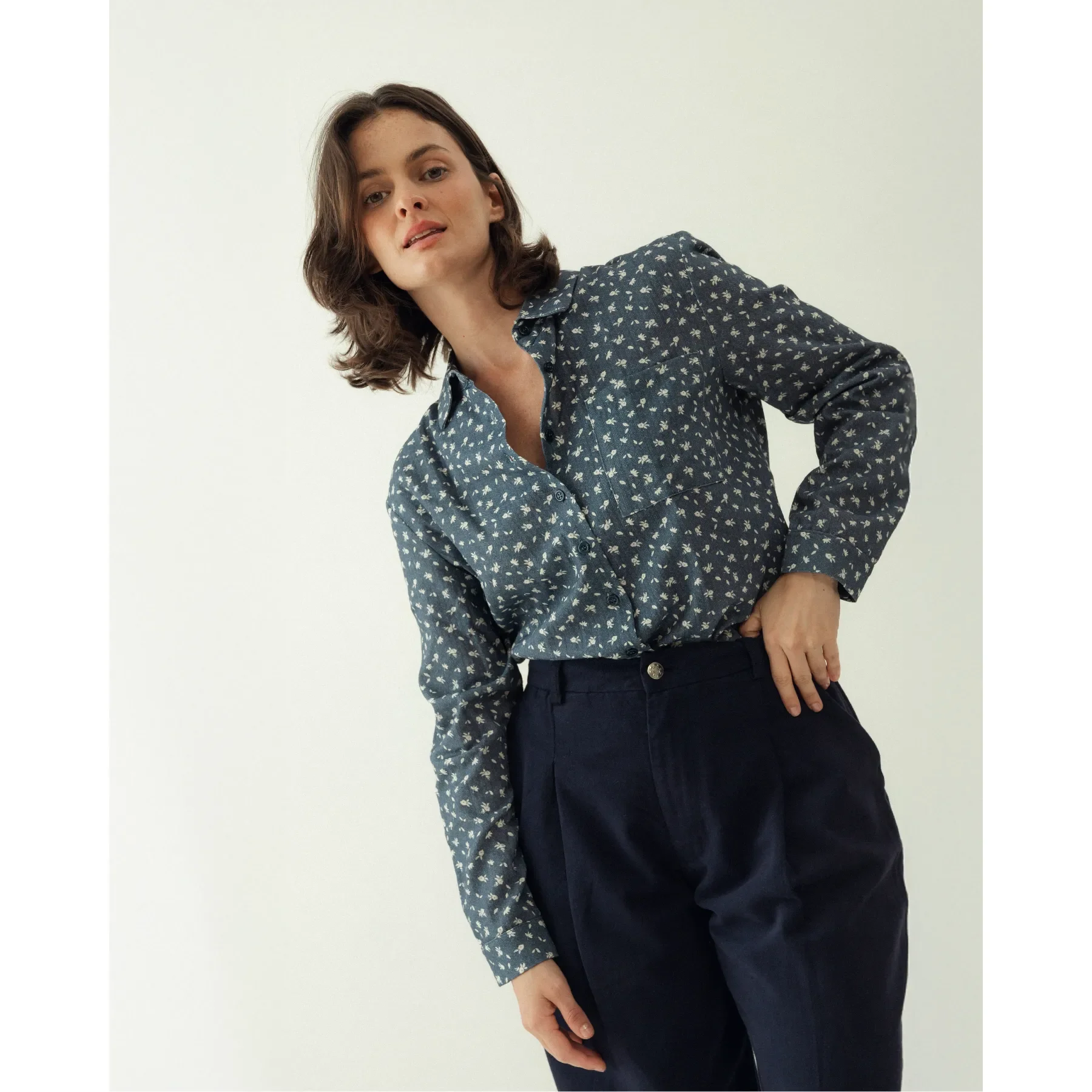 Inspirada en nuestras camisas Raya Candela y Clásica Vichy, esta versión estampada en algodón 100% orgánico aporta un toque vintage a tu look.