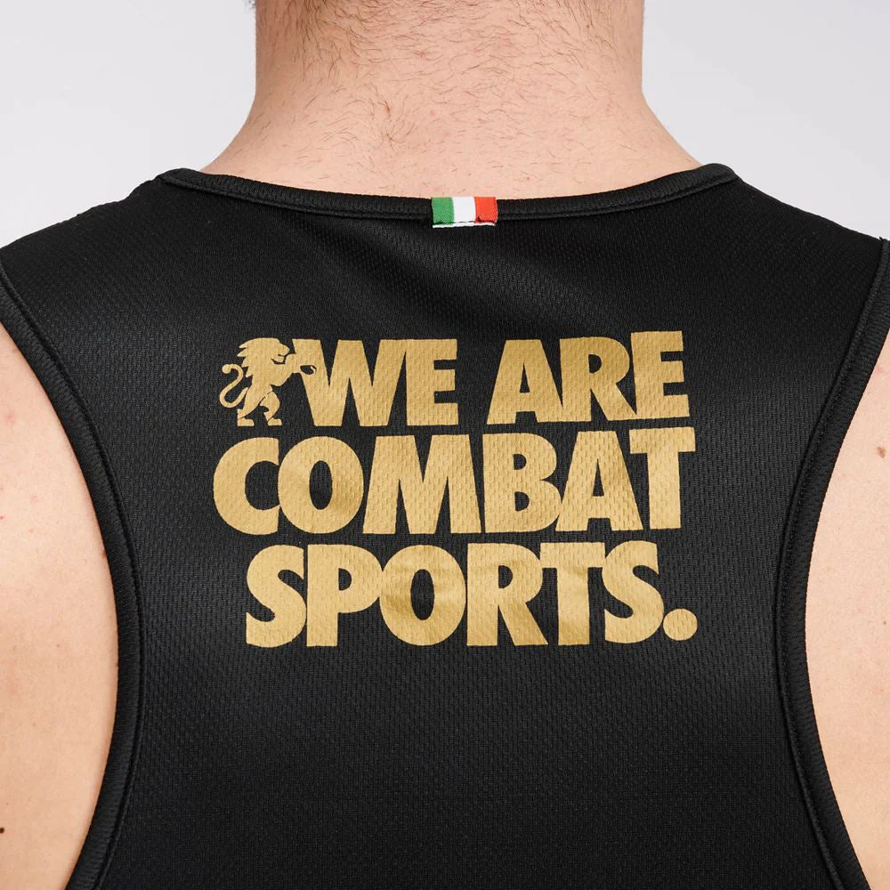 La Camiseta sin mangas Leone DNA AB228 es una prenda cómoda y versátil. Realizada en tejido ligero transpirable, ofrece una amplia sisa para una total libertad de movimiento. El amplio logo dorado en el pecho da un look auténtico y precioso.