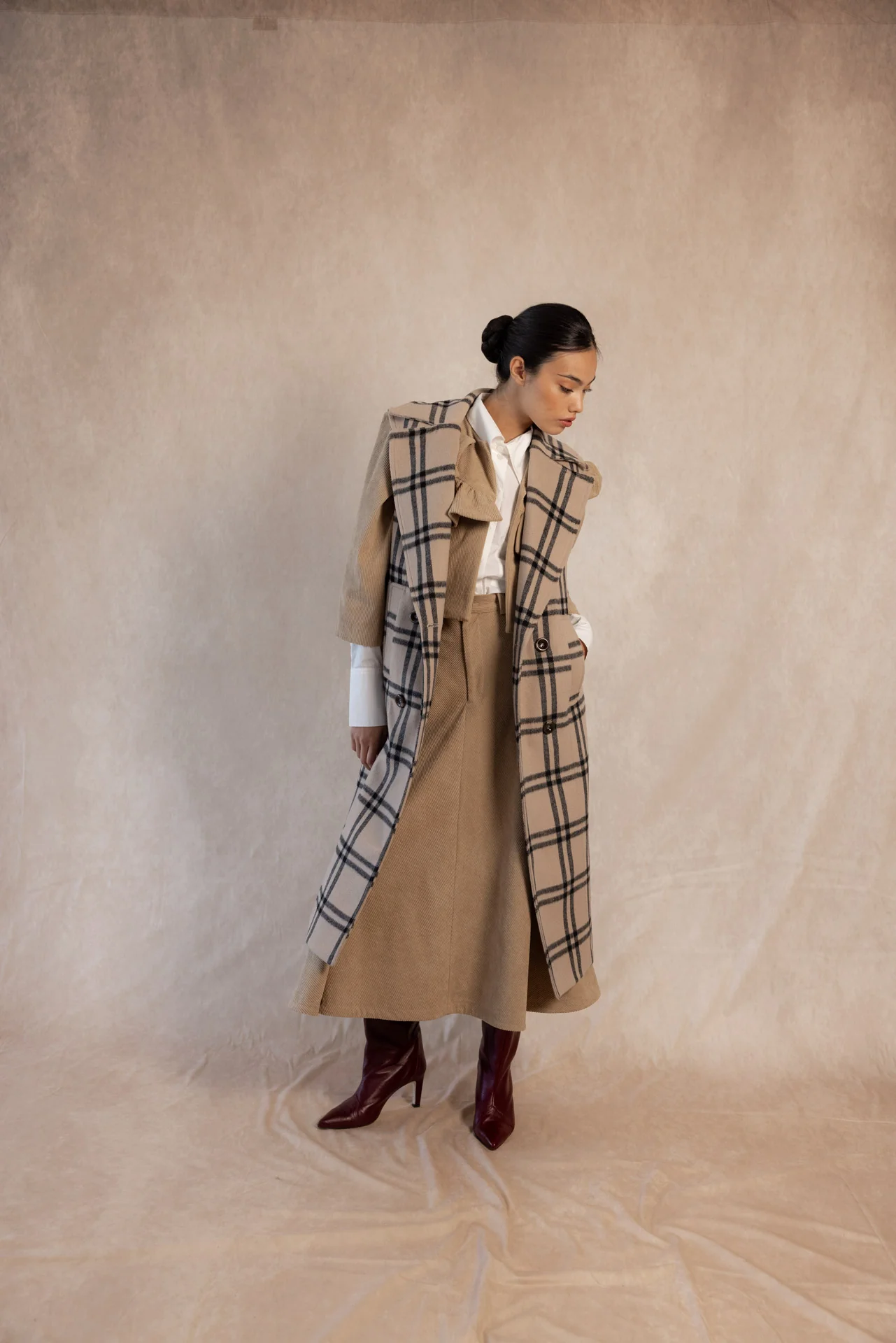 El Chaleco Piero Crudo de Coosy es una prenda icónica que combina elegancia, calidez y versatilidad. Su diseño largo y estructurado, confeccionado en un tejido suave de tono crudo con estampado de cuadros en contraste, aporta luminosidad y sofisticación a cualquier look de otoño e invierno.