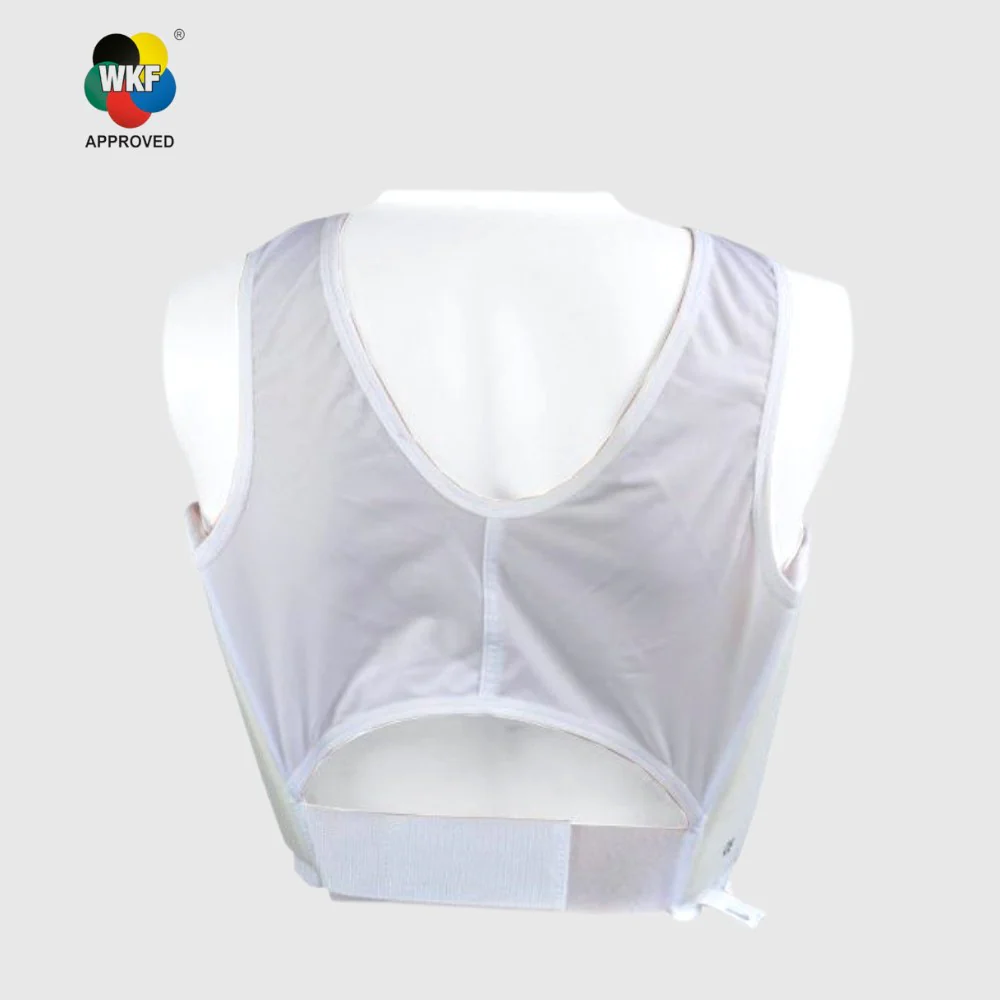 El Chaleco protector de karate Smai WKF Art. 69W es una protección fundamental para quienes practican karate. Fabricado en algodón y poliéster, ofrece protección en la parte frontal y en los costados, y en la parte trasera tiene un cierre de velcro. Homologado por WKF, se puede utilizar en todas las competiciones nacionales e internacionales.