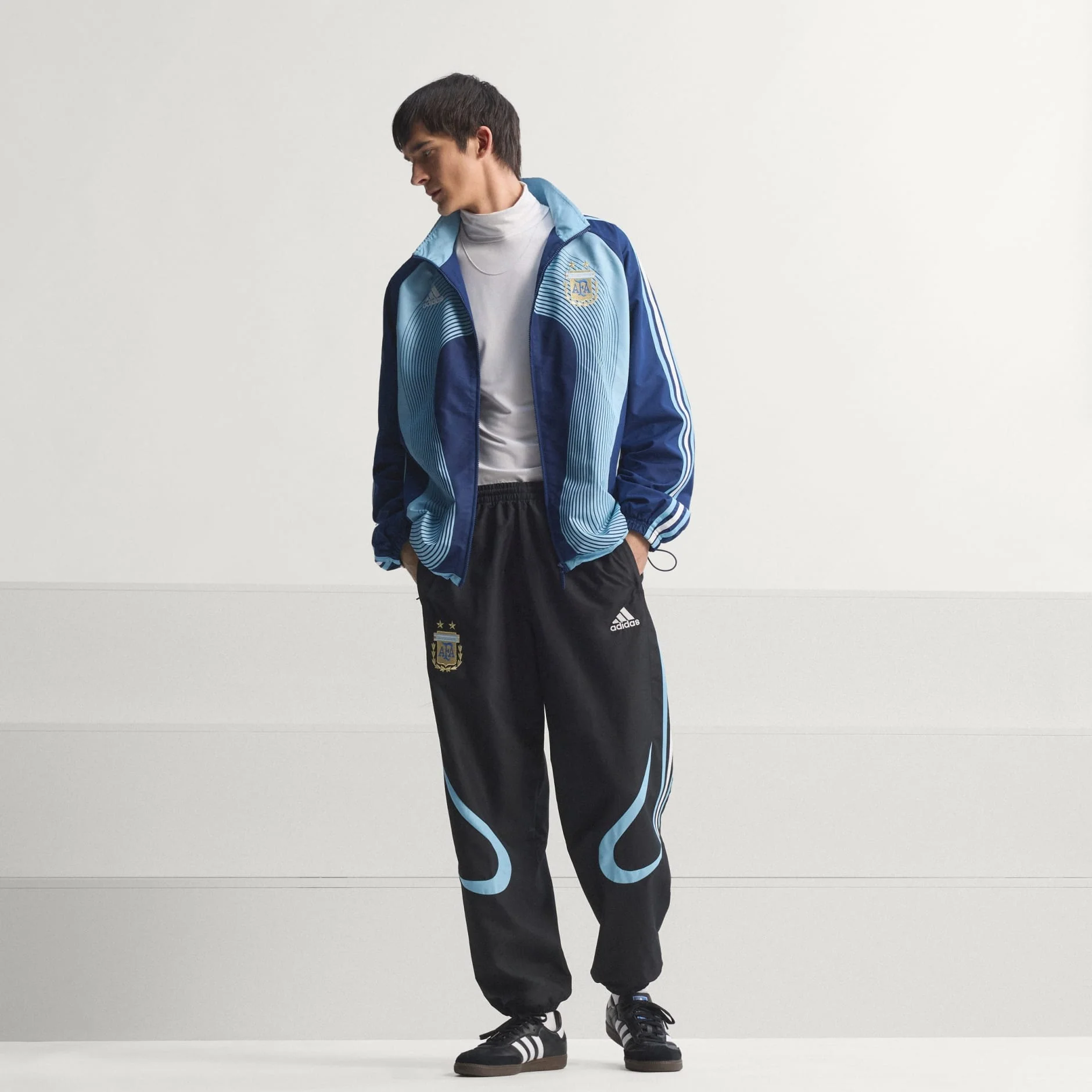Revive los días de gloria con un guiño a la historia del fútbol con la Chaqueta Deportiva Visitante Selección Argentina 2006. Esta Chaqueta Deportiva recupera el emblemático diseño de 2006, y es una opción fantástica tanto para los aficionados como para los entusiastas de la moda. Confeccionada con un corte holgado, ofrece comodidad y libertad de movimiento, por lo que es adecuada tanto para usarla de manera informal como para animar a tu equipo. El cierre frontal hace que sea fácil de poner y quitar, mientras que el cuello alto añade un toque de estilo clásico. Con el escudo de Argentina bien visible, esta Chaqueta Deportiva es una prenda imprescindible para un aficionado del fútbol. Muestra con orgullo tu amor por el fútbol con adidas, donde la tradición se une al estilo moderno.