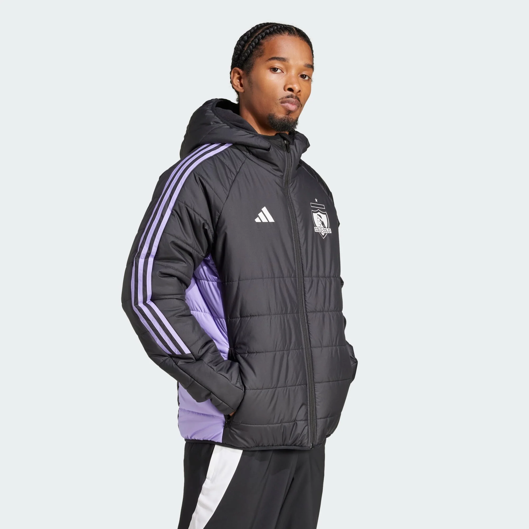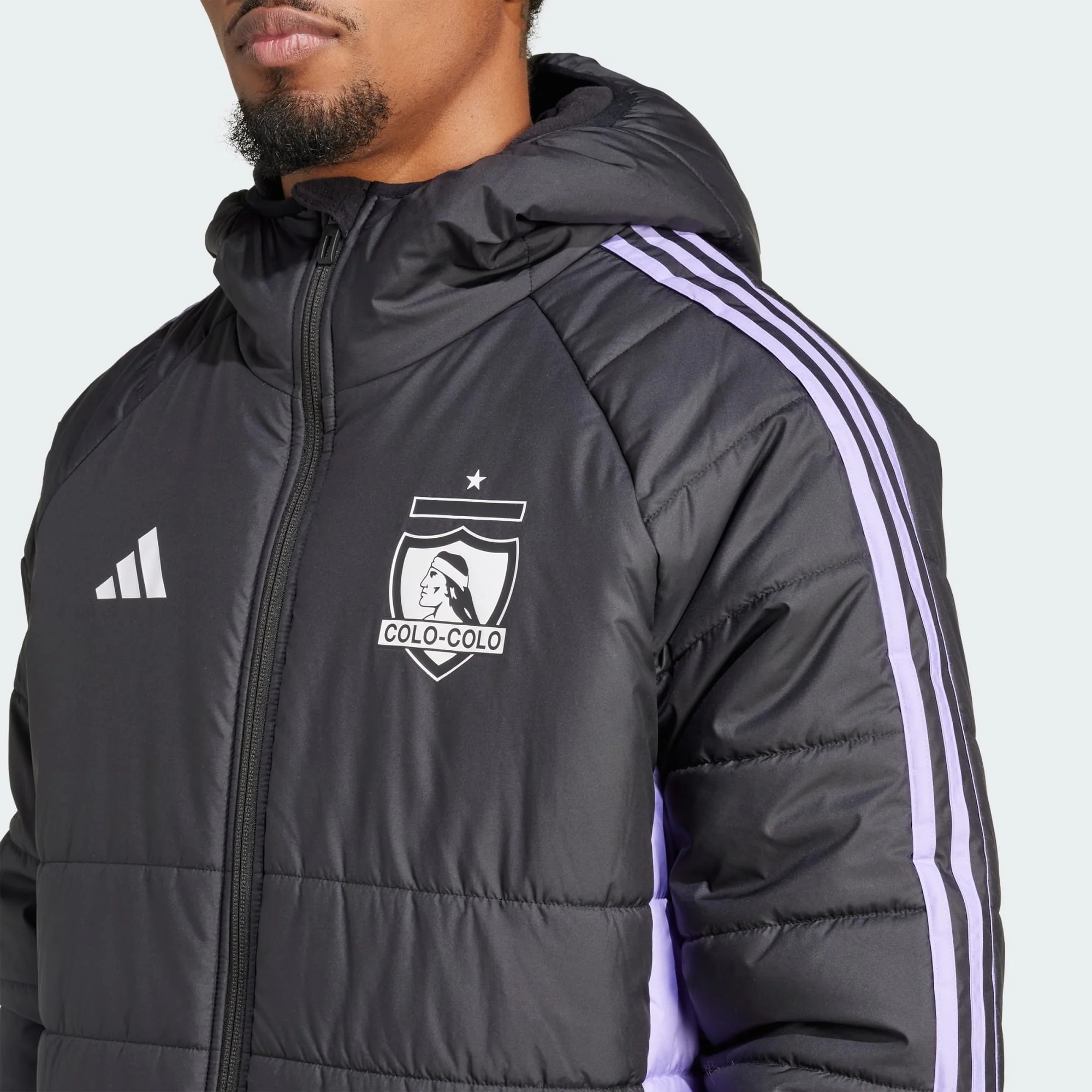 Con detalles en morado que resaltan su diseño, esta parka de Colo-Colo 2025 es la opción perfecta para enfrentar los días más fríos con estilo y comodidad. Confeccionada para ofrecer la máxima protección contra el clima, combina funcionalidad con el orgullo del Cacique. Su insignia monocromática en blanco y negro destaca en el pecho, reafirmando la identidad del Eterno Campeón. Ideal para los hinchas que buscan mantener el calor sin perder el toque moderno y elegante de Colo-Colo