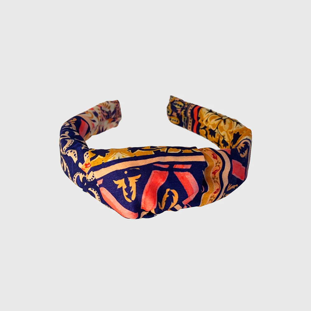Este diseño único está inspirado en Diana, nuestra diseñadora: organizada, responsable, divertida y muy sociable. Como ella, el Cintillo Diana es único. Confeccionado en tela anudada, con una estructura firme que garantiza comodidad y estilo.