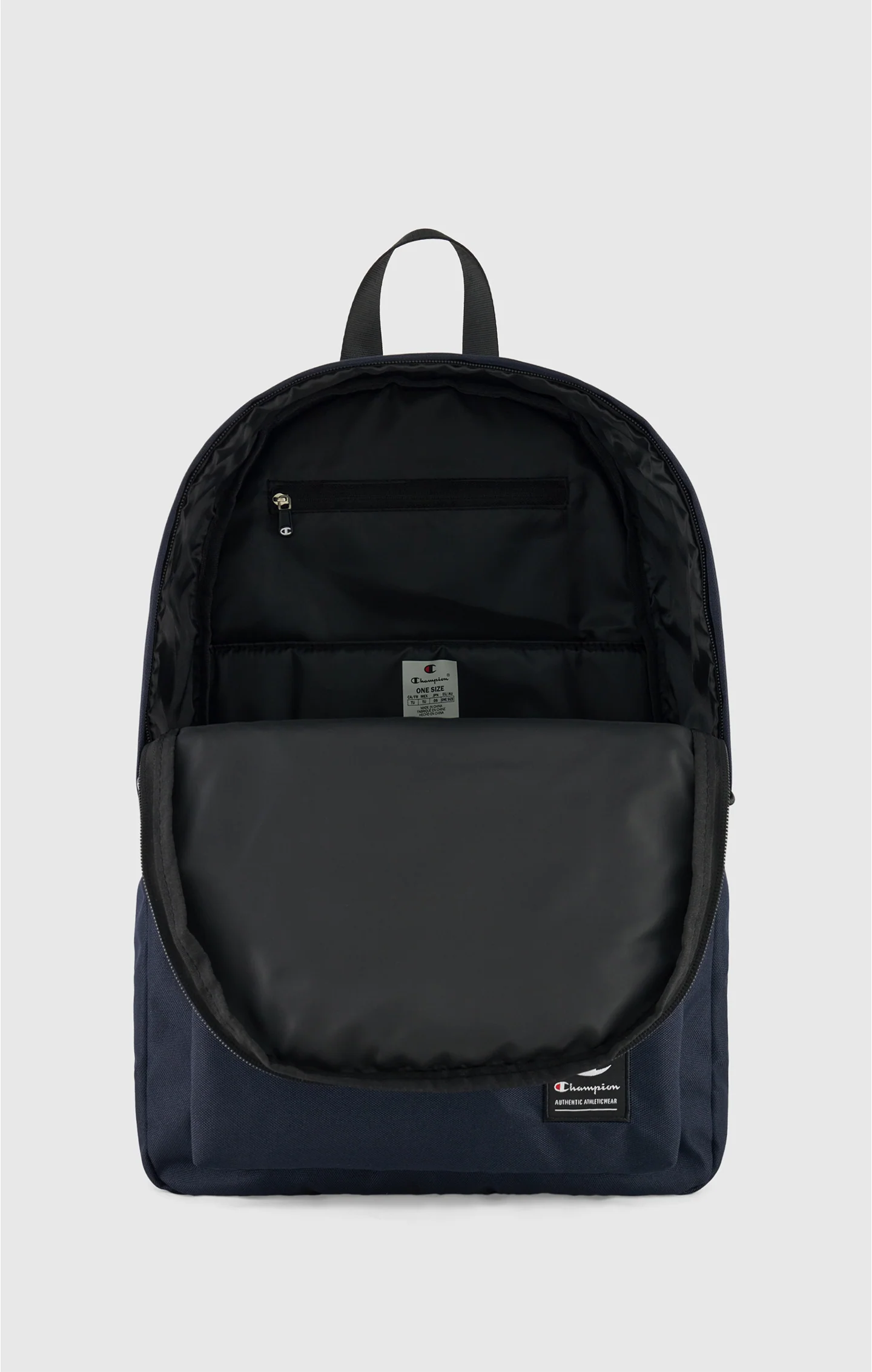 Stash your daily essentials with this Champion backpack, detailed with a fine jacquard label. It is sure to match with any outfit and look effortless while on the go.@@@230 gsm Light Woven Water Repellent |100% Polyester |Branded jacquard label |Top handle |Padded, adjustable shoulder straps |Zipped closure |Front pocket, 1 inner pocket |13» laptop compartment |18″H x 13″W x 5.5″D / 45 x 32 x 13.5 cm ca.