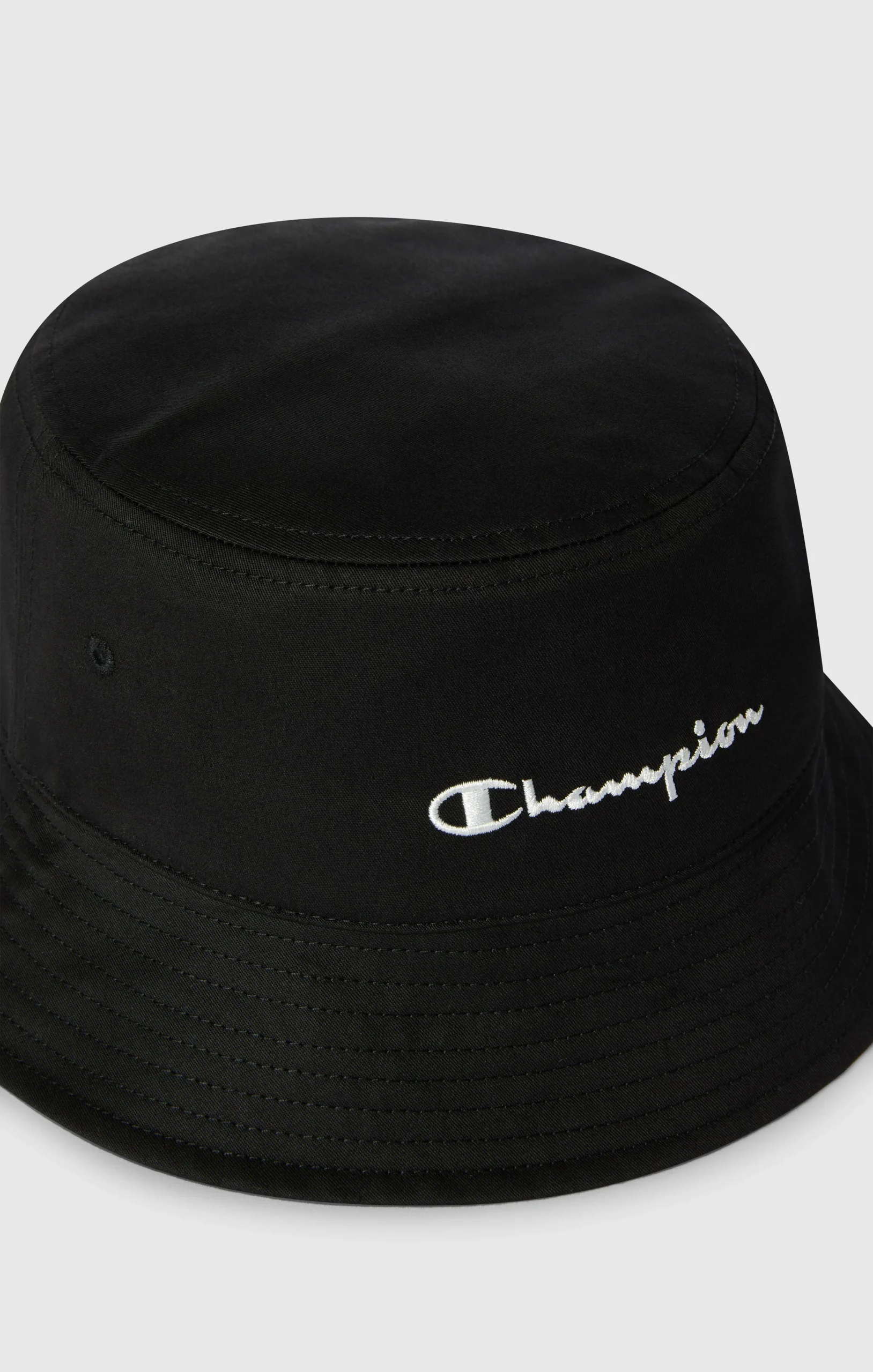 This bucket hat is crafted from 150 g/m² cotton twill, a compact and durable fabric that helps maintain its shape while ensuring comfort and breathability. The soft construction with a short brim defines a clean sportswear-inspired design, ideal for completing casual and urban looks with functional style.@@@Fabric: cotton twill |Composition: 100% Cotton |Weight: 150 g/m² |Champion logo embroidered on the front