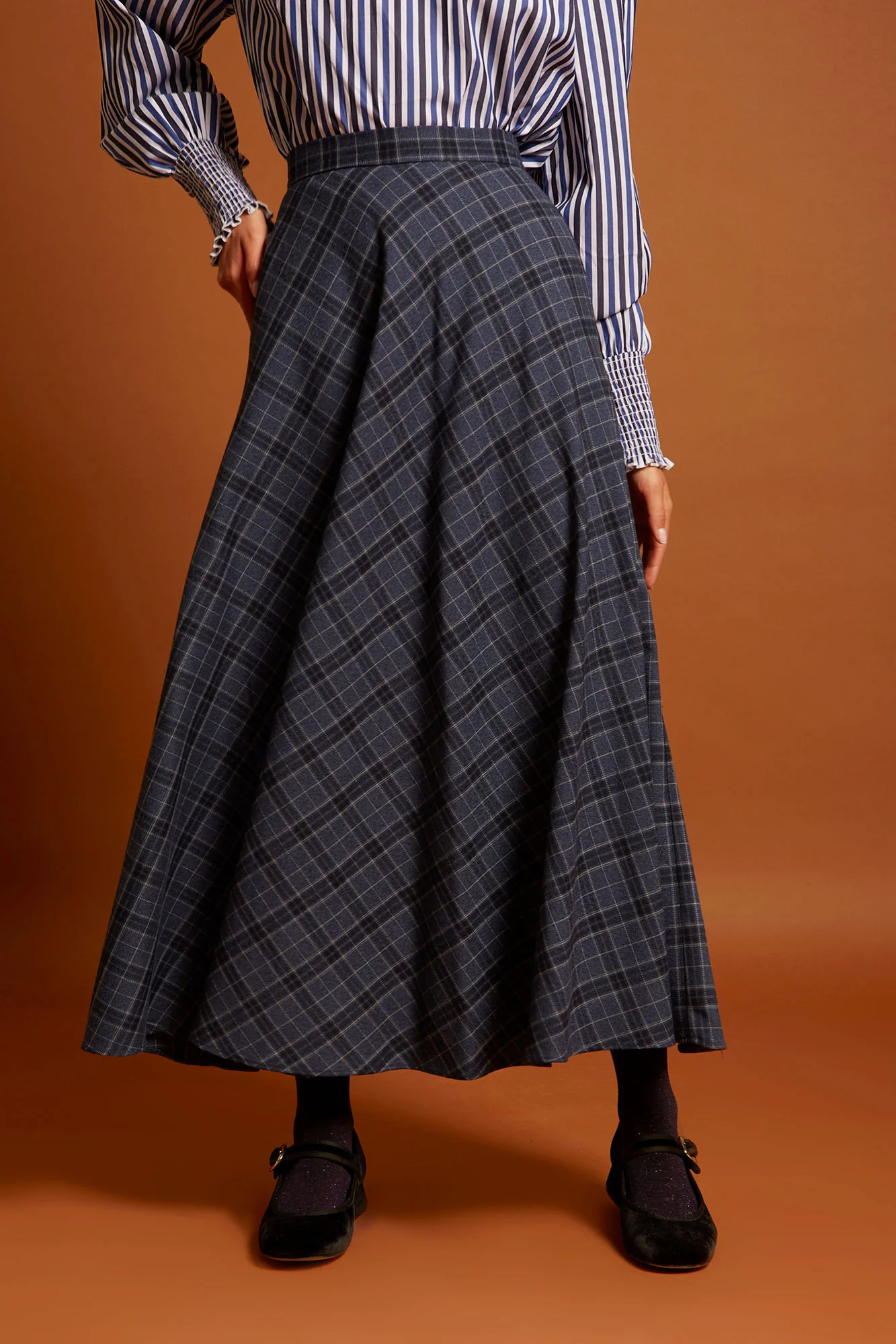 La falda Akita es una prenda imprescindible para tu armario esta temporada. Su diseño de talle medio y vuelo amplio estiliza la figura, aportando movimiento y comodidad en cada paso. El estampado de cuadros en tonos azul marino la convierte en una pieza atemporal y fácil de combinar con blusas, camisas y jerséis.