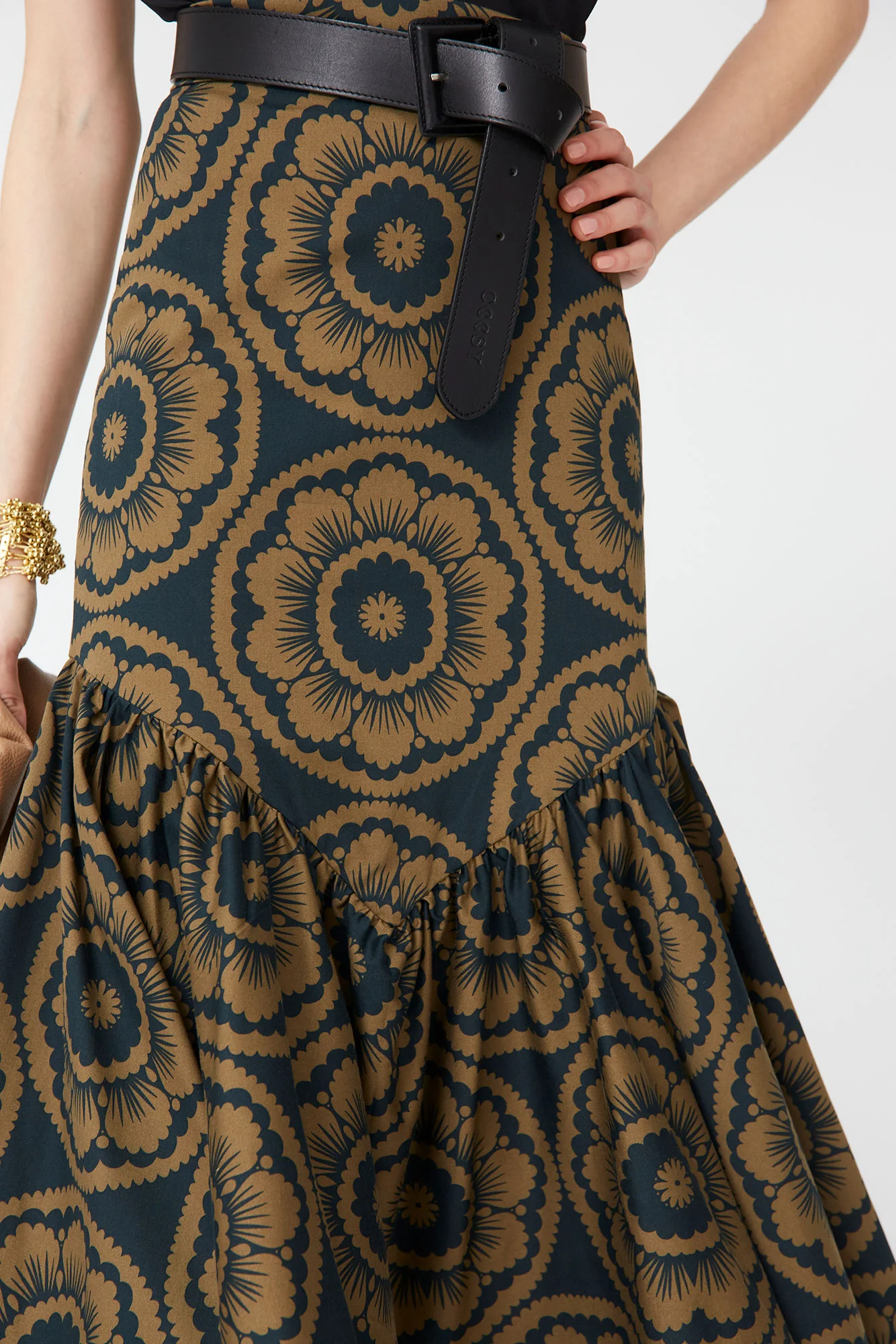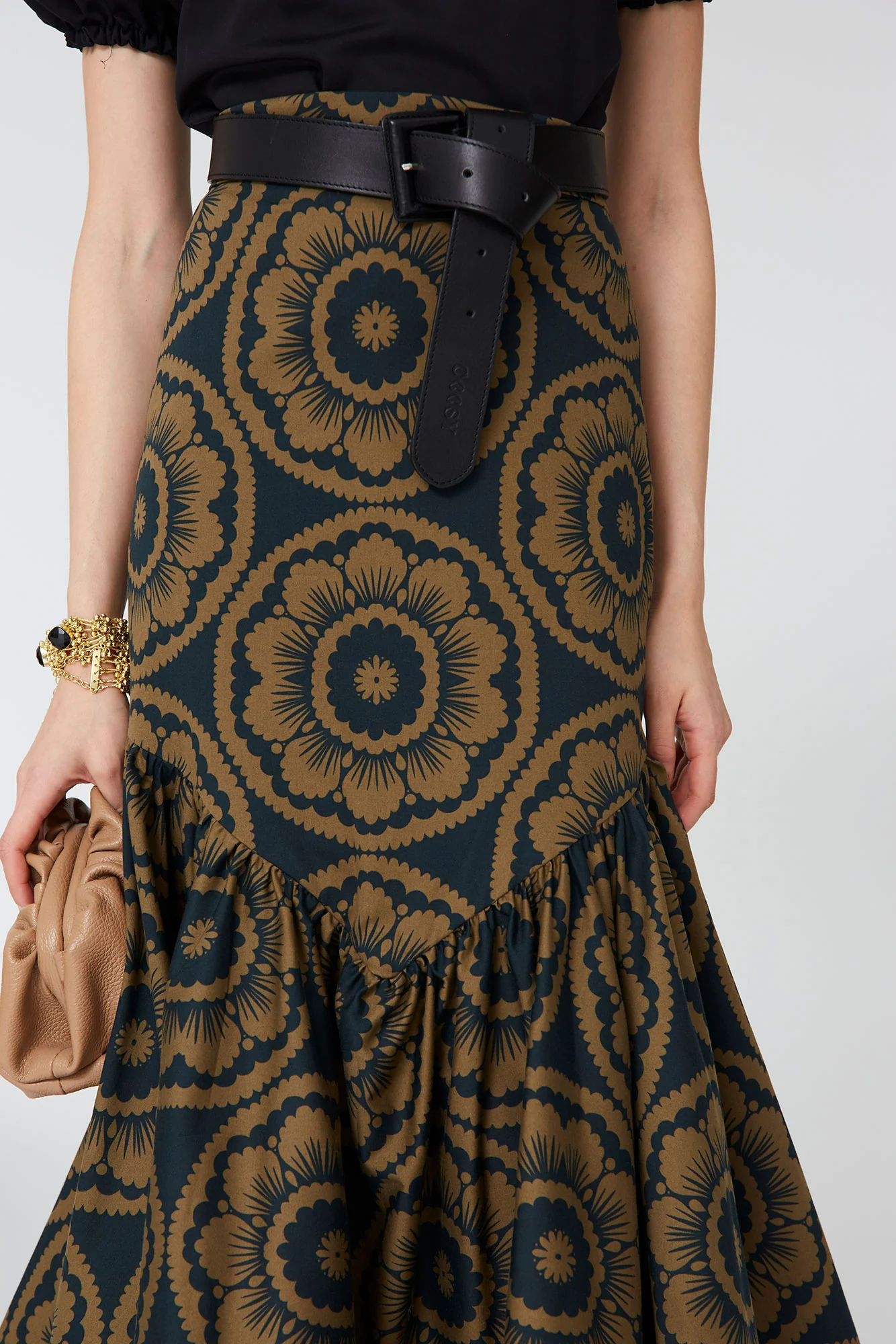 La Falda Señora de Coosy es una pieza sofisticada y con carácter que redefine la feminidad contemporánea. Confeccionada en un tejido estructurado de caída fluida, esta falda midi destaca por su estampado floral geométrico en tonos cálidos y profundos, que aporta personalidad y un aire retro chic irresistible.