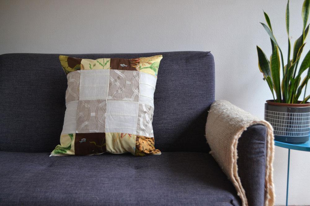 Dale un toque a tu casa con los nuevos cojines Minka de nuestra colección Minka Home! Porque la decoración también puede ser sustentable y con sentido. Patchwork 16 piezas diversos estampados que conforman 4 líneas, dos extremos motivos botánicos en colores café y beige, dos líneas centrales en colores beige y crema.