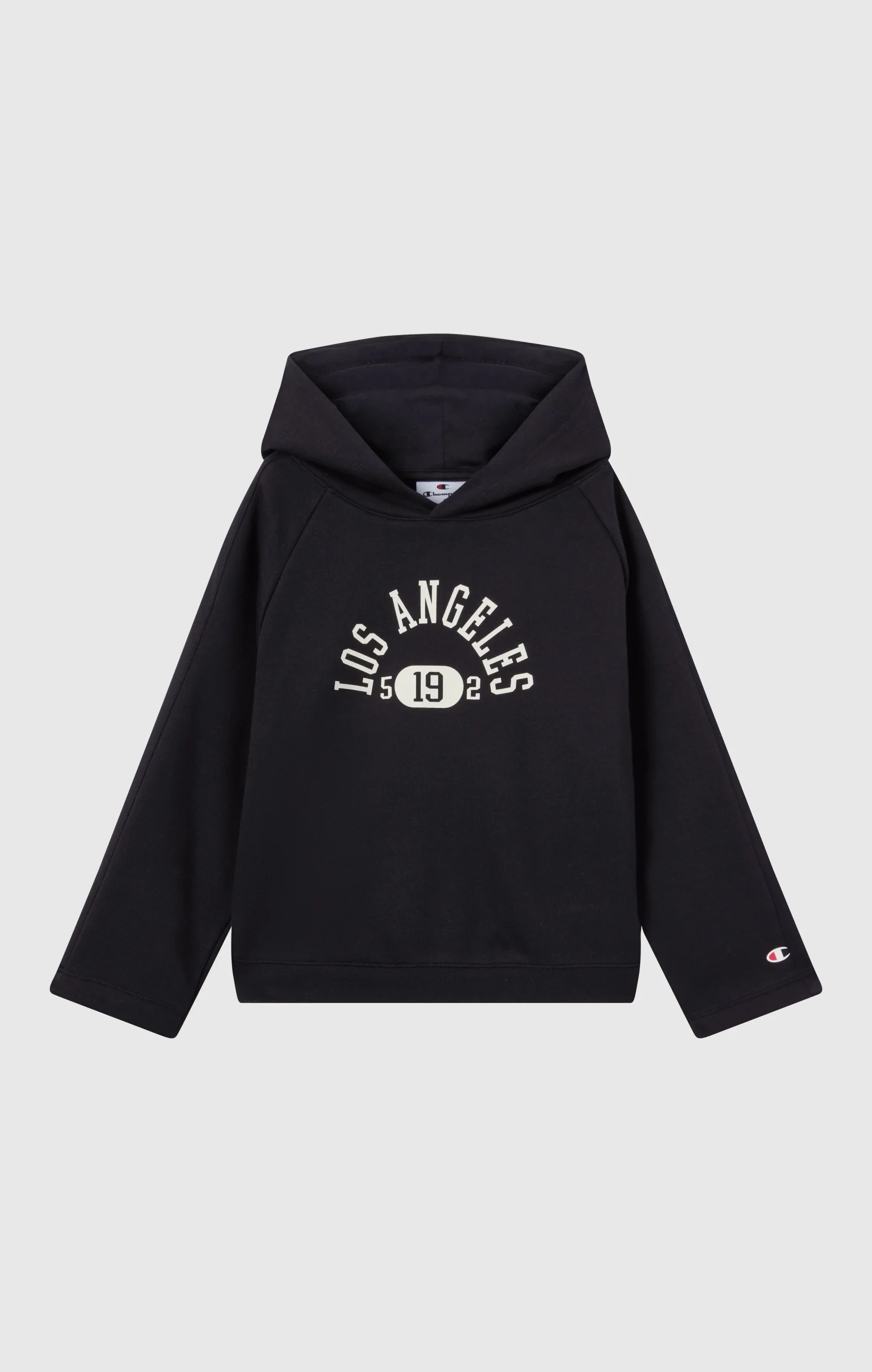 A lightweight and compact sweatshirt designed for girls seeking everyday comfort and style. The soft fleece fabric with brushed interior provides warmth without bulk, while the regular fit ensures freedom of movement. Ideal for school, leisure, or relaxation.@@@Fabric: Compact and soft fleece in cotton blend – weight: 240 g/m² |Composition: 73% Cotton, 27% Polyester |Brushed interior |Fixed hood |Ribbed cuffs and hem |Fit: Regular Fit – Versatile and comfortable fit with standard widths and lengths. Close to the body, it has simple lines that do not cling. Regular shoulder cut.