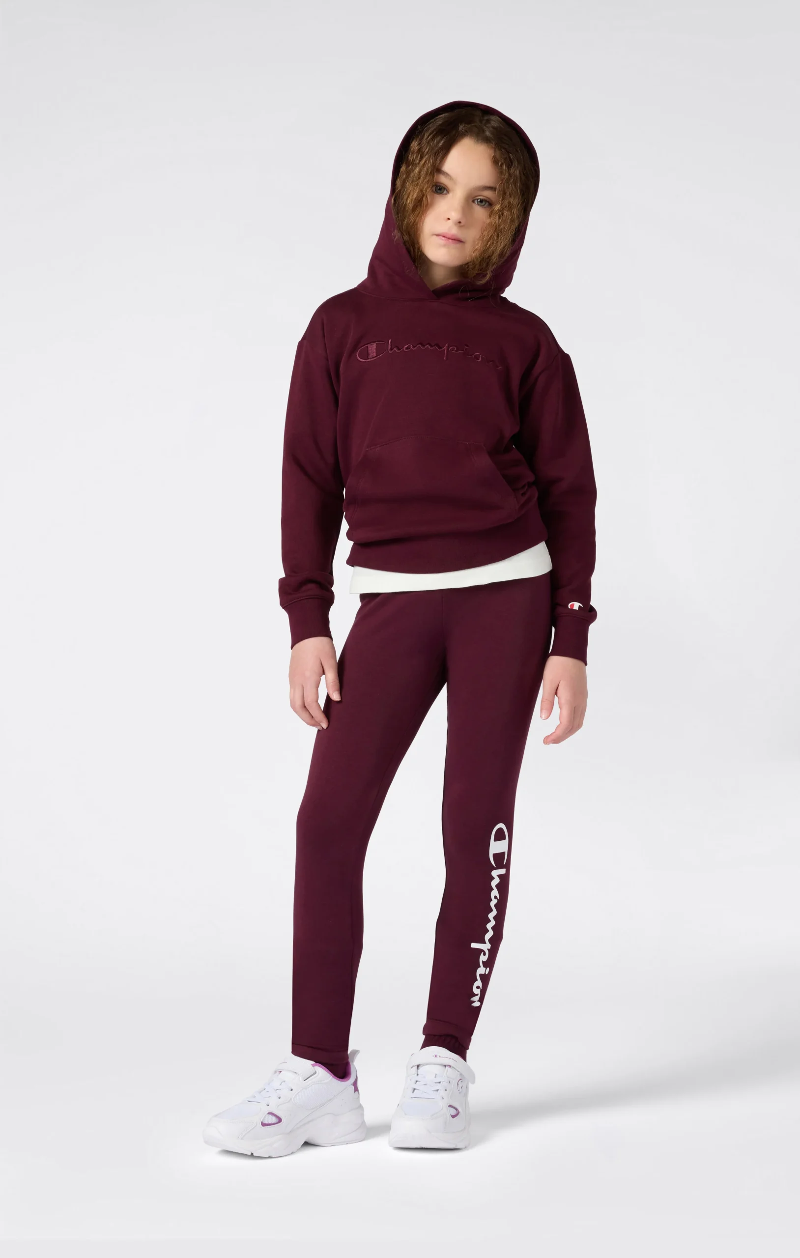 Girls’ Fleece Hoodie with Big Embroidered Logo Icons