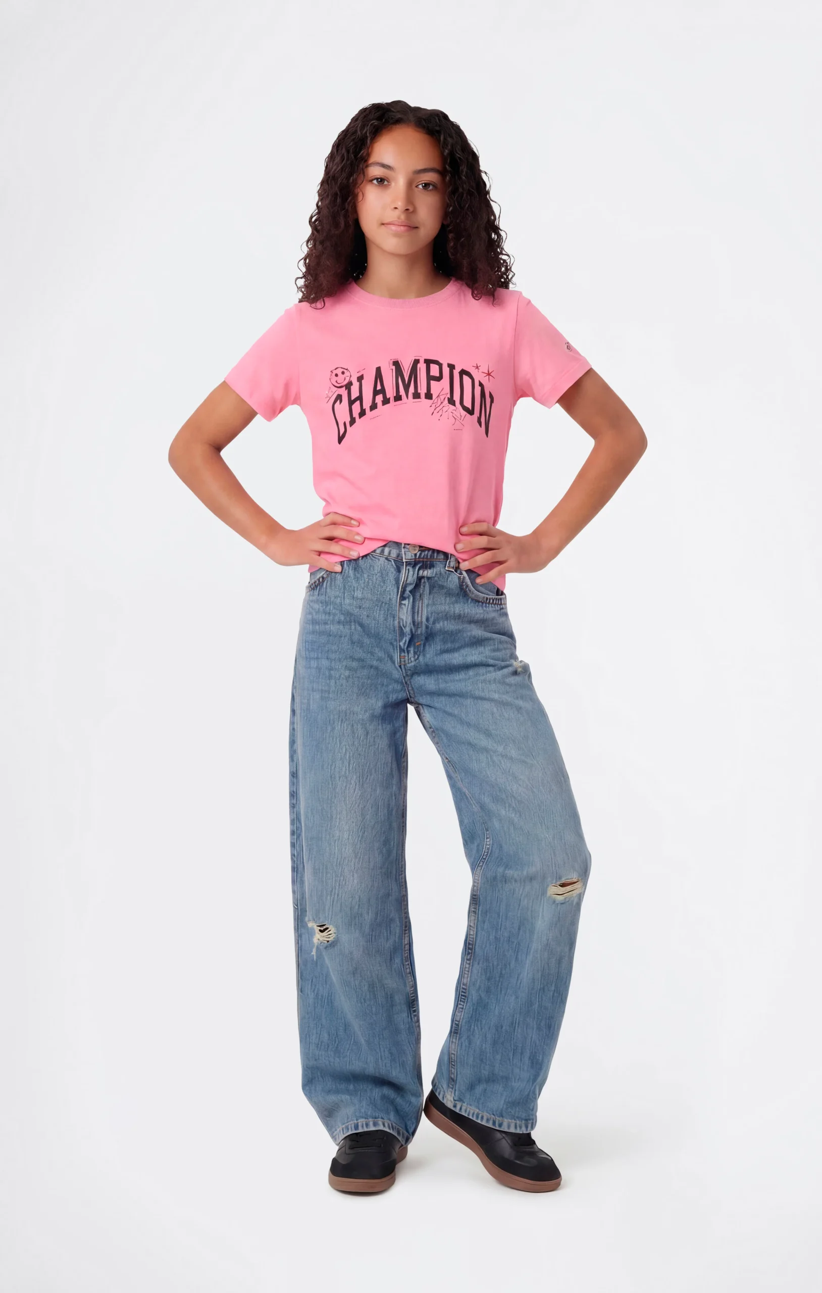 This girls’ crewneck T-shirt is part of a graphic T-shirt pack that plays with the season’s colours, expressing Champion style in a lively and contemporary way. Made from lightweight cotton jersey, it offers a soft hand feel and comfortable wear for everyday use. The graphics on the front add a fun and expressive touch, while the clean design makes the piece easy to style and suitable for different occasions. The Standard Fit ensures a regular and comfortable silhouette.@@@Standard Fit, regular and comfortable silhouette |Lightweight cotton jersey |Composition: 100% Cotton |Weight: 150 g/m² |Crew neck |Short sleeves
