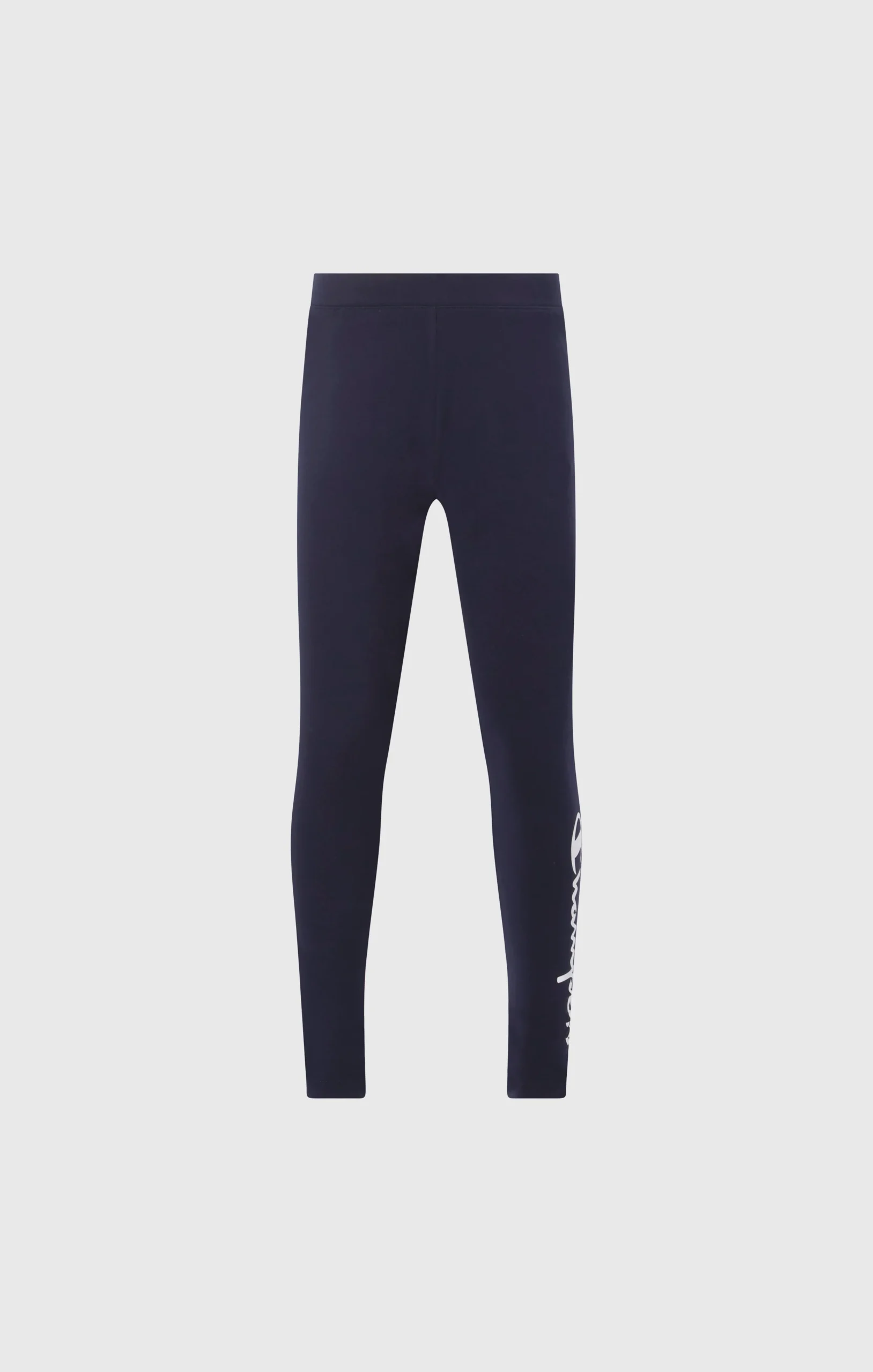 Girls’ leggings designed for everyday activities, from school to free time. Made from Stretch Athletic Jersey, they offer a fitted silhouette that follows the body’s natural movements. The stretch cotton fabric ensures comfort and freedom of movement, making them ideal for daily wear.@@@Fitted fit – close to the body |Fabric: Stretch Athletic Jersey |Composition: 95% Cotton, 5% Elastane |Weight: 180 g/m² |Essential design |No pockets |champion logo printed on the leg