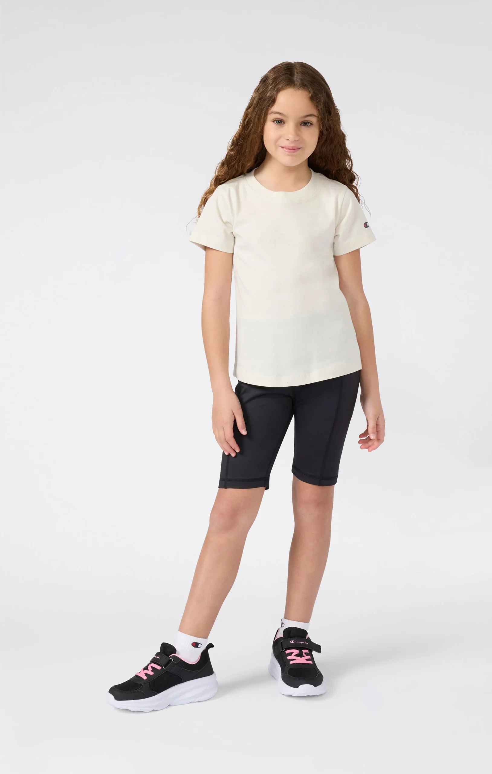 Part of the C-Tech line, these Champion fitted shorts for girls provide support and freedom of movement thanks to the Compact Stretch Poly Jersey fabric (280 g/m²). The polyester and elastane blend ensures elasticity and durability, making them perfect for sports and leisure. The Fitted cut hugs the body without sacrificing comfort, while the elastic waistband guarantees stability during every activity. An essential style completed by the Champion logo.@@@Composition: 84% Polyester, 16% Elastane |Fabric: Compact Stretch Poly Jersey |Weight: 280 g/m² |Line: C-Tech – performance, lightness and functionality |Elastic waistband |Short cut |Printed Champion logo |Fit: Fitted – slim fit close to the body