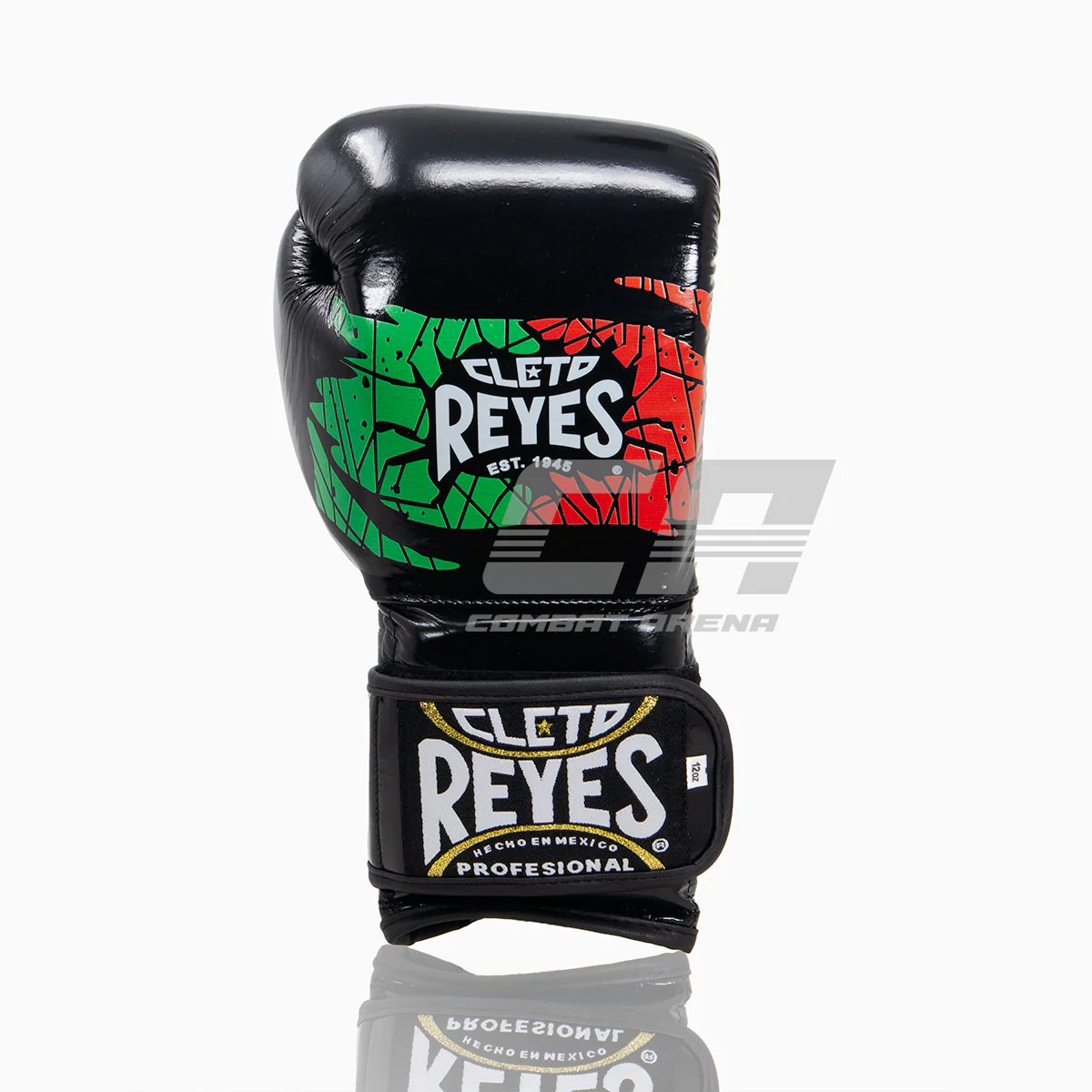 Los Guantes de boxeo Cleto Reyes son fabricados en México: un país con una fuerte tradición en los deportes de combate. Sobre el color negro del guante, destacan en el dorso los colores de la bandera mexicana. Hechos a mano y fabricados en 100% cuero de la más alta calidad, los Guantes de boxeo Cleto Reyes Mexican están equipados con un cierre de velcro resistente. Los agujeros de ventilación permiten que tus manos respiren y limitan la sudoración. El pulgar unido ayuda a prevenir daños al pulgar y a los ojos. El forro hidro-repelente evita que la humedad entre en el guante, preservando su durabilidad a largo plazo.