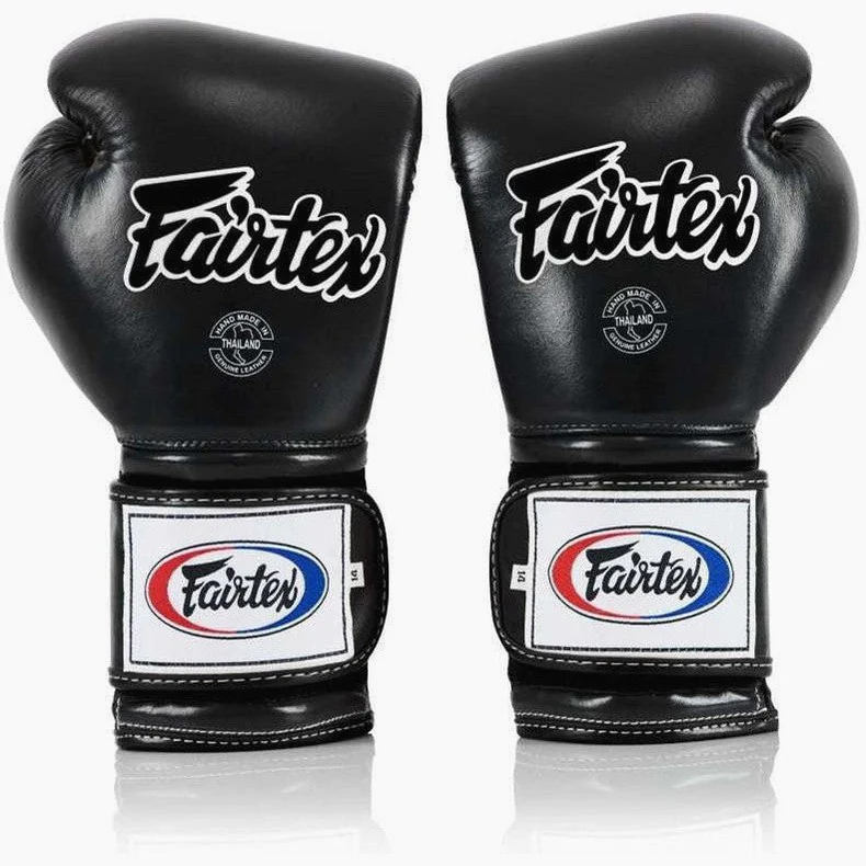 Los Guantes de boxeo Fairtex Mexican Style BGV9 Negro combinan la gran experiencia tailandesa con las características típicas de los Guantes de boxeo mexicanos. Estos Guantes también llamados Heavy Hitter, están equipados con acolchado adicional en la zona de los nudillos que ofrece a tus manos protección extra y los hace excelentes también para entrenamientos en el Saco o con golpeadores. El puño largo con cierre de velcro proporciona soporte y estabilidad a la muñeca. El diseño particular de los Guantes de boxeo Fairtex Mexican Style te ayuda a formar el puño con menos estrés para las manos. Diseñados para Boxeo, Muay Thai y Kick Boxing, están hechos de cuero y equipados con un acolchado particularmente denso.
