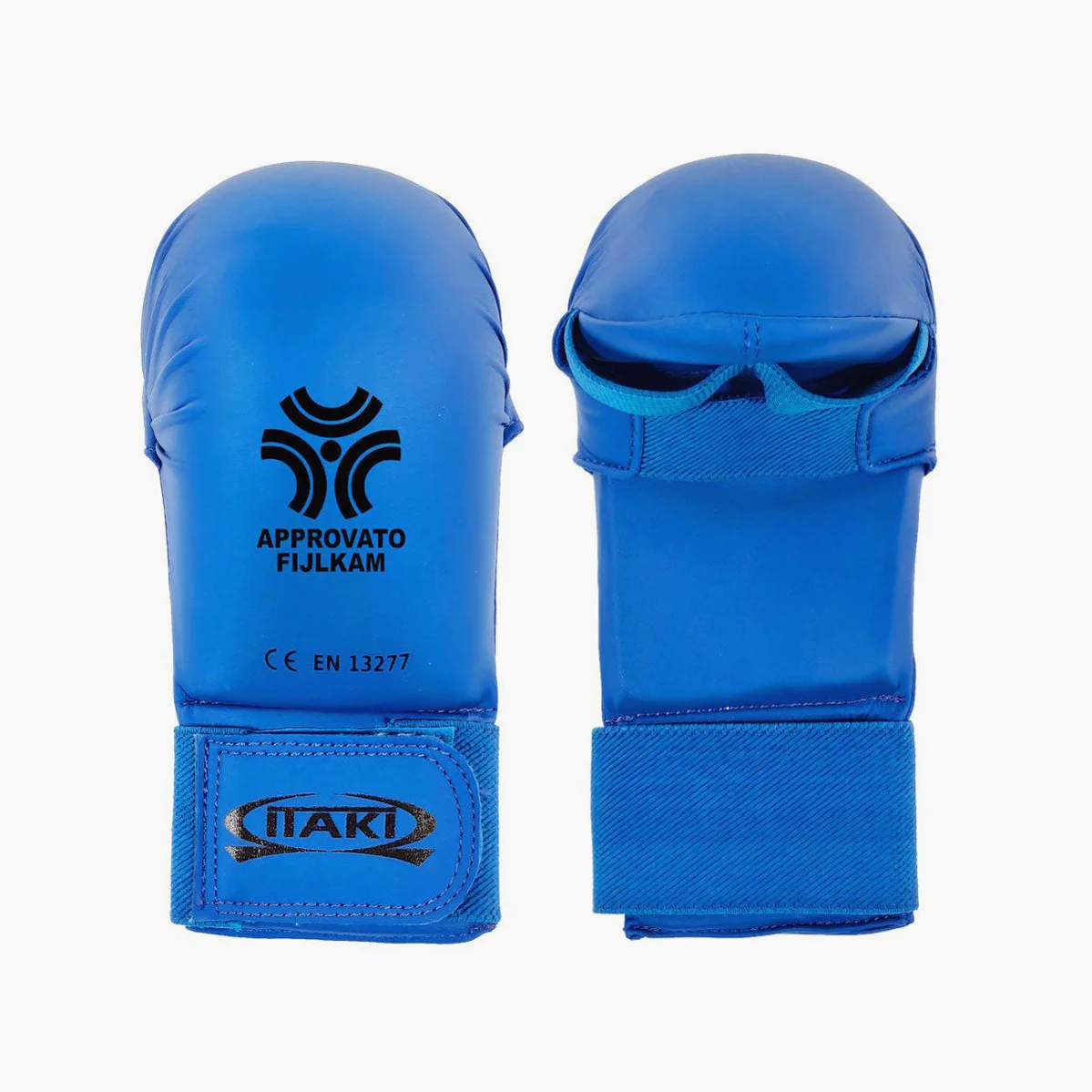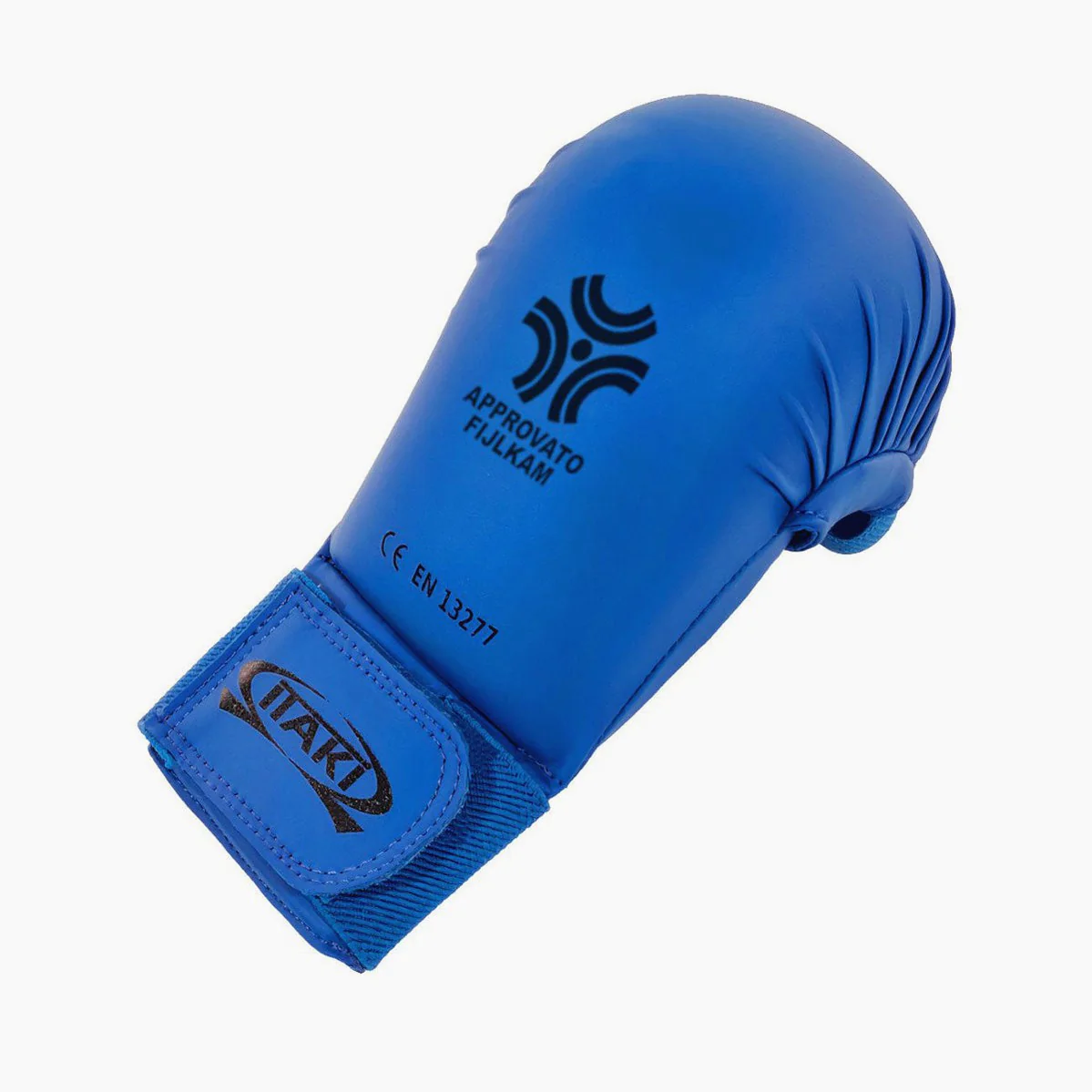 Los Guantes de Karate Itaki art.404FIJ son ideales para el kumite. Aprobados por FIJLKAM (Federación Italiana de Judo Lucha Karate Artes Marciales) son adecuados para ser usados durante las competiciones regionales y nacionales de FIJLKAM y de entidades conveniadas. Externamente revestidos en cuero ecológico, tienen cierre con velcro y elástico. Los golpes están bien amortiguados gracias al relleno interno antichoque de poliuretano muy ligero. (Relleno modelo WKF) Disponibles en azul y en rojo.