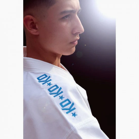 El Conjunto Karategui KO Elegant Kata está compuesto por un pantalón y dos chaquetas con bordado rojo y azul. Fabricado en Italia en un algodón noble, el Panamá Doble Torsión Sanforizado, es robusto y confiable: con el lavado sufre un encogimiento nulo (o muy limitado). Diseñado para satisfacer las necesidades competitivas de campeones internacionales, este modelo amplifica la belleza de las actuaciones en competencia. Aprobado por WKF y FIJLKAM, adecuado para campeonatos internacionales y cualquier otra competición Fijlkam.