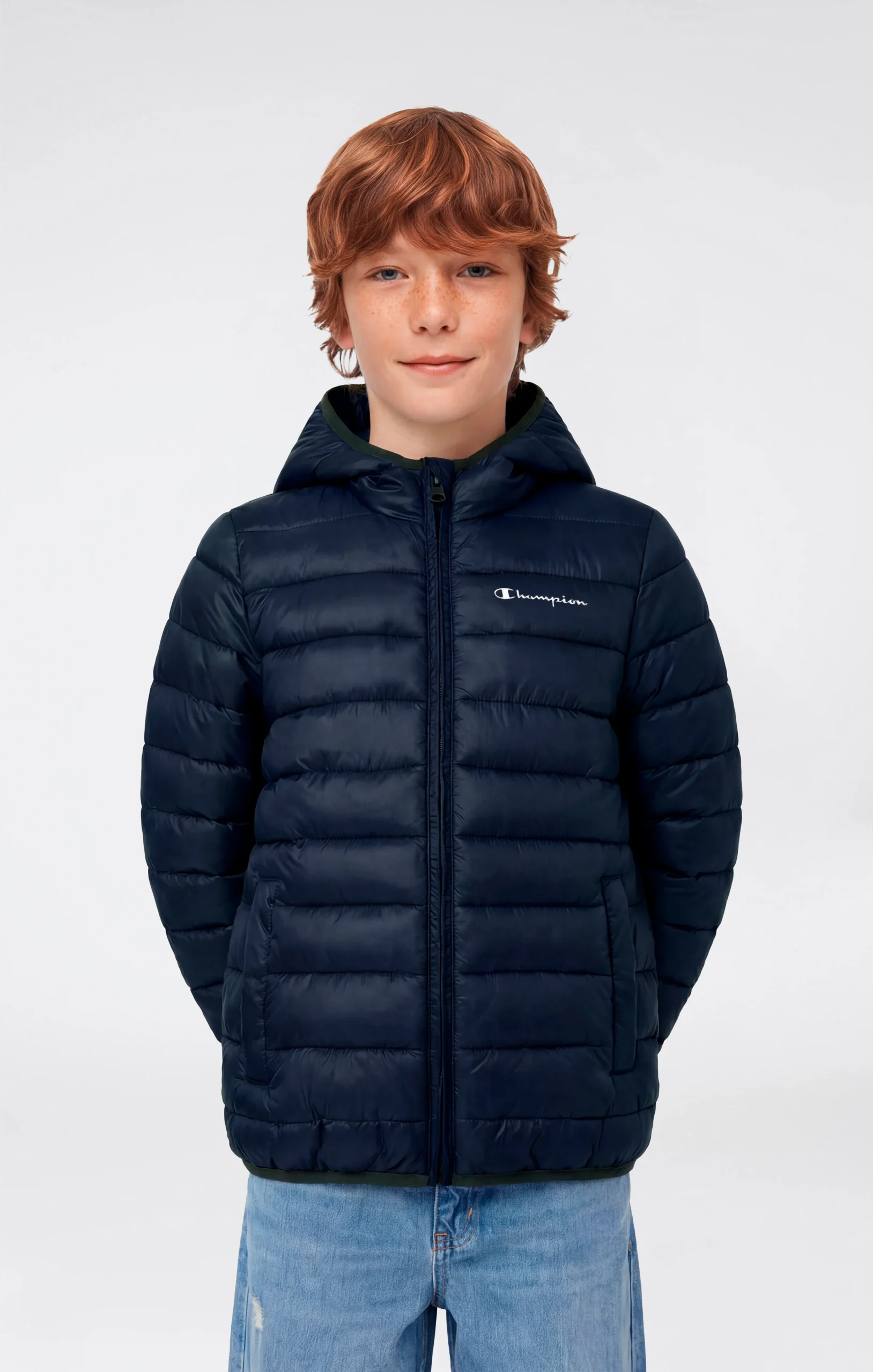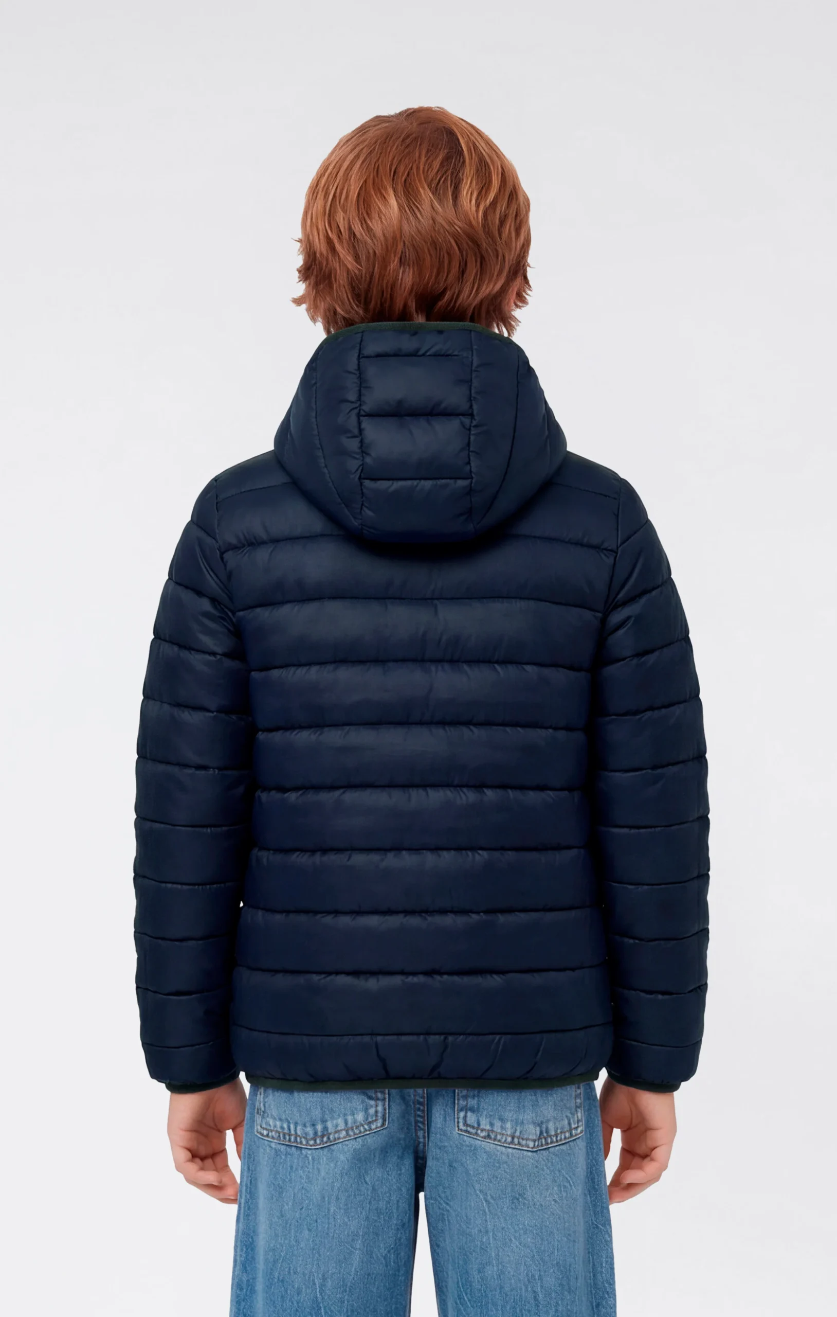 Kids’ hooded jacket with a clean and functional design, created to provide protection and comfort during everyday activities and in transitional seasons. Made from lightweight polyester fabric with a water-resistant treatment and cire finish, it offers reliable protection against wind and light rain without feeling heavy. The lightweight 40 g padding ensures the right level of thermal insulation, while the fixed hood and front zip closure complete a practical and versatile piece, ideal for school and leisure time.@@@Regular fit, comfortable and functional |Lightweight padded jacket for boys |Fixed hood for added protection |Full zip front closure |Lightweight fabric with water-repellent cire finish |40 g lightweight padding |Composition: 100% Polyester