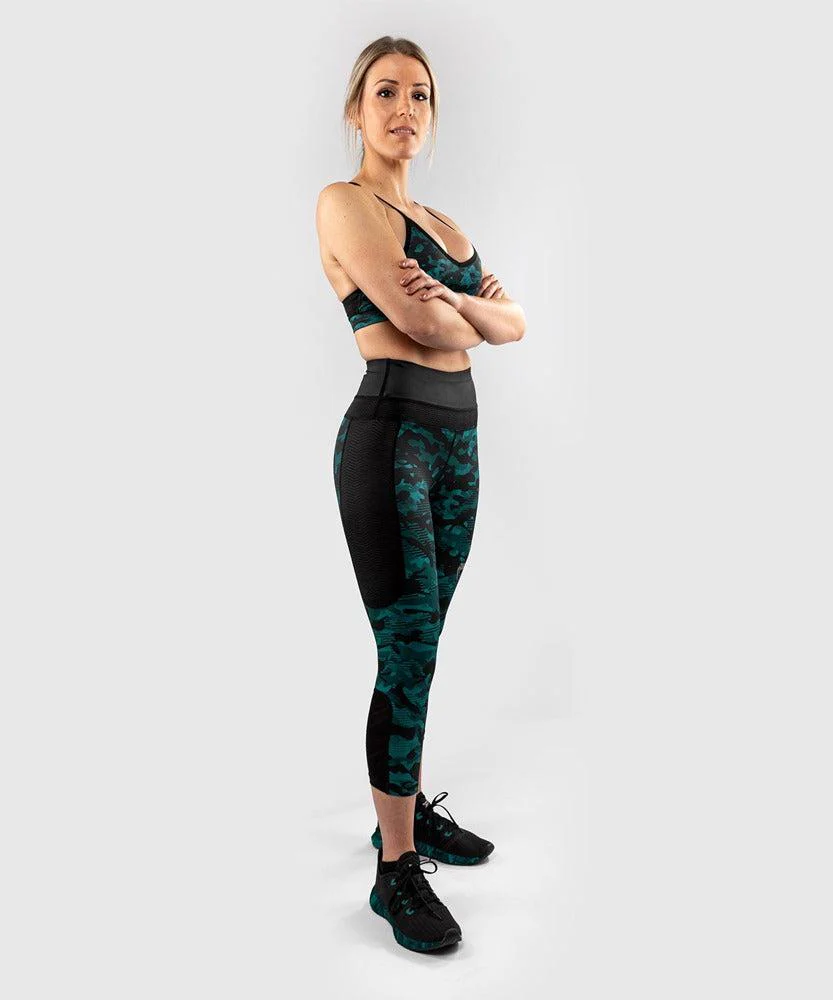 Los Leggings mujer Venum Defender 3/4 están diseñados para ofrecerte comodidad y libertad de movimiento en tus entrenamientos. El tejido elástico y suave crea un efecto segunda piel: estos Pantalones técnicos se adaptan mejor a tu cuerpo durante la actividad física. El diseño ajustado y la cintura alta realzan la figura para garantizar un look siempre impecable. Perfectos para los deportes de combate, también son ideales por ejemplo para fitness, cross training, correr, yoga. La textura camuflada aporta un toque audaz a tu estilo.
