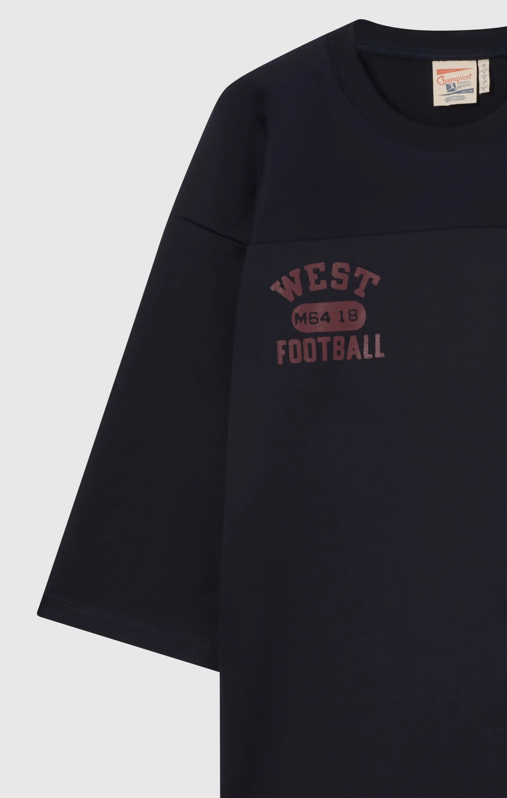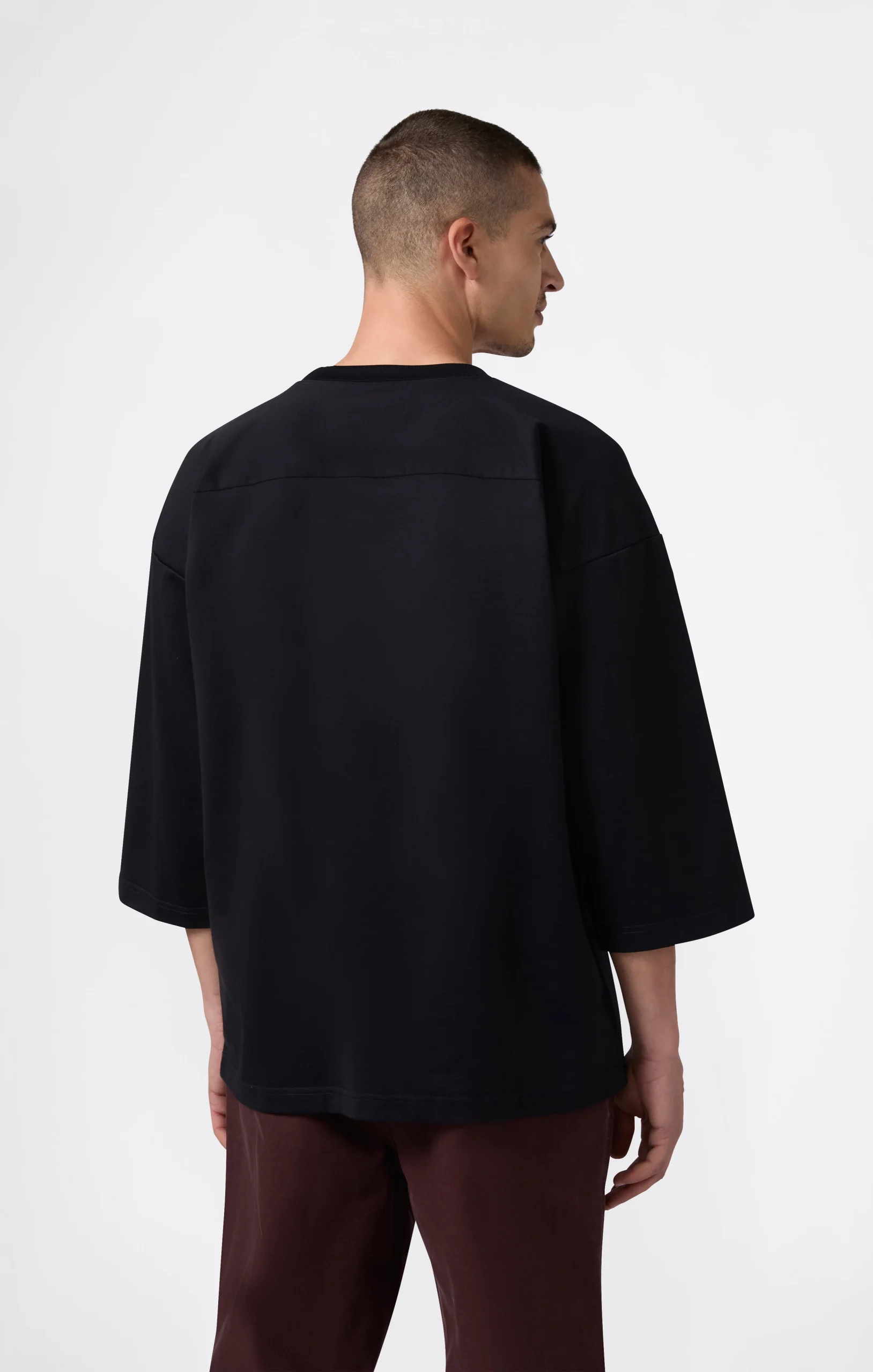 This 3/4 sleeve crewneck T-shirt with wide sleeves reinterprets the vintage look of American sports uniforms with a modern cut. Made from 300 g/m² nylon-cotton jersey, it blends comfort and structure—perfect for a bold, laid-back style. Part of the Index & Archives Lighthouse line, a project that revisits Champion’s heritage with contemporary flair, bringing archival pieces to life through updated details and proportions.@@@Fabric: Nylon Jersey 300 g/m² |Composition: 63% Cotton, 37% Polyamide |3/4 sleeves |Fit: Custom Fit – contemporary cut balancing structure and comfort, with wide shoulders and straight silhouette