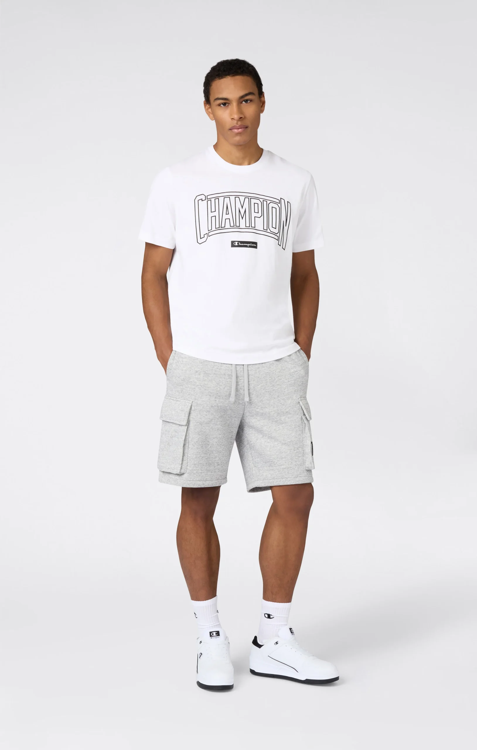 Men’s cargo shorts that combine functionality with a contemporary street-inspired look. The collegiate-influenced design is enhanced by multiple pockets and the Champion logo, creating a bold and urban style. Made from compact fleece fabric, they offer comfort and structure for everyday wear. The Relax Core fit delivers a soft, laid-back silhouette, ideal for leisure time and city life.@@@Relax Core fit – comfortable, relaxed silhouette |Fabric: Heavy Soft Compact Cotton Poly Fleece |Composition: 85% Cotton, 15% Polyester |Weight: 340 g/m² |Elasticated waistband with drawstring |Side cargo pockets |Front pockets |Back pockets |Brushed interior |Champion logo printed on the leg