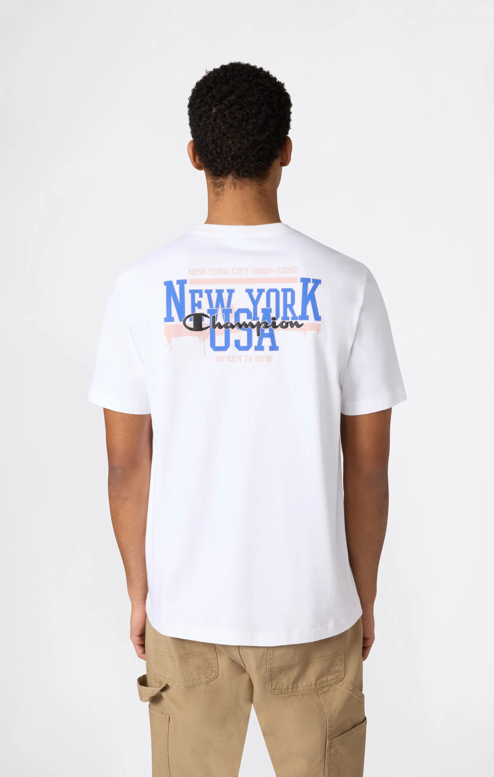 Men’s crewneck T-shirt that interprets collegiate style through a contemporary graphic language. The Champion graphic is created using puff print, a printing technique that produces a subtle raised effect, adding depth and character to the design. Crafted from compact combed cotton jersey, it delivers a substantial yet comfortable feel, ideal for everyday wear. The Relax Core fit creates a soft, laid-back silhouette, perfect for urban life and leisure time.@@@Relax Core fit – comfortable, relaxed silhouette |Fabric: Combed Compact Cotton Single Jersey |Composition: 100% Cotton |Weight: 200 g/m² |Crewneck |Short sleeves |Champion graphic printed in puff print