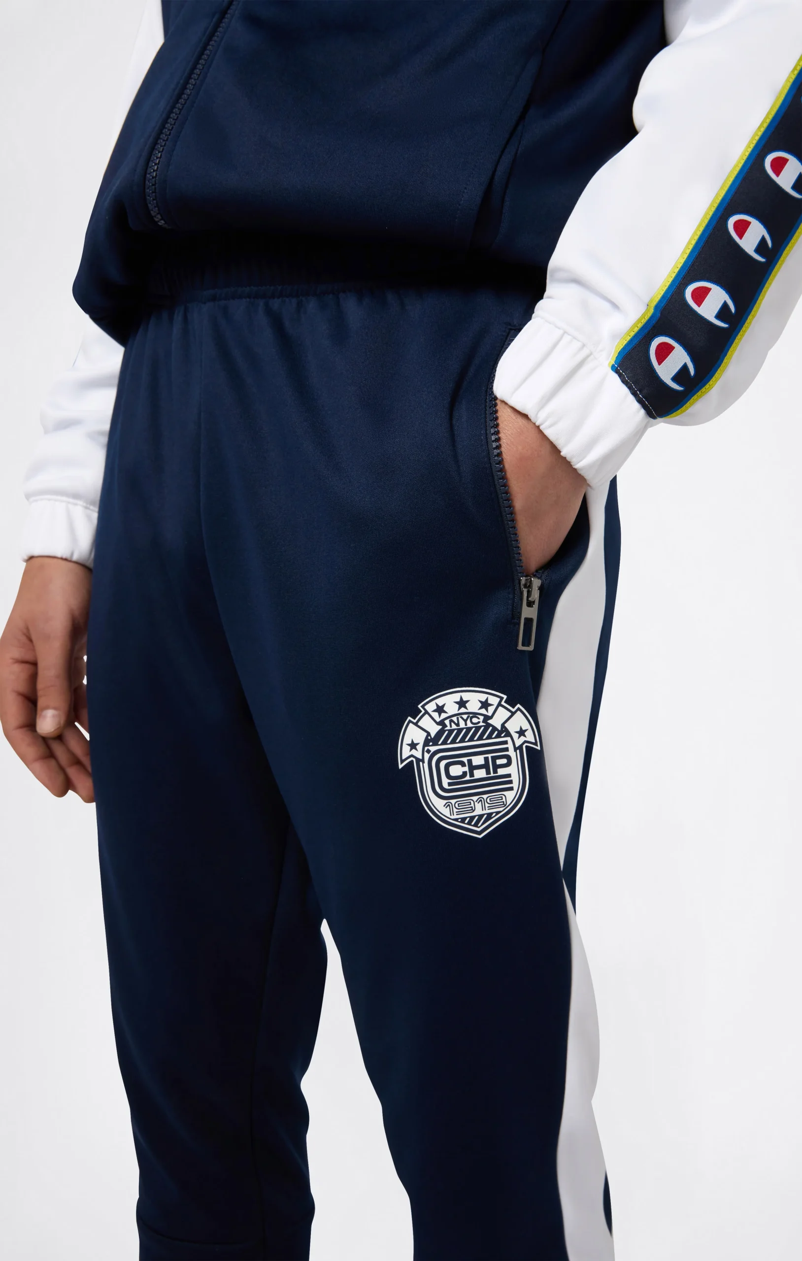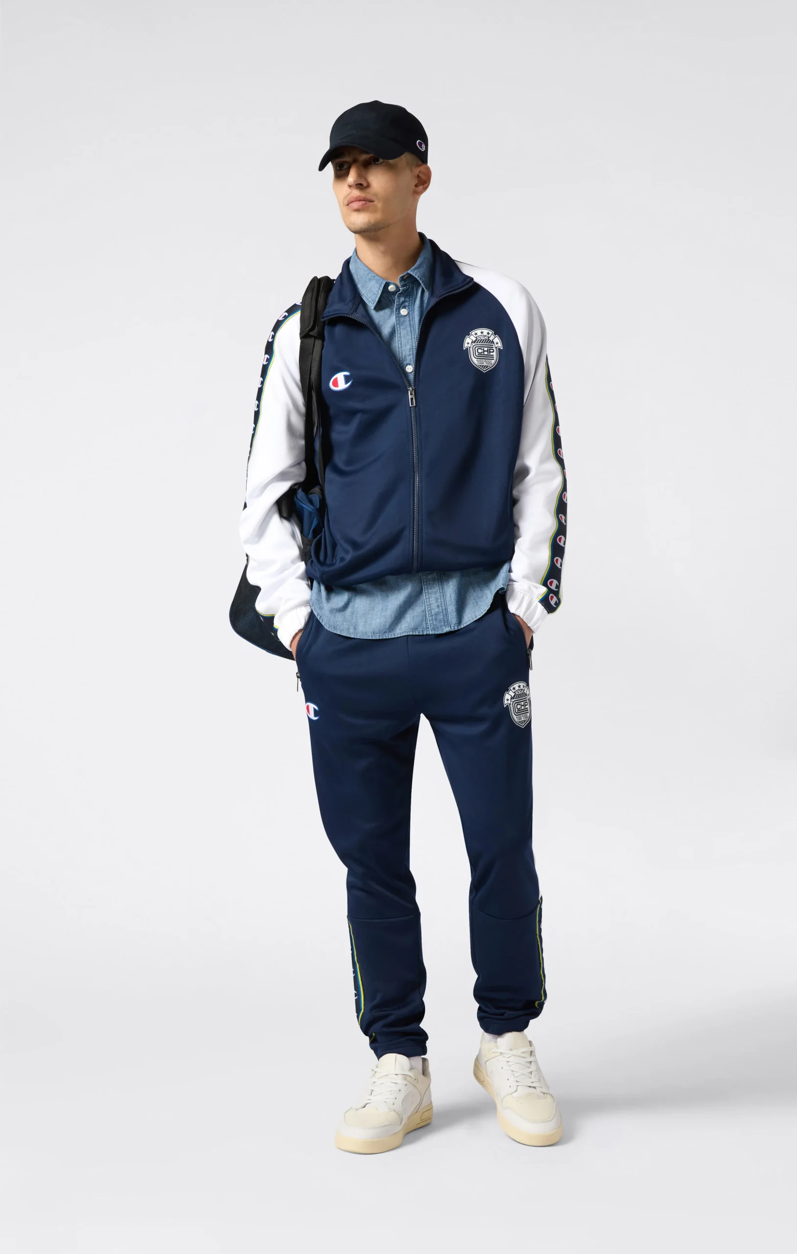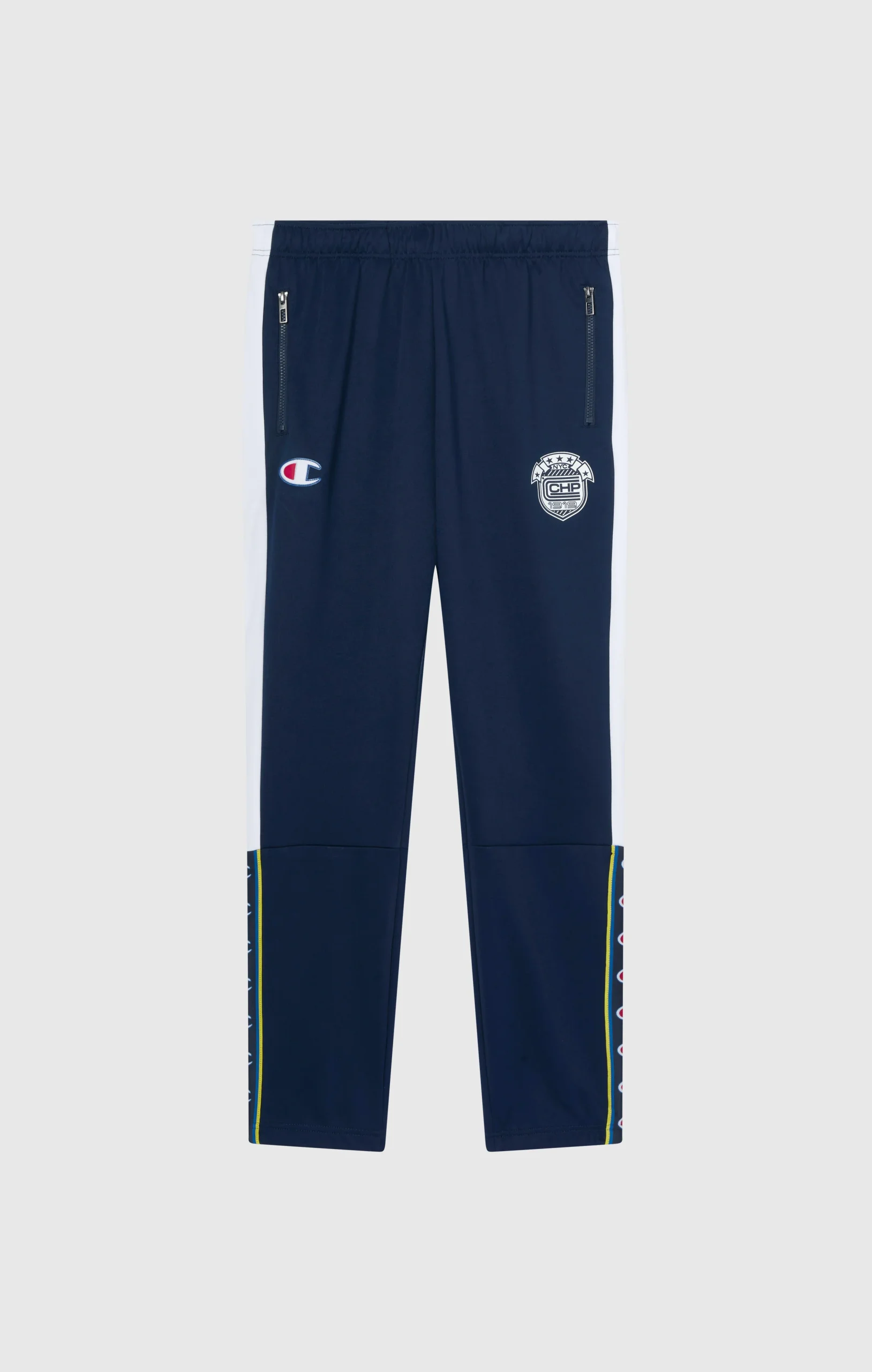 Track pants from the Sport Heritage line that revisit ‘90s aesthetics with a modern twist. The side logo tape and crest on the thigh recall vintage team uniforms, while the Standard Fit and elasticated cuffs make them perfect for everyday urban style.@@@Fabric: New Poly Interlock 300 g/m² |Composition: 100% Polyester |Branded side tape |Side pockets |Zip pockets |Elasticated cuffs at leg opening |Elasticated waistband with adjustable drawcord |Fit: Standard Fit – Versatile and comfortable fit with standard widths and lengths.