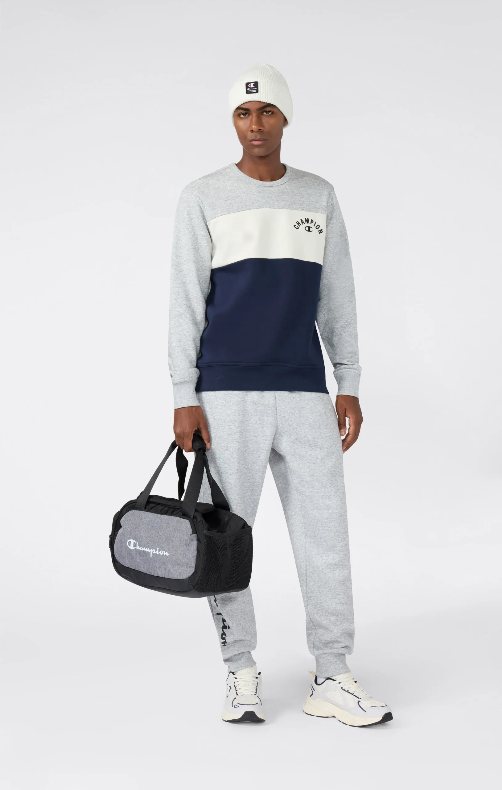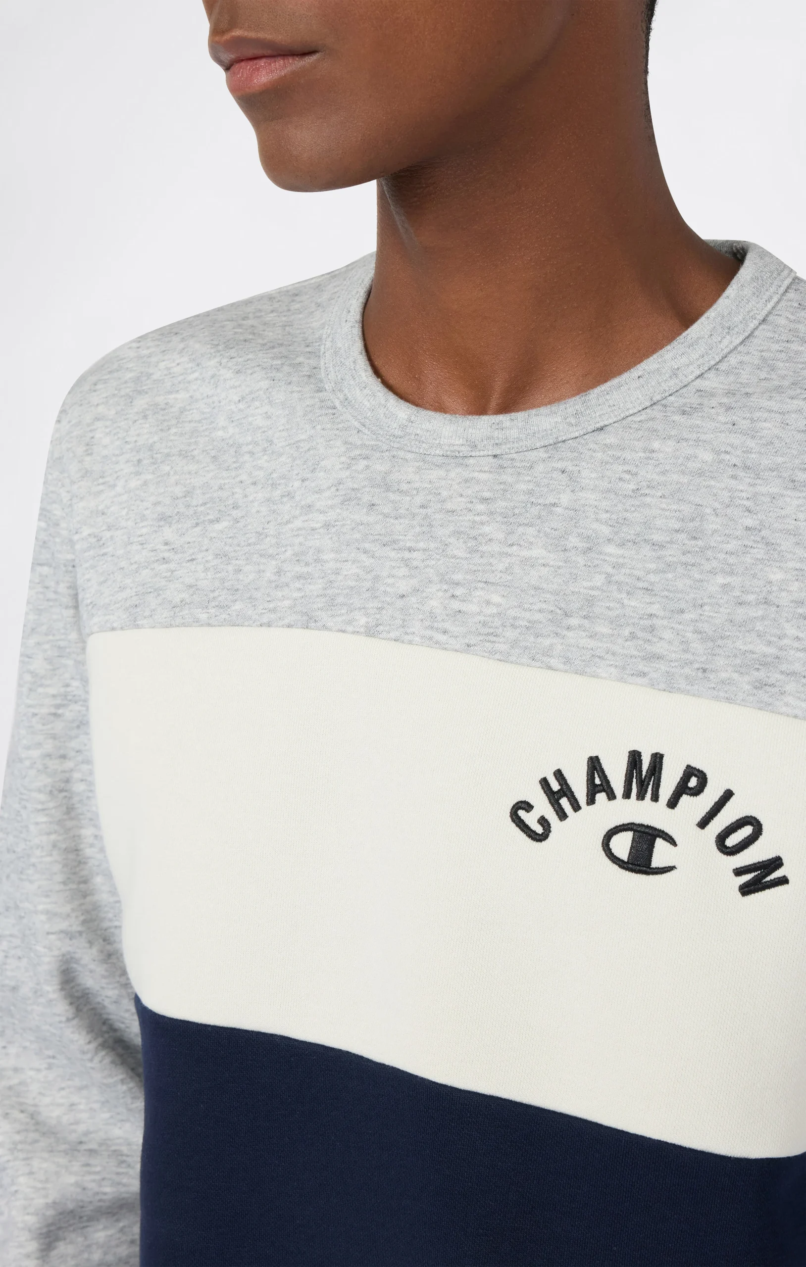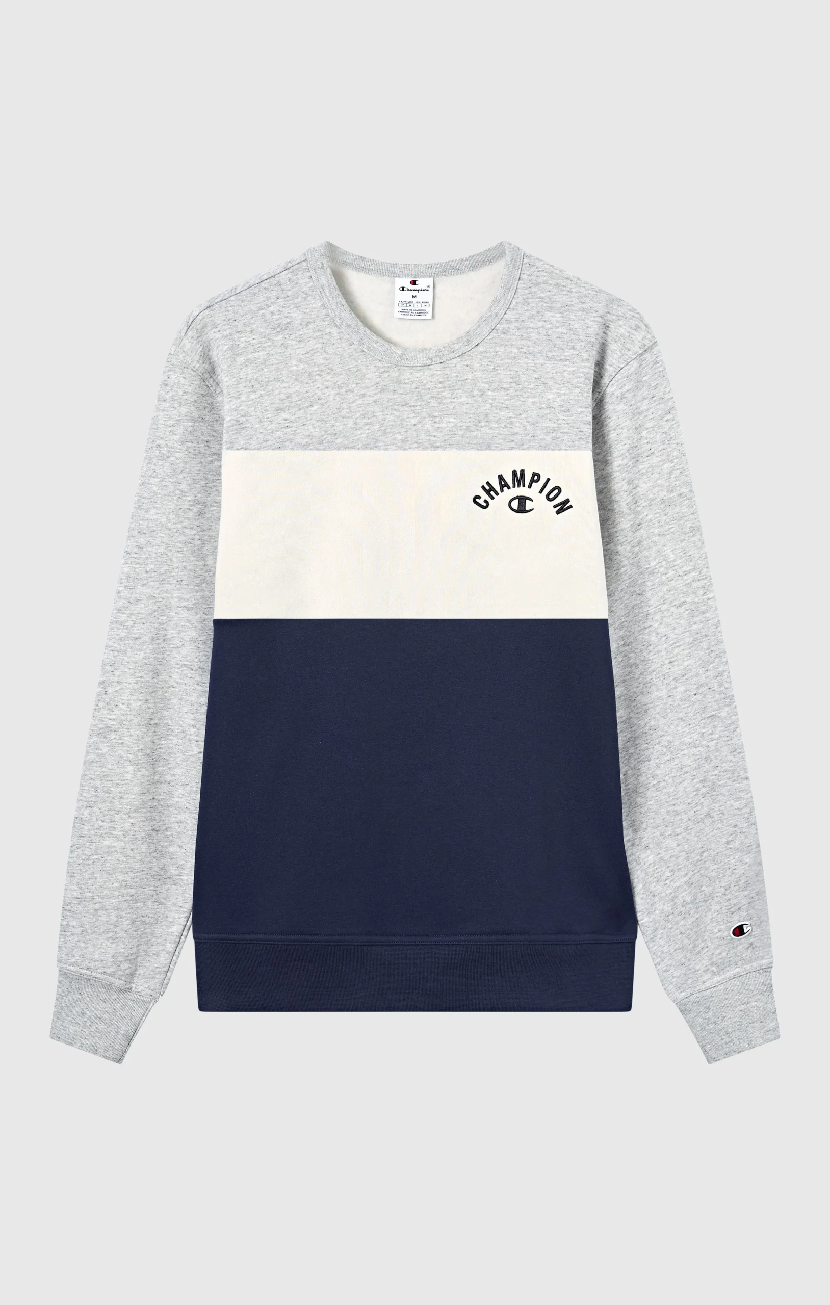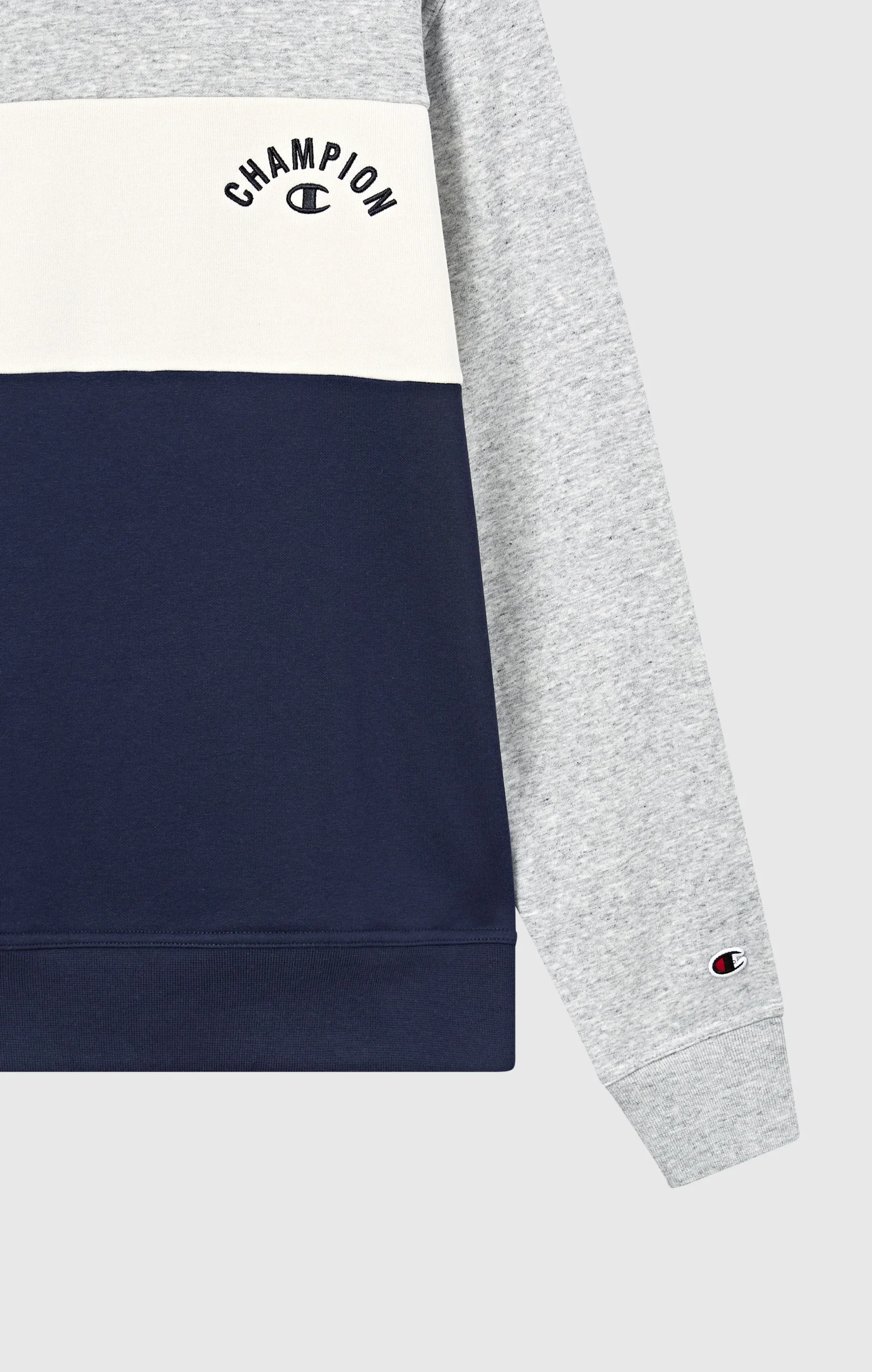 This crewneck sweatshirt from the Icons Plus line combines heritage aesthetics with premium materials. The color block design gives it a bold, modern look, while the heavy 310 g/m² fleece fabric provides warmth and softness throughout the season. Finished with a small embroidered logo on the chest and ribbed details, it’s a contemporary take on a classic Champion icon.@@@Fabric: Compact and soft cotton-blend fleece, weight: 310 g/m² |Composition: 70% Cotton, 30% Polyester |Brushed interior |Color-block construction |Embroidered logo on chest |Ribbed collar, cuffs and hem |Fit: Standard Fit – Versatile and comfortable fit with standard width and length. Skims the body without clinging. Regular shoulder cut