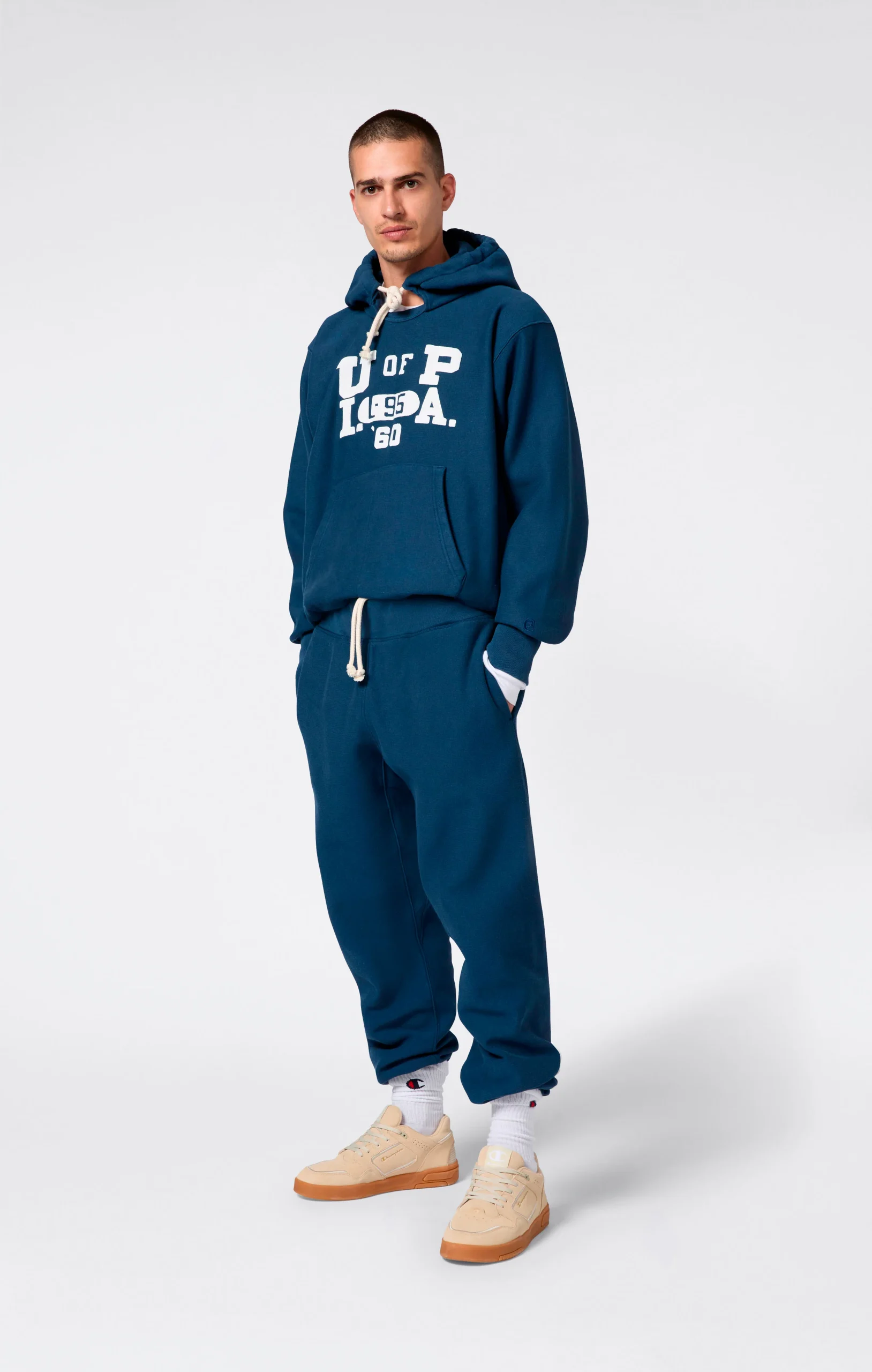 These pants with elasticated cuffs and brushed interior are part of the Lighthouse capsule by Index & Archives, reimagining collegiate sportswear in a contemporary key. Made from 430 g/m² Reverse Weave – Champion’s legendary shrink-resistant technology – they combine comfort, structure and heritage spirit. Perfect to pair with the matching hoodie, they pay tribute to Ivy League tradition with a relaxed, authentic style.@@@Fabric: Reverse Weave Fleece 430 g/m² |Composition: 90% Cotton, 10% Polyester |Brushed interior |Front pockets |Reverse Weave: patented anti-shrink construction since the 1930s |Elasticated leg cuffs |Elastic waistband with internal drawstring |Fit: Loose