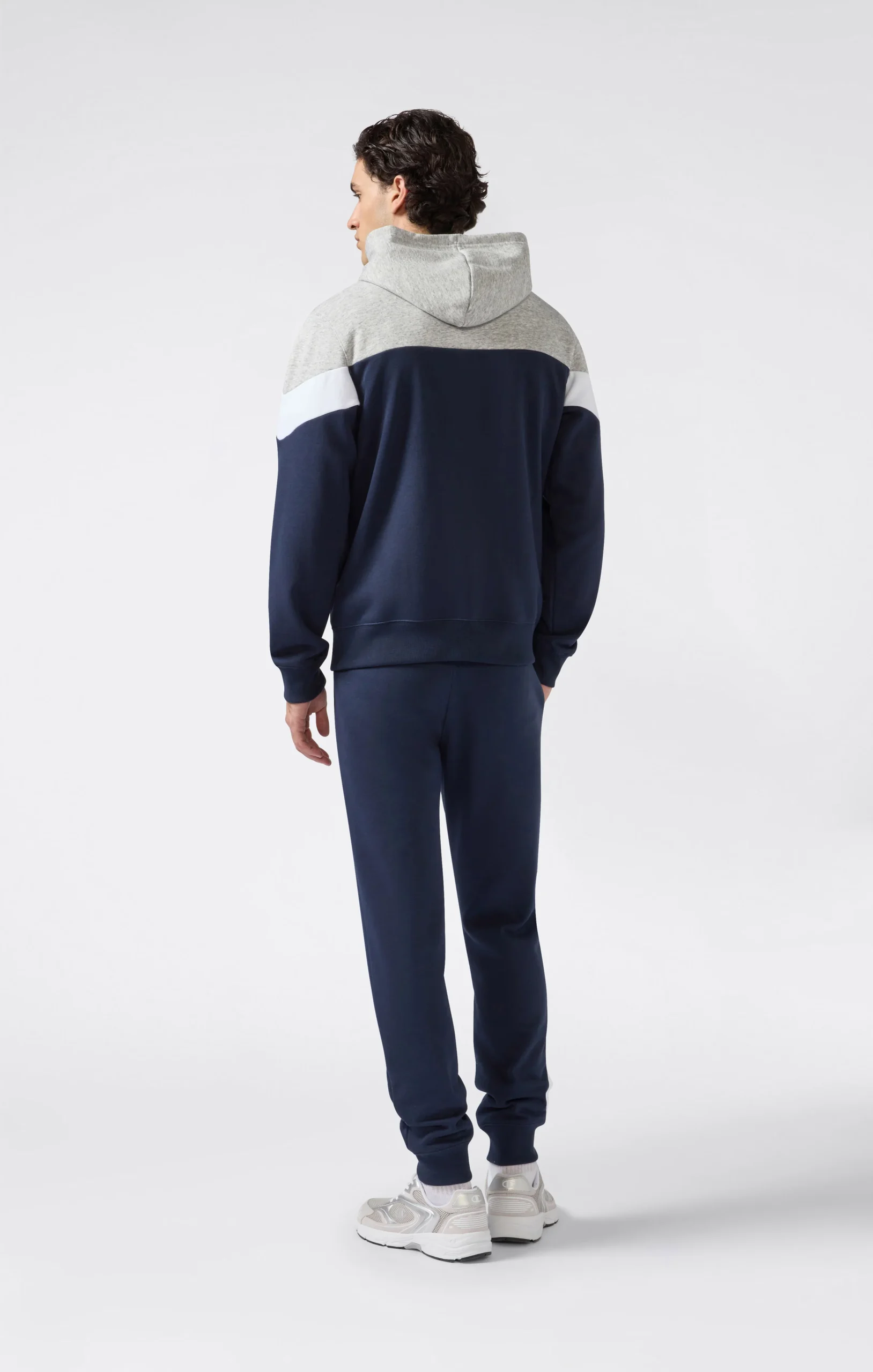 This full-zip sports set blends comfort and character. Made of 280 g/m² fleece, it guarantees softness and warmth, while the contrast chest bands give your look a bold, sporty finish.@@@Fabric: Soft Compact Power Blend Fleece 280 g/m² |Composition: 55% Cotton, 45% Polyester |Brushed interior |Fit: Standard Fit – Versatile and comfortable fit with standard widths and lengths. Contours the body with clean lines that don’t cling. Regular shoulder cut.